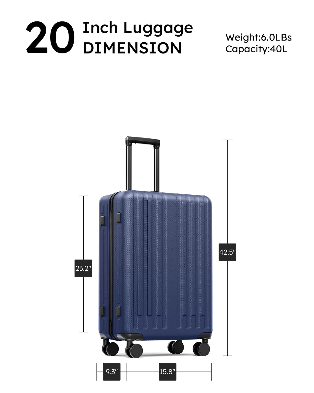 20 Inch Carry On Luggage With 360 Spinner Wheels Suitcases With Hard Sided Lightweight Abs Material Dark Blue Abs