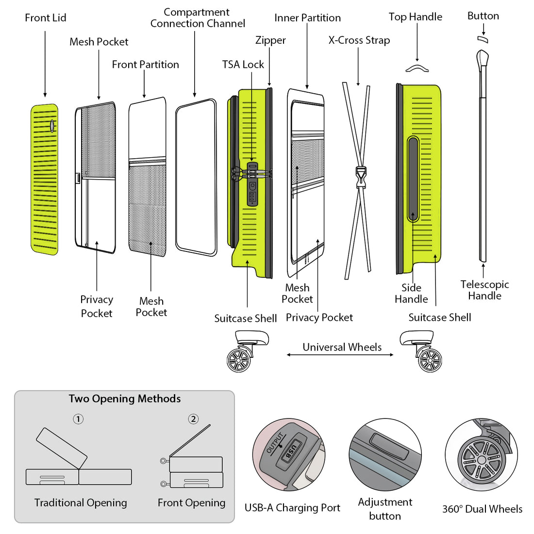 Name: Carry-on Luggage 20 Inch Front Open Luggage Lightweight Suitcase with Front Pocket and Usb...