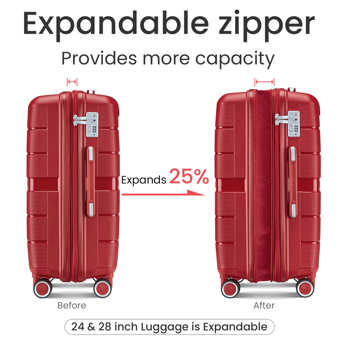 Luggage Sets 4 Piece 14 20 24 28 Pp Lightweight & Durable Expandable Suitcase Wine Red Polypropylene