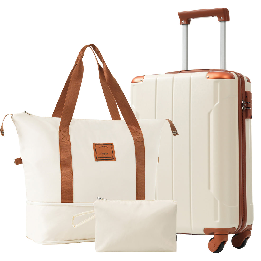 Hardshell Luggage Sets 3 Piece Carry On Suitcases With Wheels, Tsa Lock For Men Women, White Brown 20In Brown White Abs