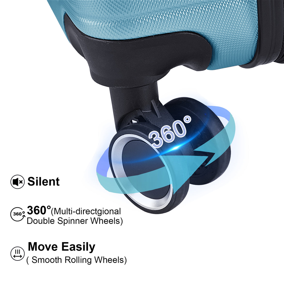 Luggage Suitcase 3 Piece Sets Hardside Carry On Luggage With Spinner Wheels 20" 24" 28" Aqua Blue Abs