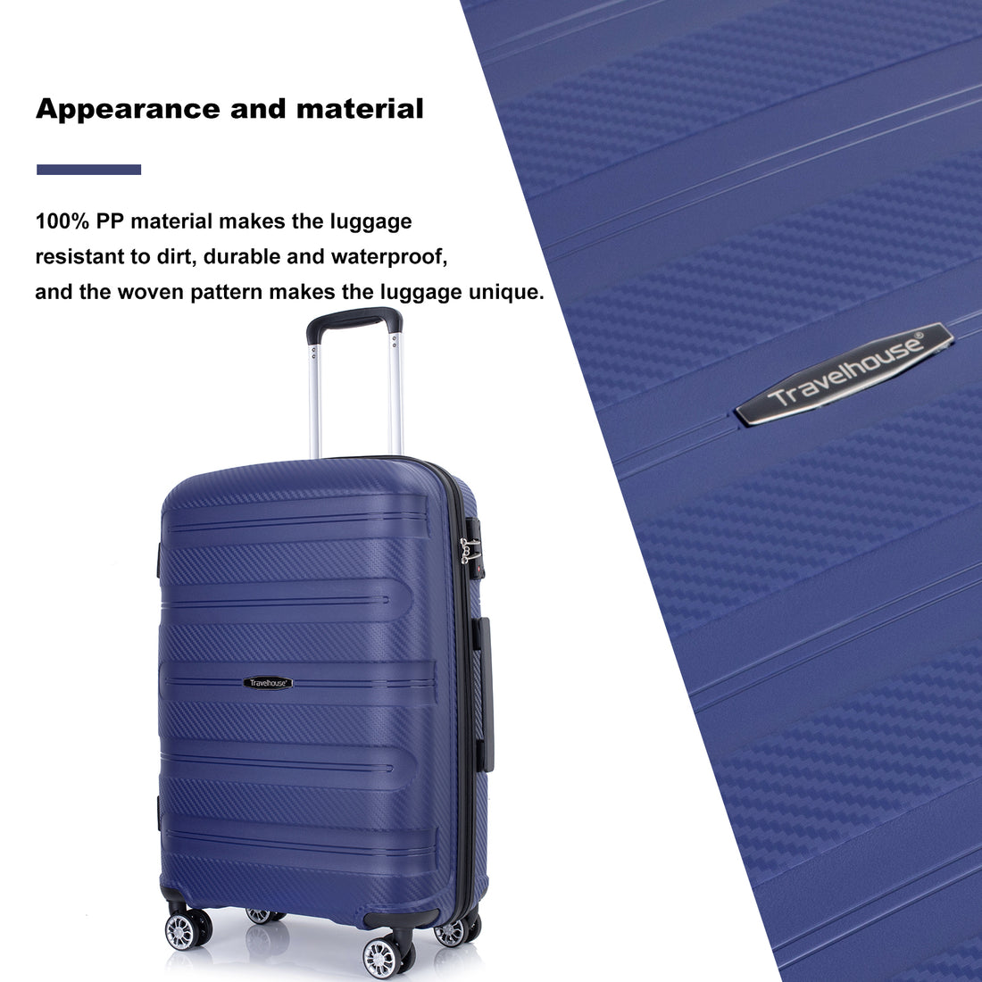 Hardshell Suitcase Spinner Wheels Pp Luggage Sets Lightweight Durable Suitcase With Tsa Lock,3 Piece Set 20 24 28 ,Navy Navy Polypropylene