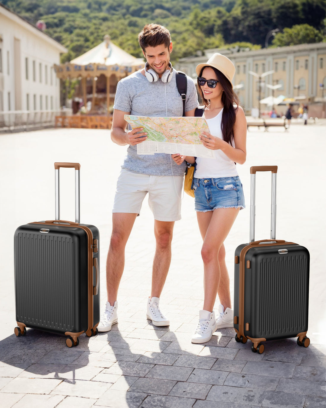 Hardshell Luggage Sets With Bags Carry On Suitcase Double Spinner Wheels With Tsa Lock ,Single Vintage Luggage 20 In,Black Black Abs
