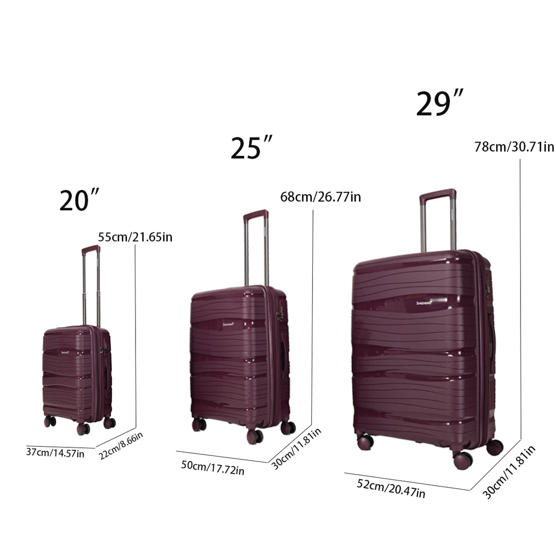 Pp Material Three Piece Luggage Set, Expandable, Lightweight Hard Luggage With Swivel Wheels And Password Lock, Stylish Luggage Set 20 Inches, 25 Inches, 29 Inches Dark Purple Polyethylene