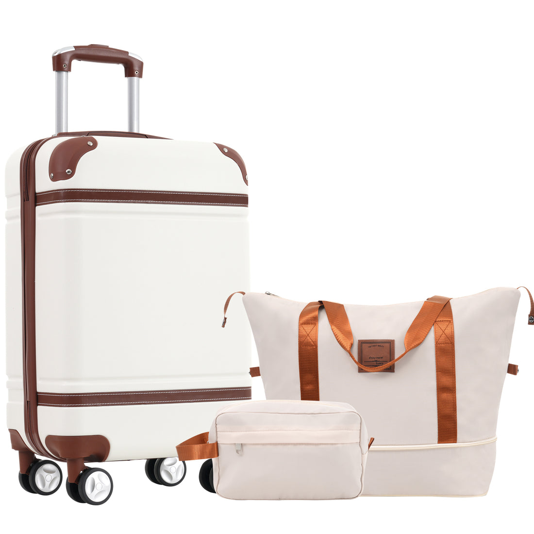 Hardshell Luggage Sets With Bags Carry On Suitcase Double Spinner Wheels With Tsa Lock ,Single Vintage Luggage 20 In,White White Abs