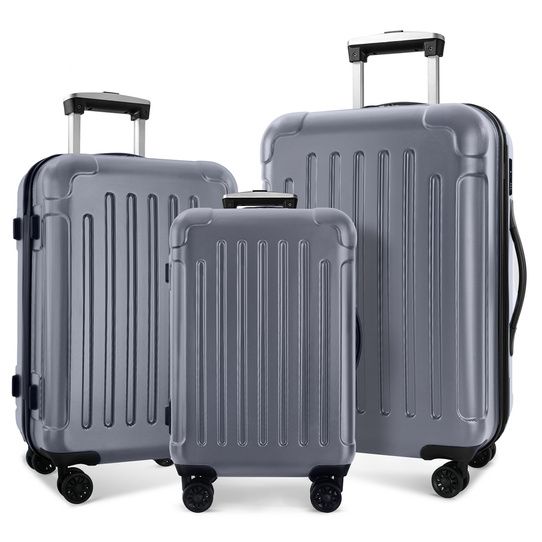 Name: Luggage 3 Piece Sets with Spinner Wheels Abs+pc Lightweight (20/24/28), Grey Description: Characteristics: [Durable...