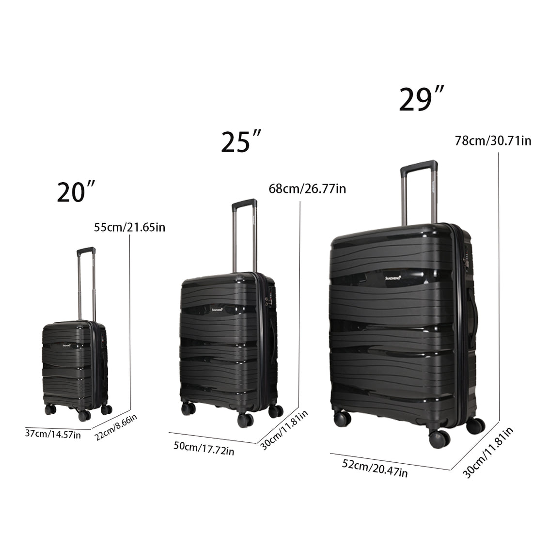 Pp Material Three Piece Luggage Set, Expandable, Lightweight Hard Luggage With Swivel Wheels And Password Lock, Stylish Luggage Set 20 Inches, 25 Inches, 29 Inches Black Polyethylene