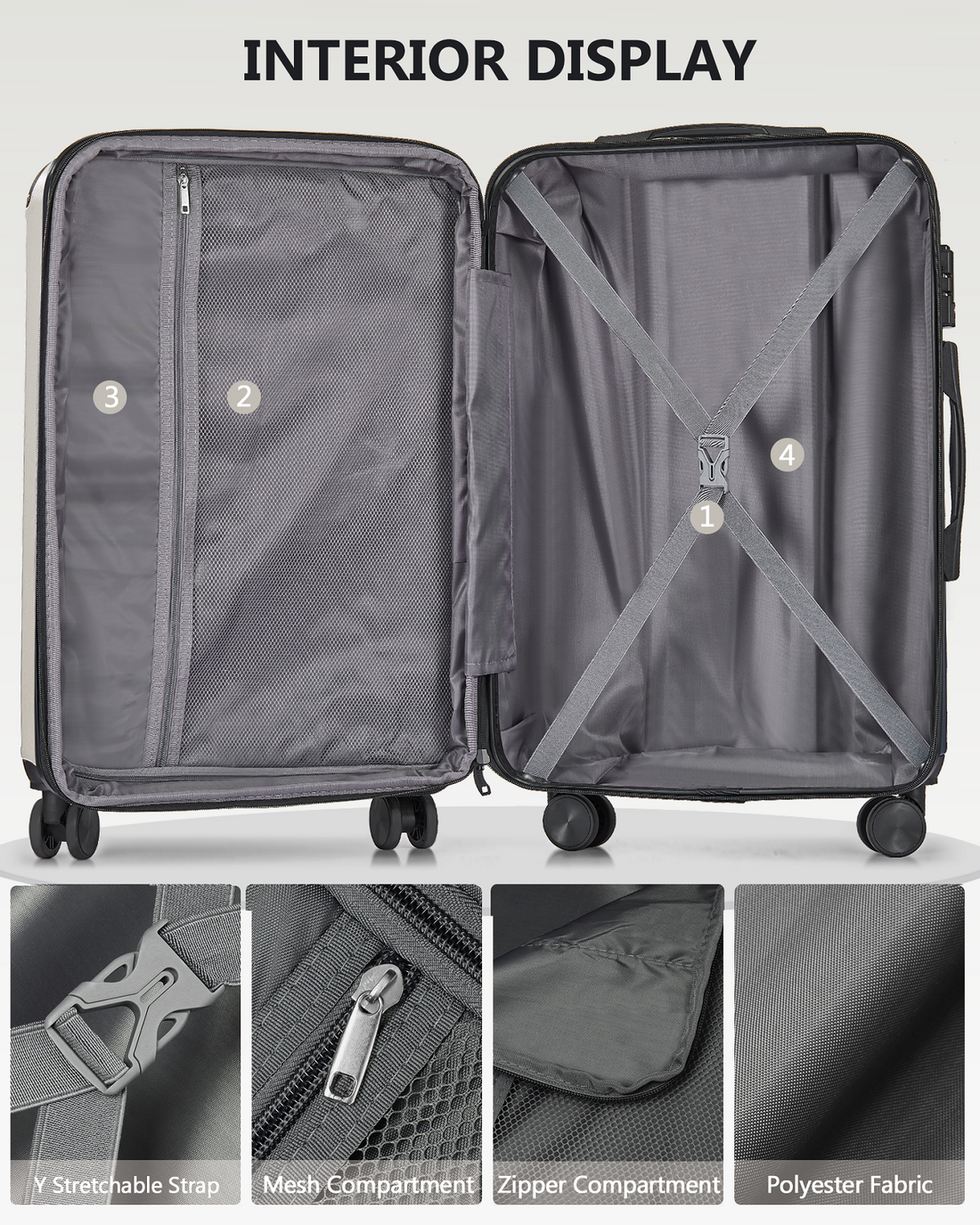20" Carry On Luggage Lightweight Suitcase Tsa Lock Usb Port Luggage Wheel Lock Artificial Leather Top Handle Spinner Wheels Creamy White Creamy White Abs Pc