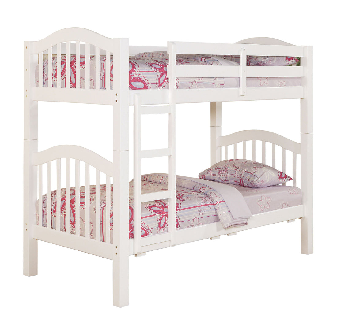 Name: White Twin Over Twin Bunk Bed with Built-in Ladder Description: Romance Copy The bunk...