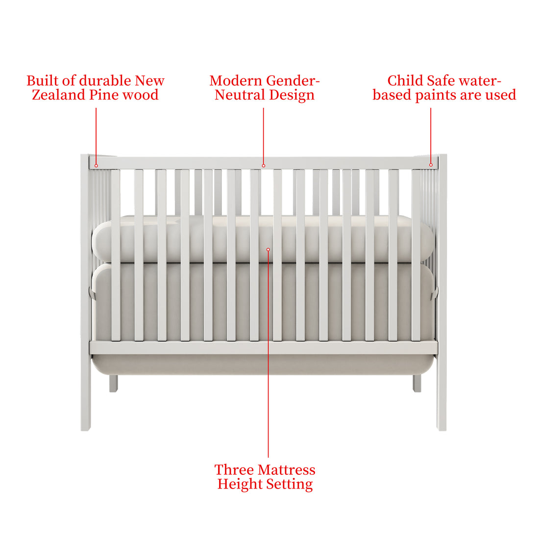 5 In 1 Convertible Crib, Converts From Baby Crib To Toddler Bed, Fits Standard Full Size Crib Mattress ,Easy To Assemble 53*29*9 Inches White White Classic Pine Wood