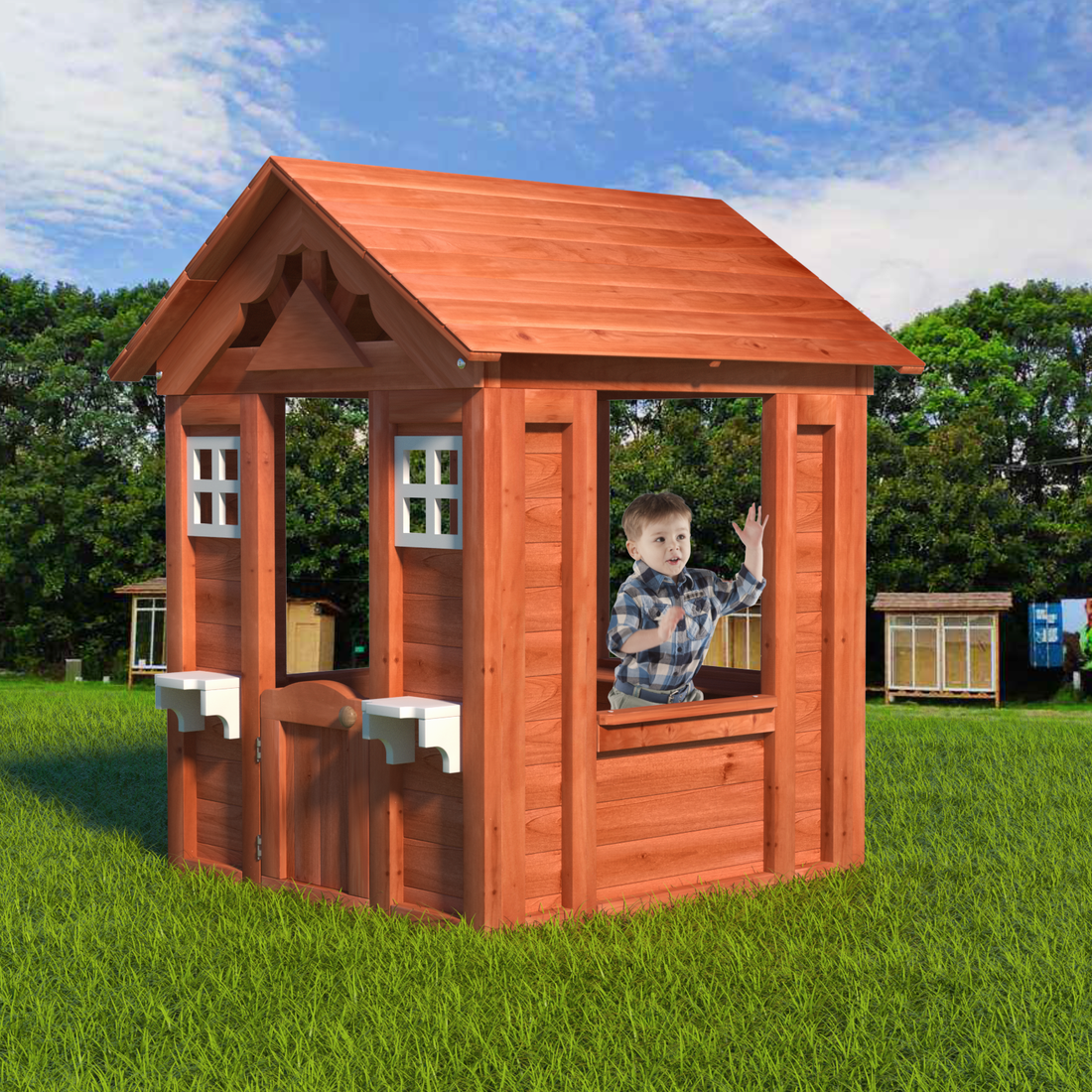Name: All Wooden Kids Playhouse with 2 windows and flowerpot holder,42"Lx46"Wx55"H,Golden Red Characteristics: COUNTRY Style...