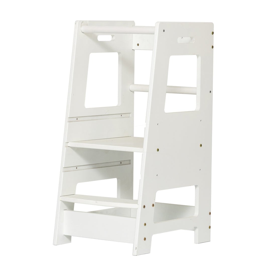 Toddler Standing Tower For Kitchen, Step Stool For Kid'S Adjustable Height Learning Stool, Removable Anti Drop Safety Rail Stool For Bedroom, Bathroom, White White Wood