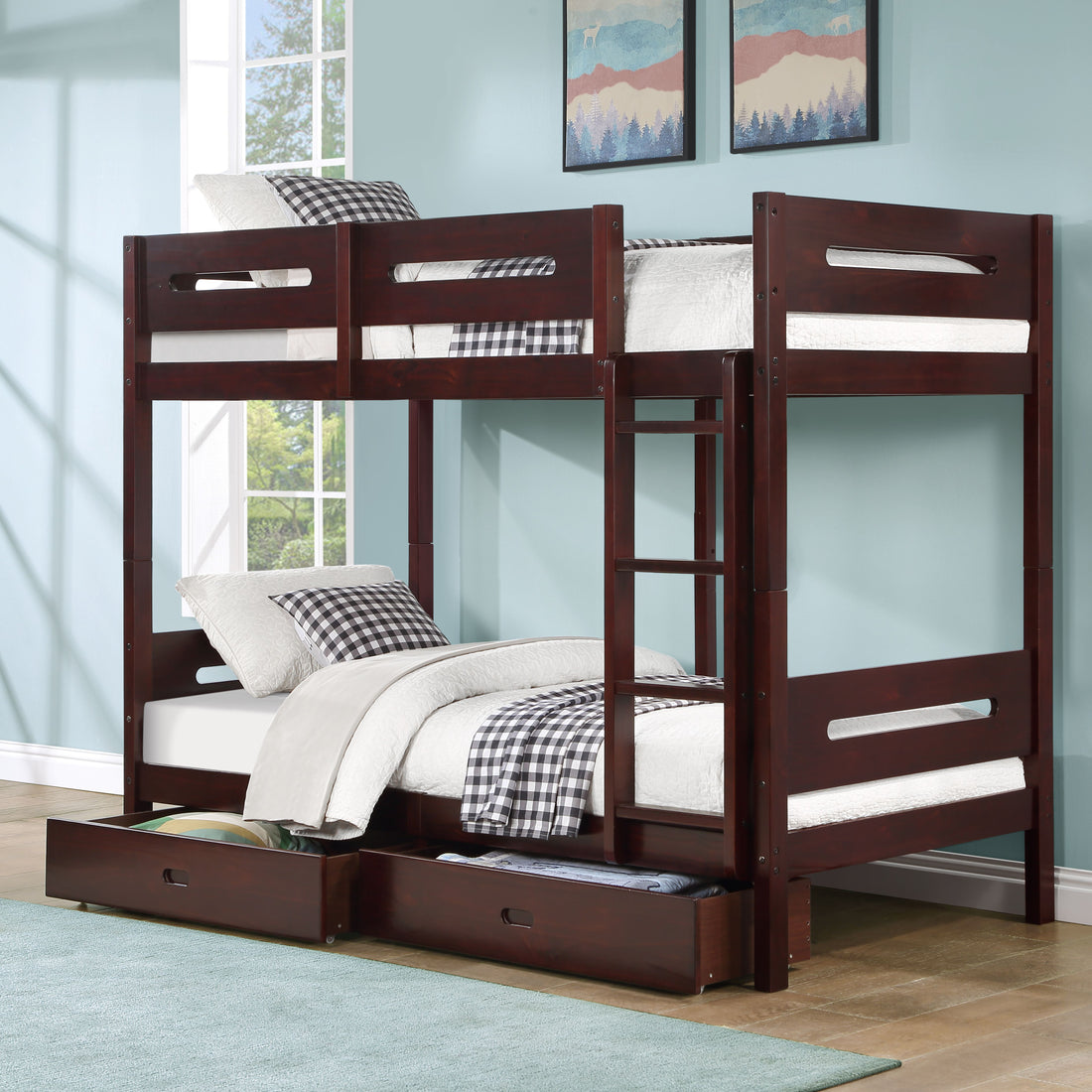 Espresso Twin Twin Bunk Bed With Ladder Espresso Bedroom Contemporary Wood