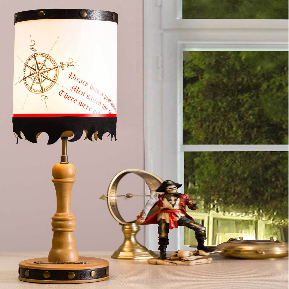Name: Ahoy Table Lamp Characteristics: FEATURES - Polyester Drum Lamp Shade with graphics and oak-colored...