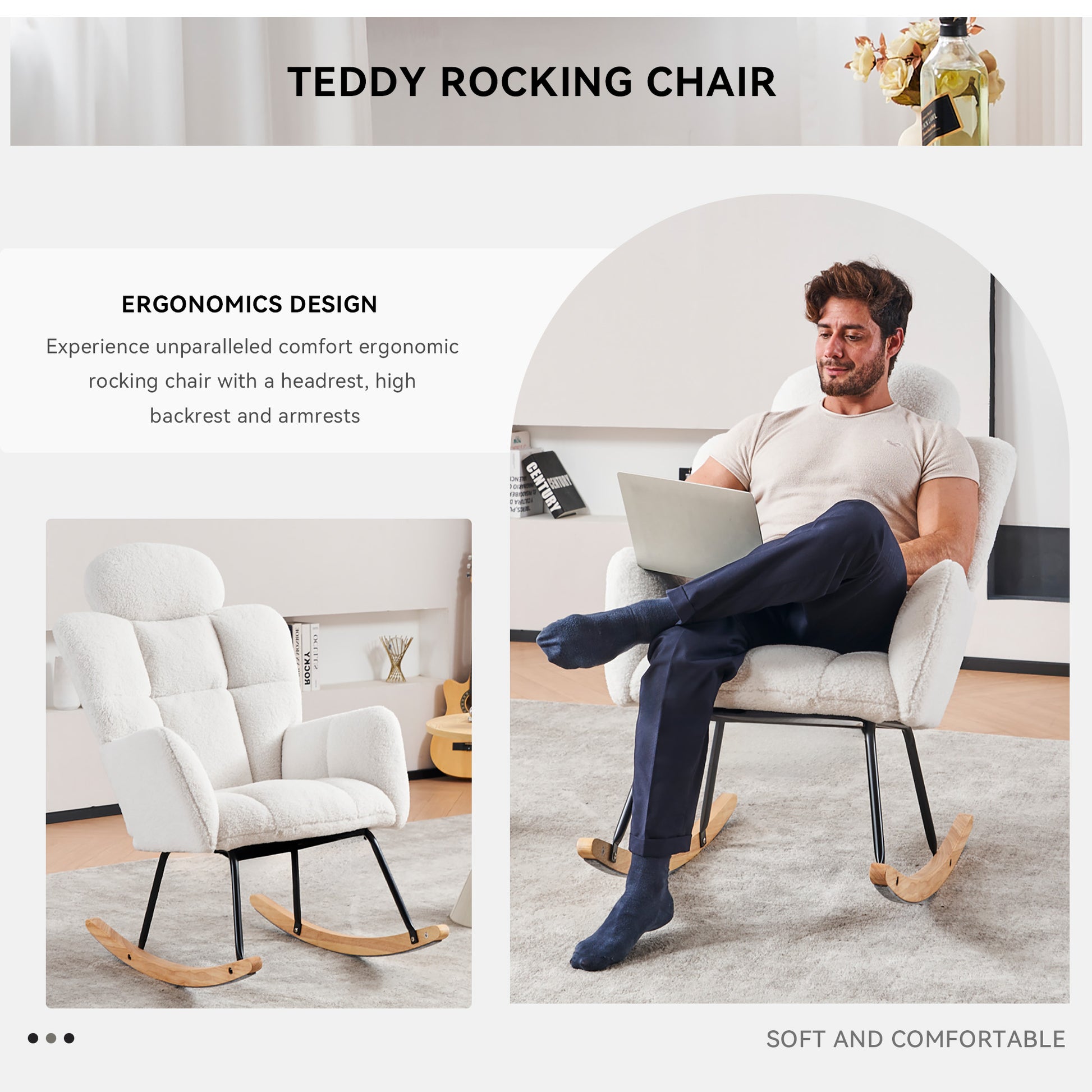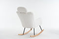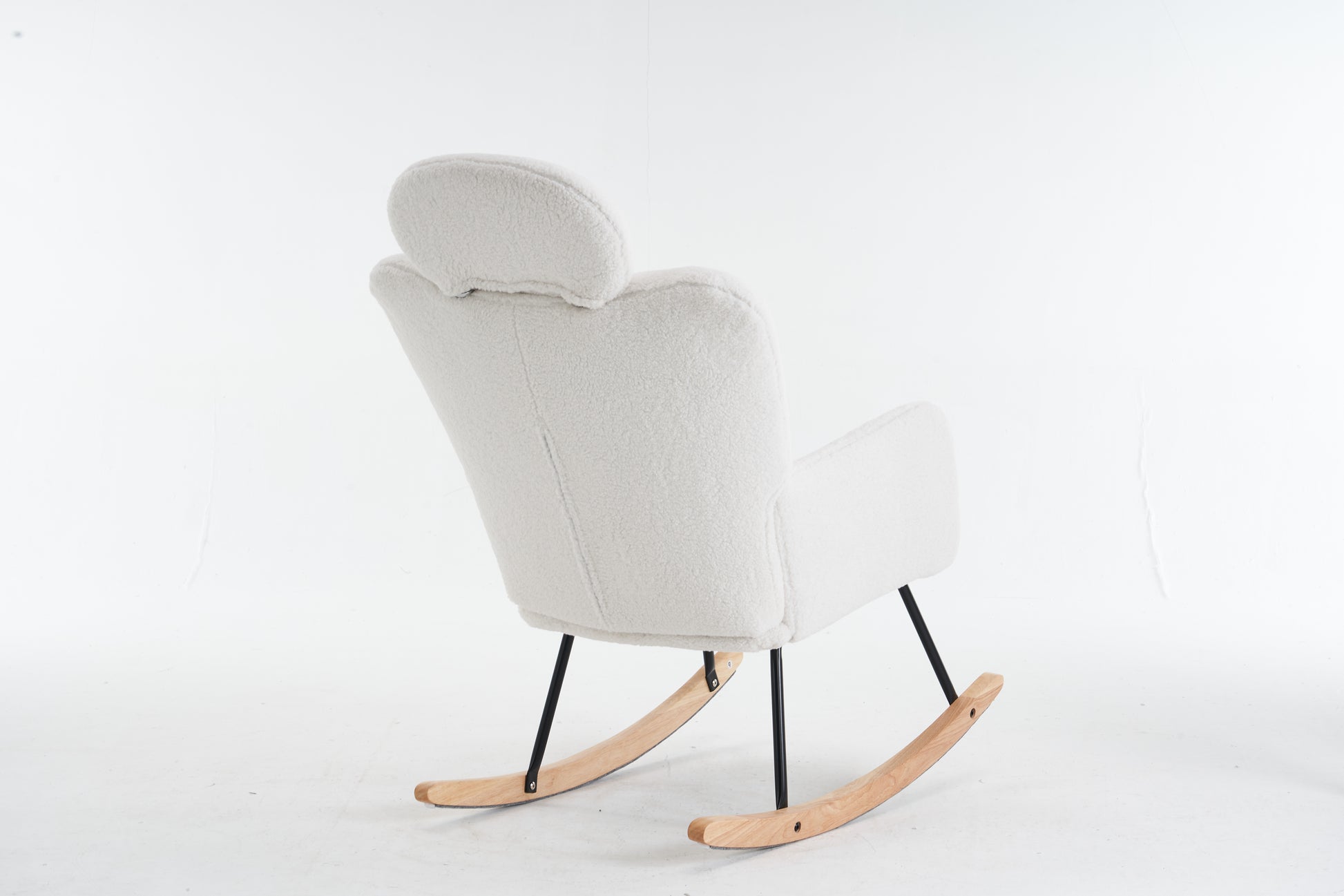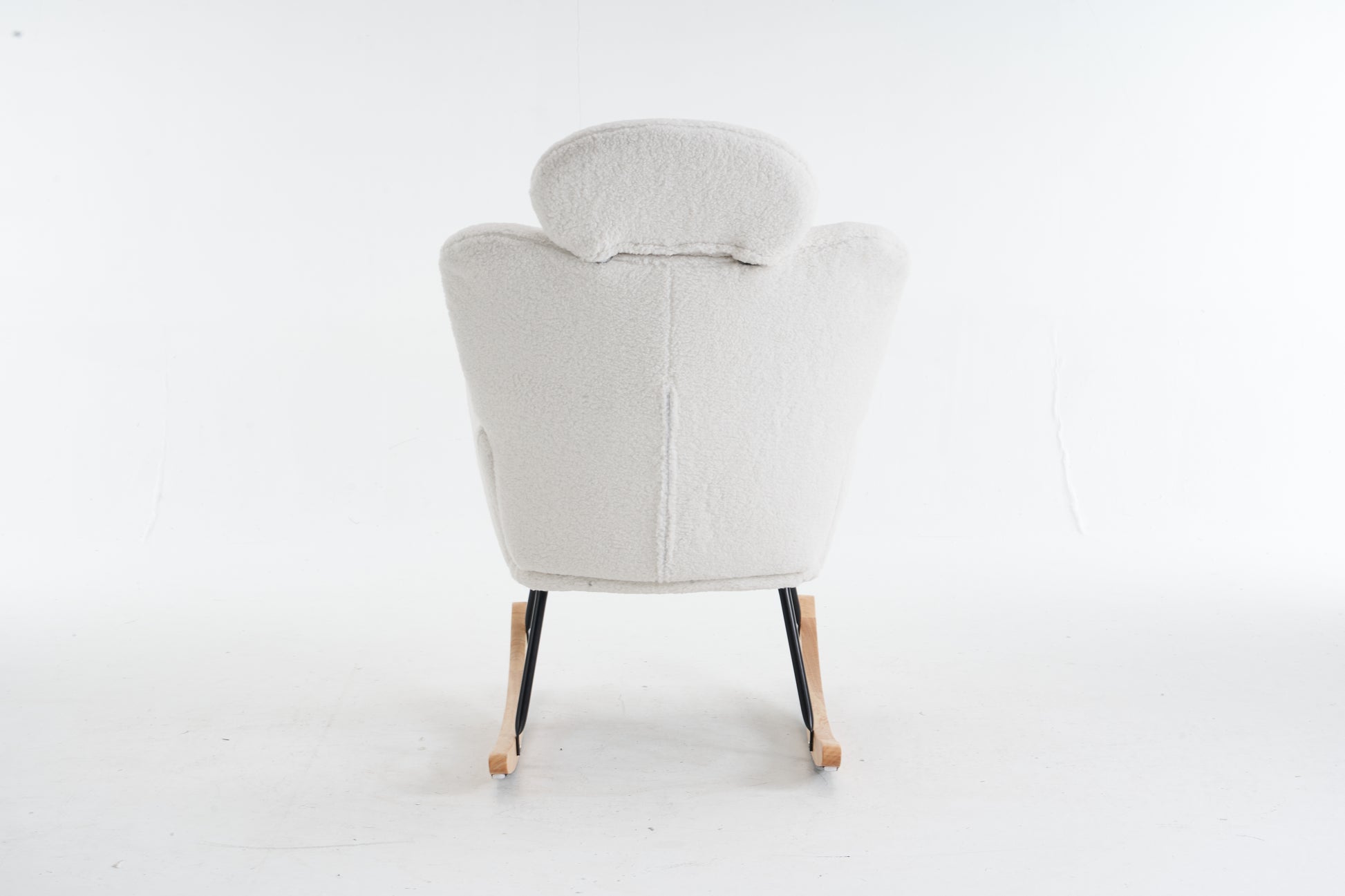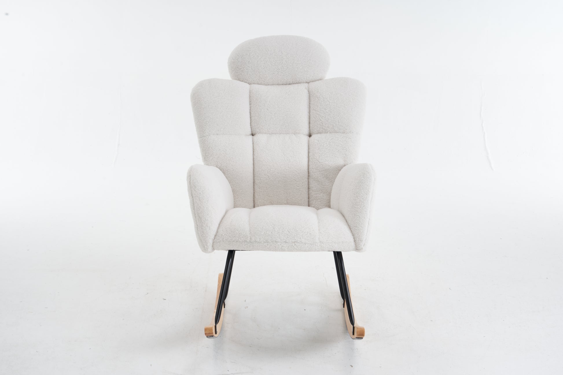 055 Teddy Fabric Upholstered Nursery Rocking Glider Chair Mid Century Modern Accent Arm Chair Padded Seat With High Backrest And Pillows For Living Room Bedroom Offices Ivory Teddy Headrest Solid