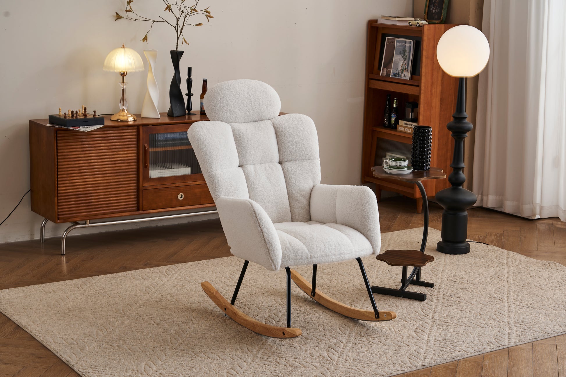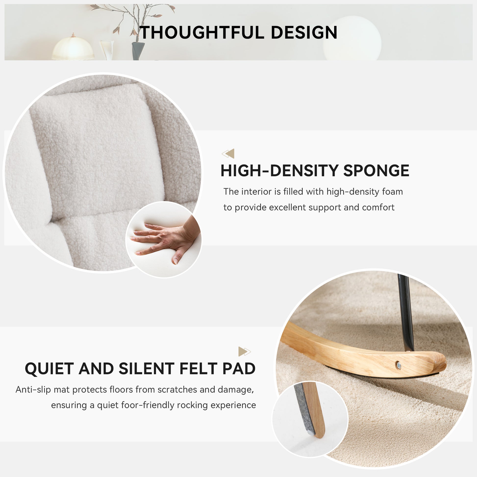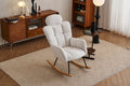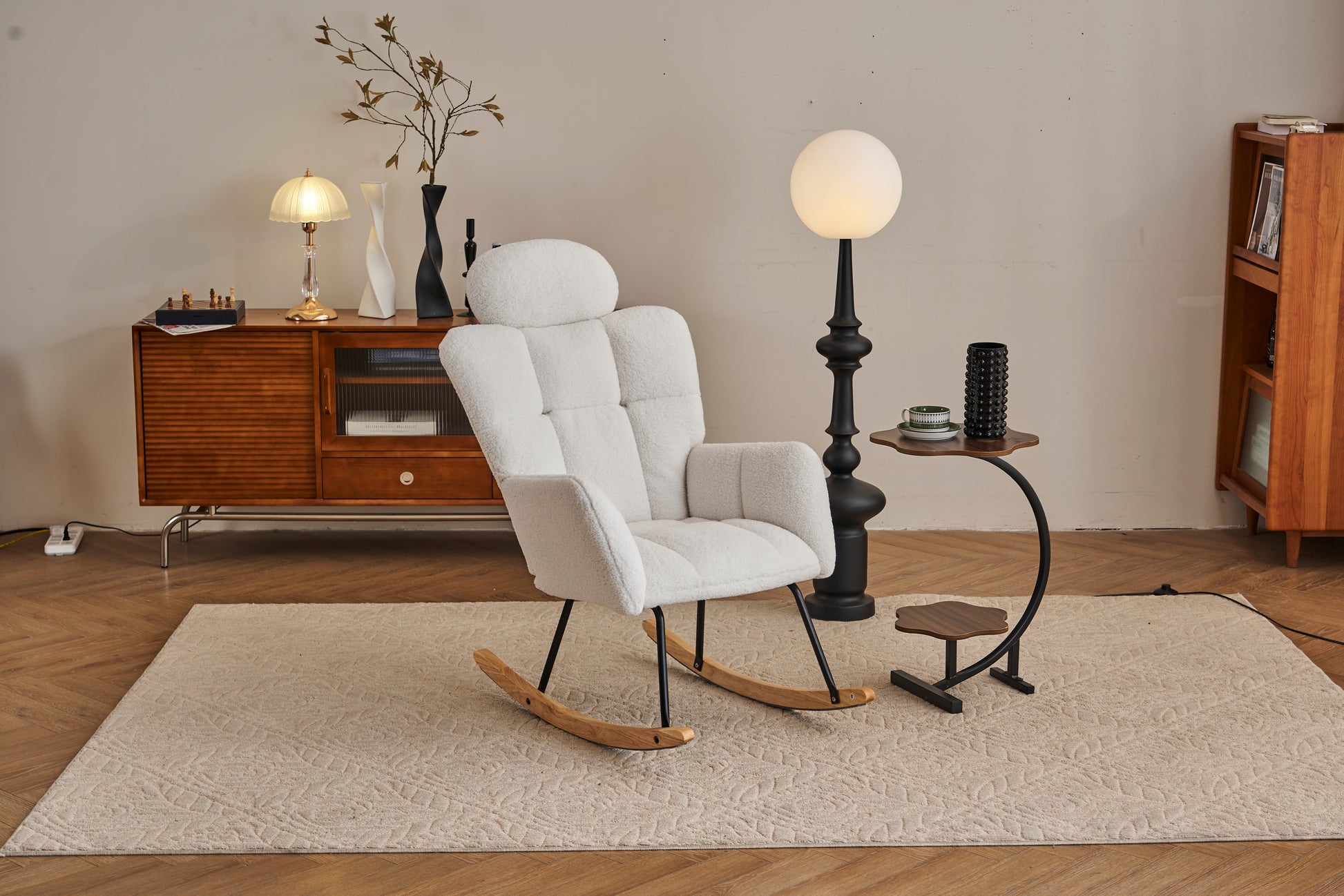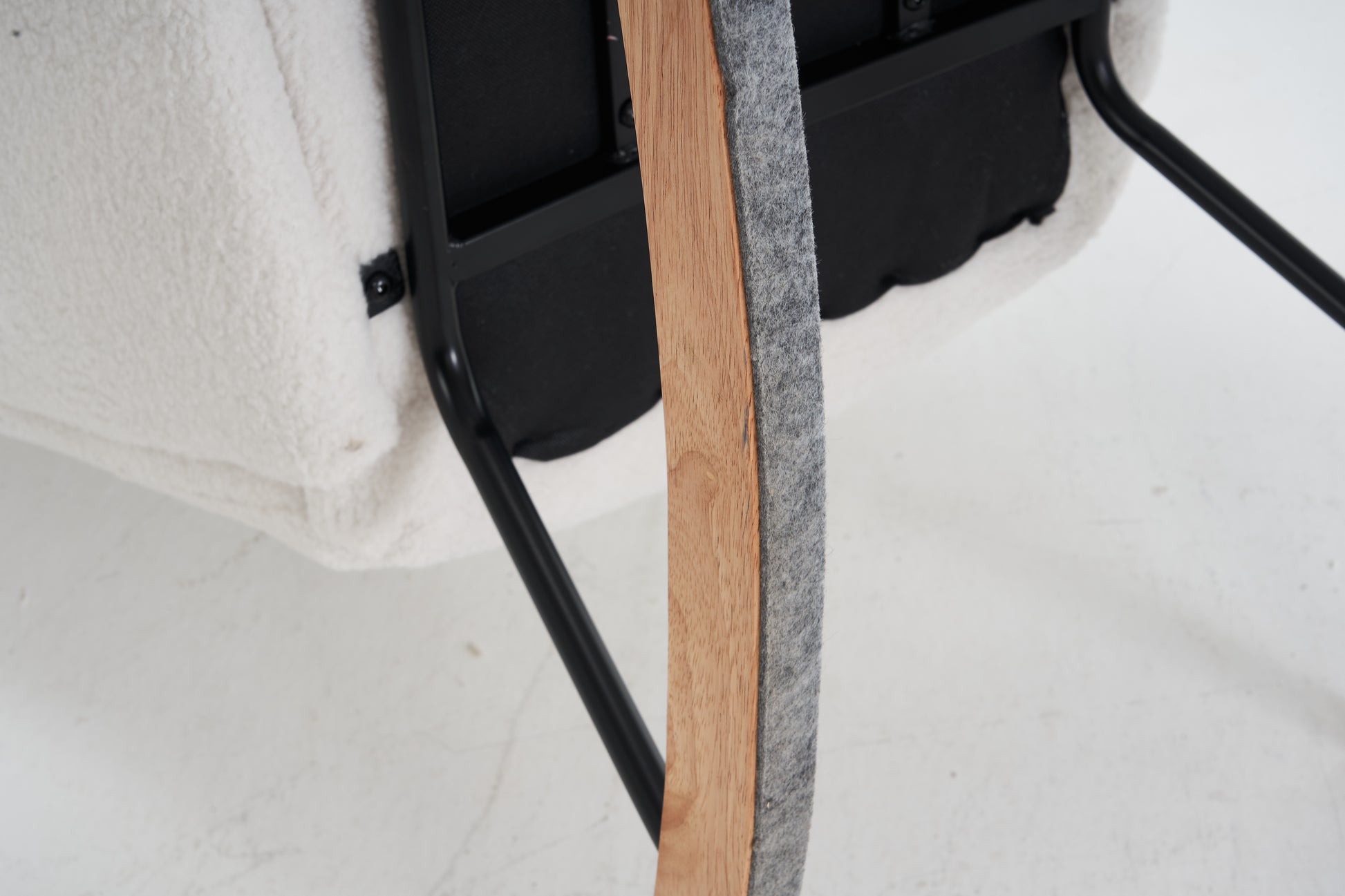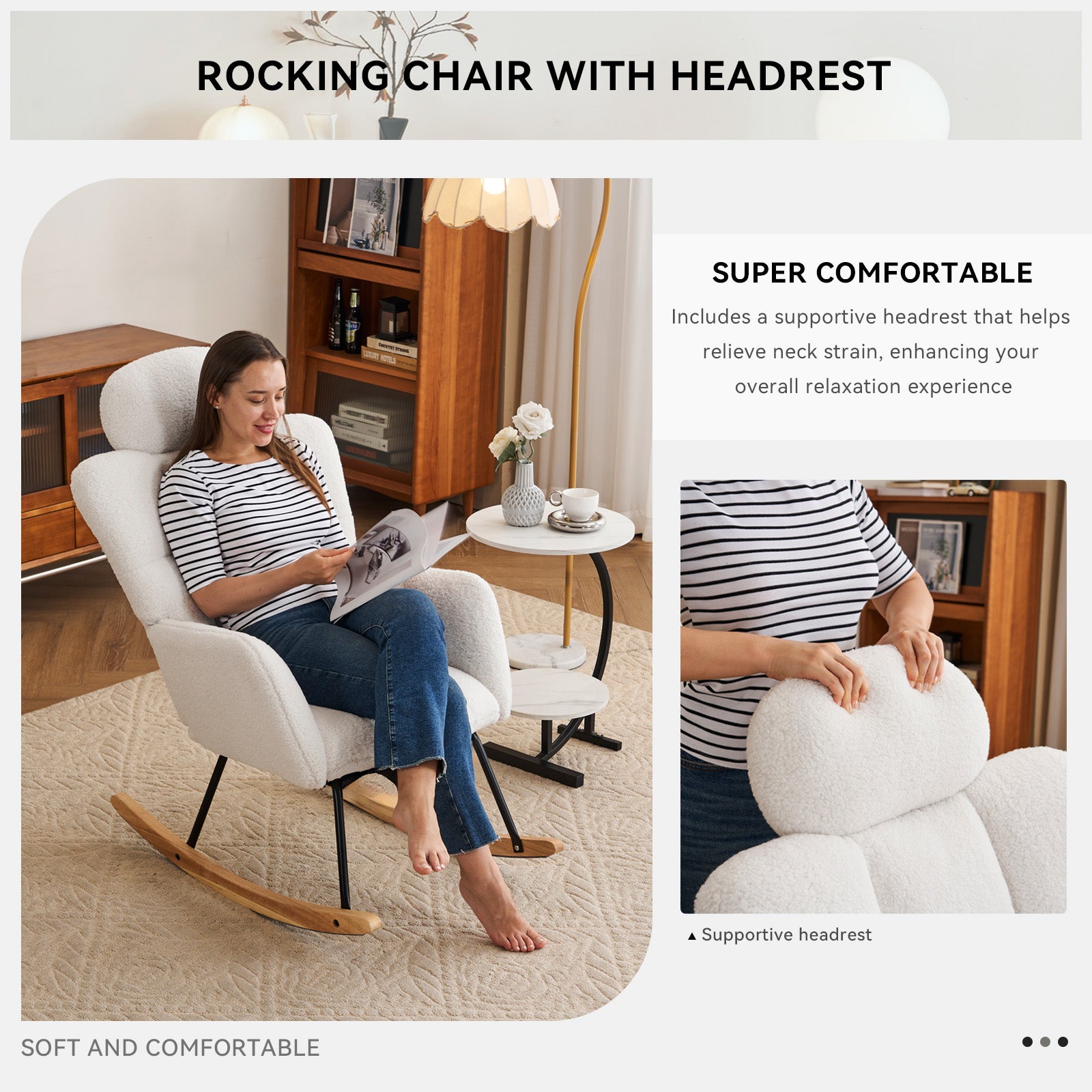 055 Teddy Fabric Upholstered Nursery Rocking Glider Chair Mid Century Modern Accent Arm Chair Padded Seat With High Backrest And Pillows For Living Room Bedroom Offices Ivory Teddy Headrest Solid