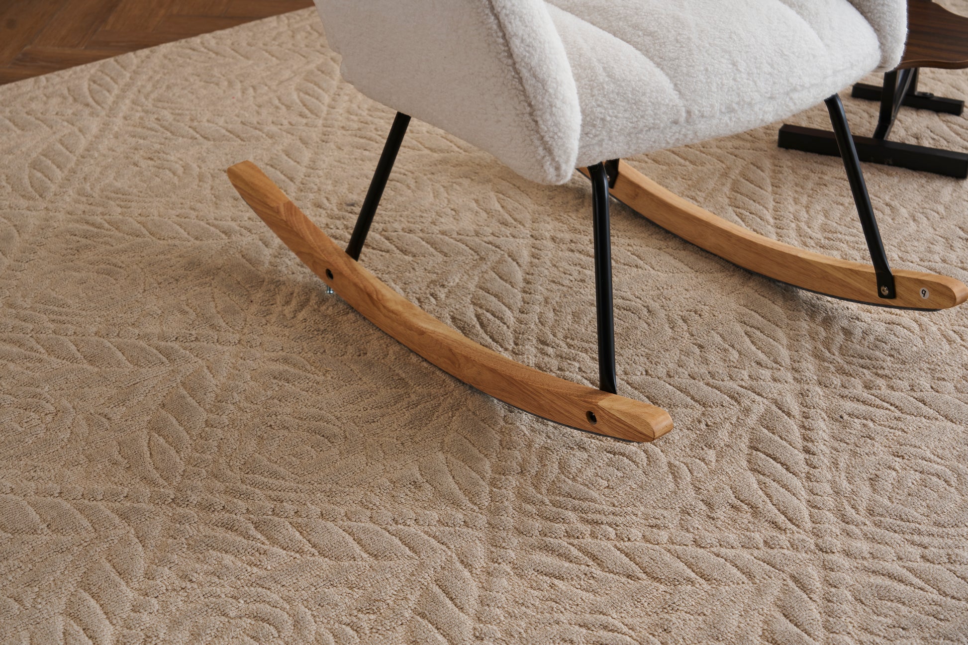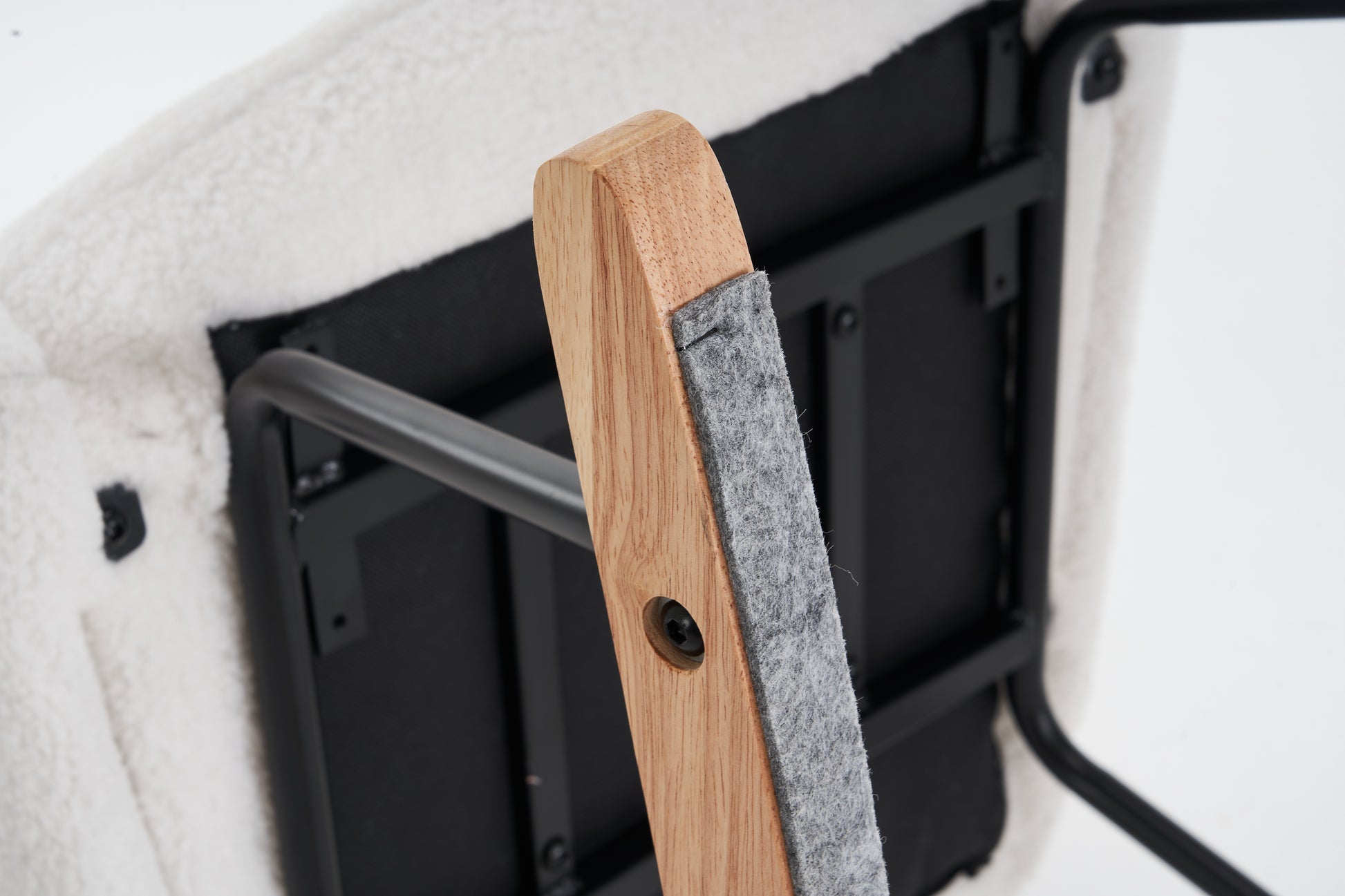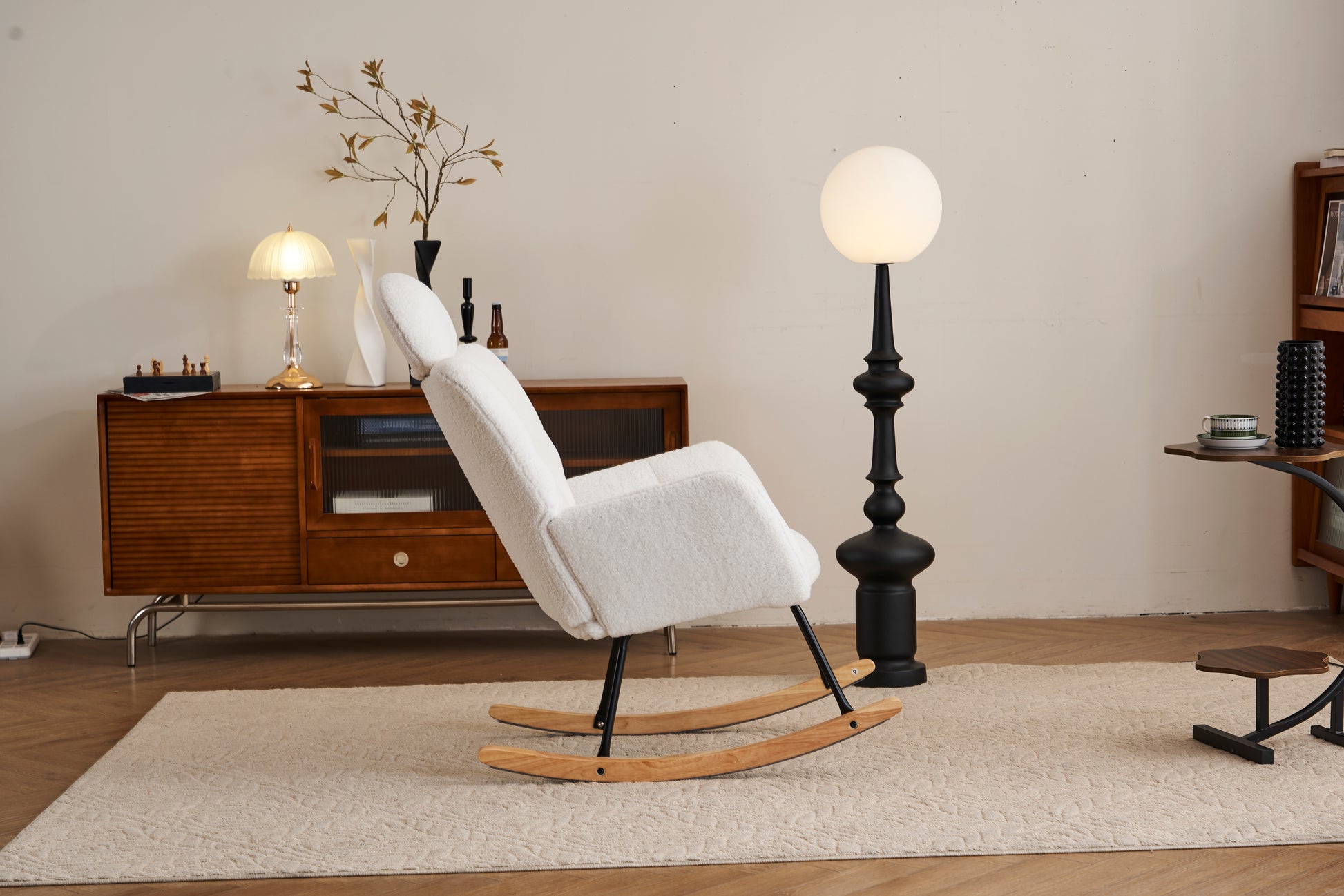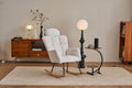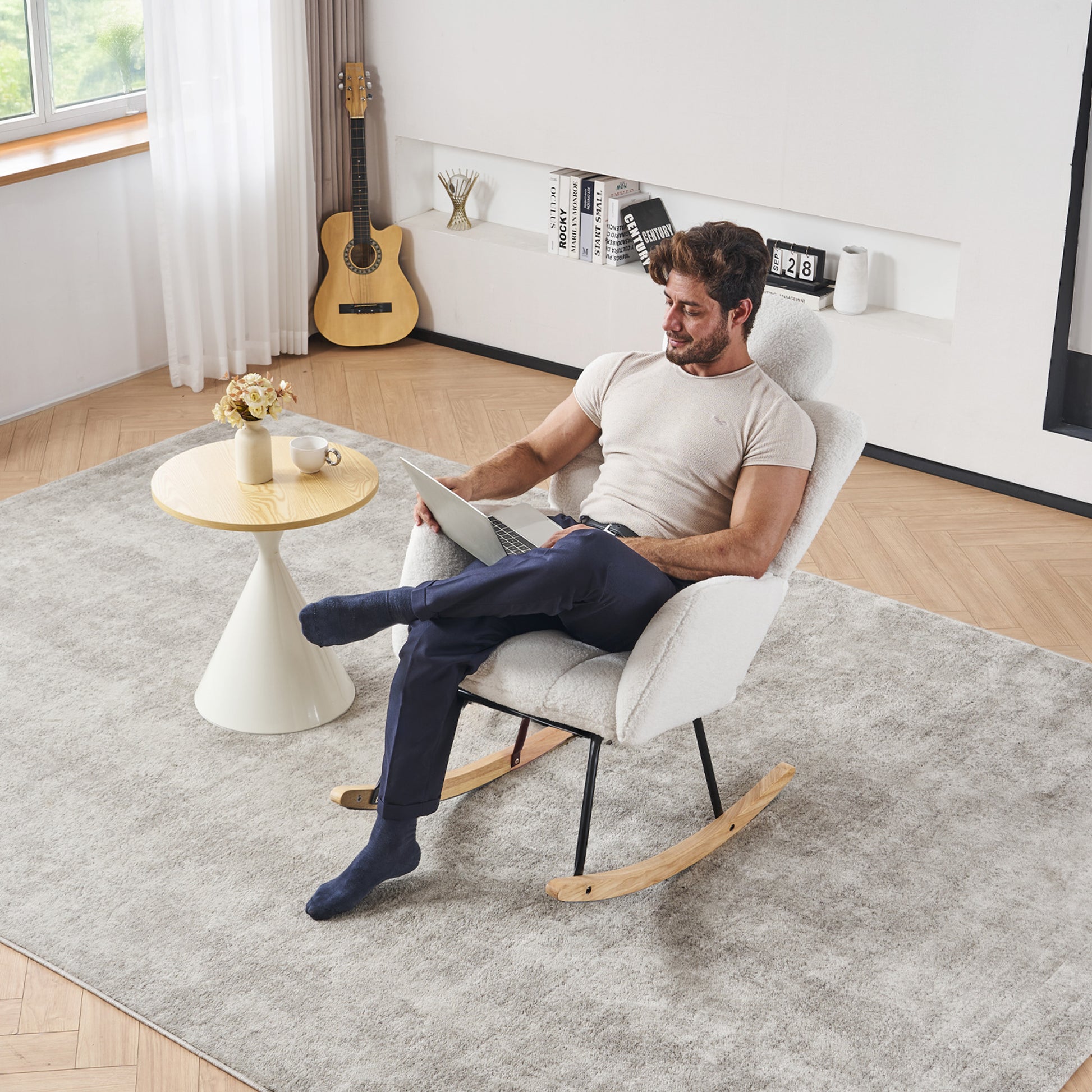 055 Teddy Fabric Upholstered Nursery Rocking Glider Chair Mid Century Modern Accent Arm Chair Padded Seat With High Backrest And Pillows For Living Room Bedroom Offices Ivory Teddy Headrest Solid