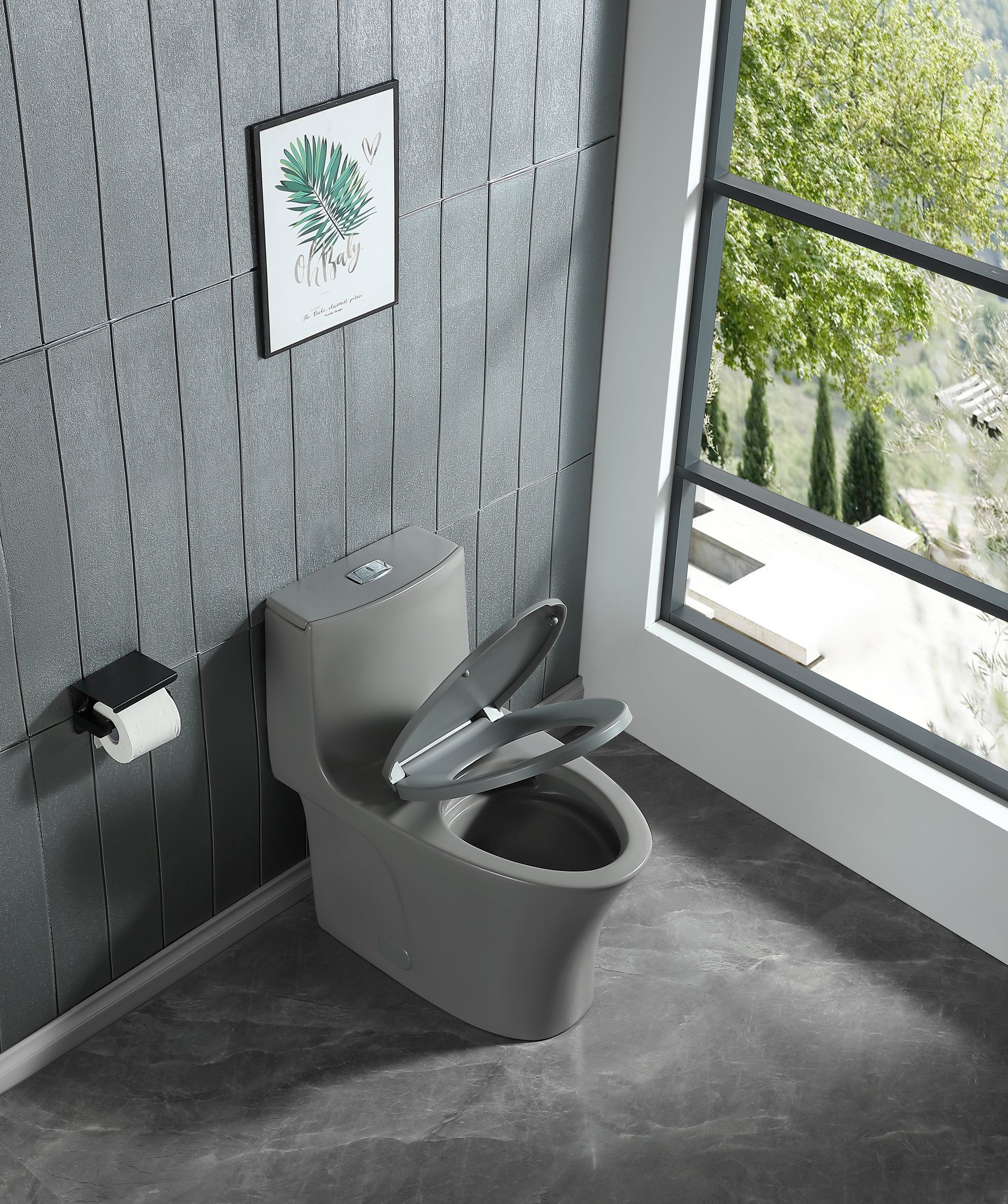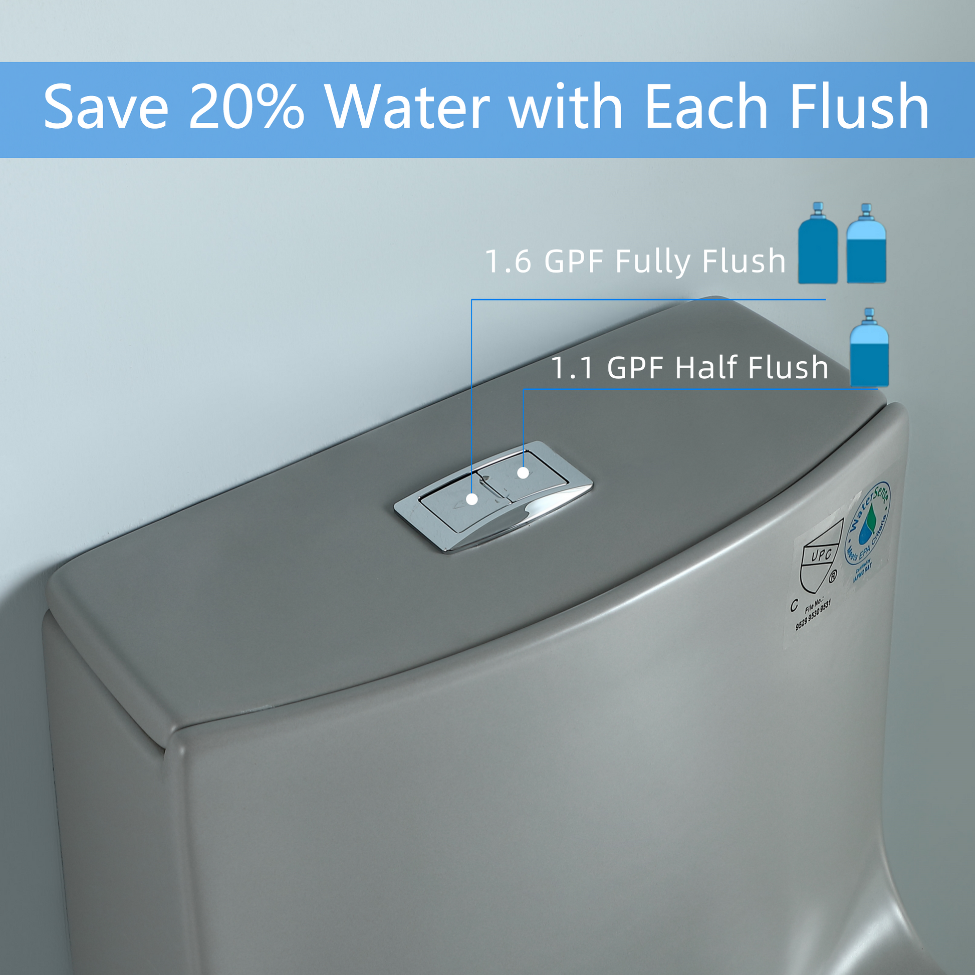 1.1 1.60 Gpf Dual Flush One Piece Toilet, Water Saving Elongated Comfort Height Floor Mounted, Soft Closing Seat, 1000 Gram Map Flushing Score Toilet, Light Grey 23T02 Lg Light Gray Ceramic