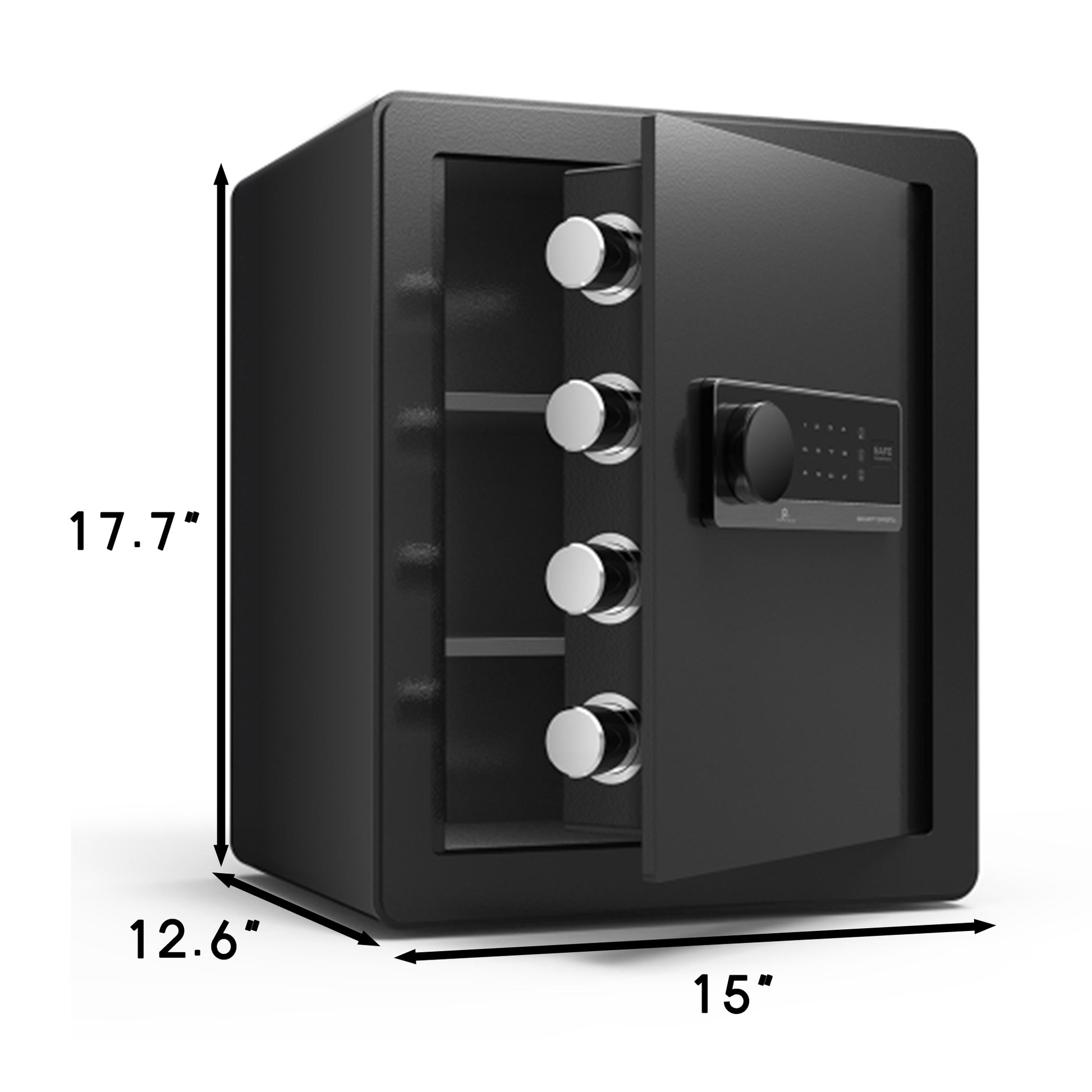 1.7 Cubic Feet Black Steel Safe, With Dual Alarms And Digital Touch Screen For Homes, Hotels, Offices And More. Black Steel Steel