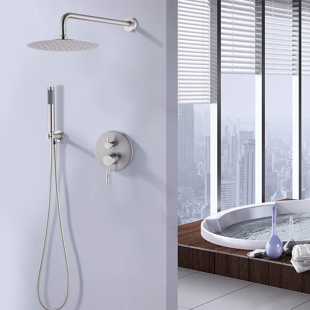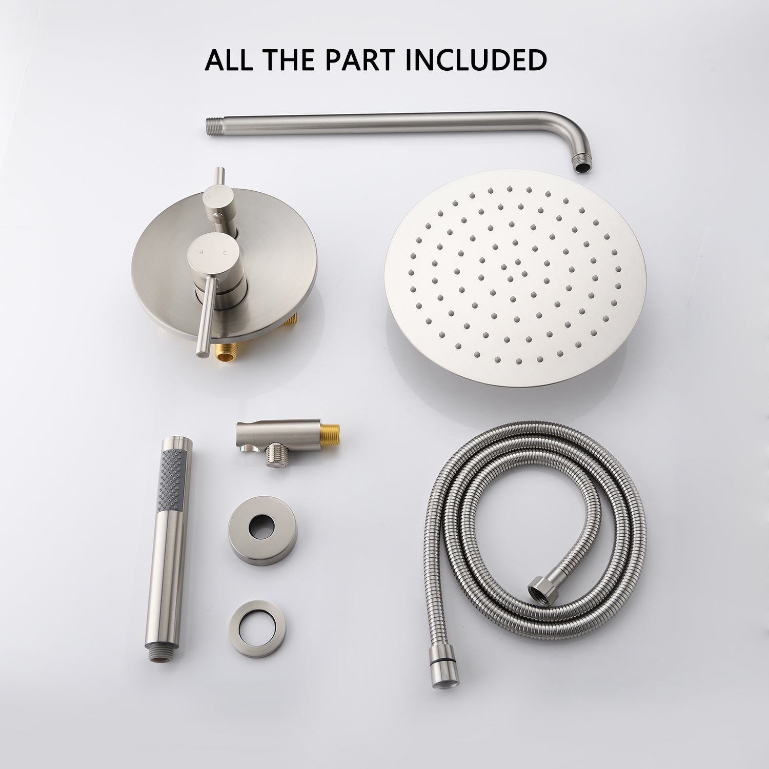 10" Brushed Nickle Roud Rain Shower Head And Handheld Shower Head Set Brushed Nickel Brass