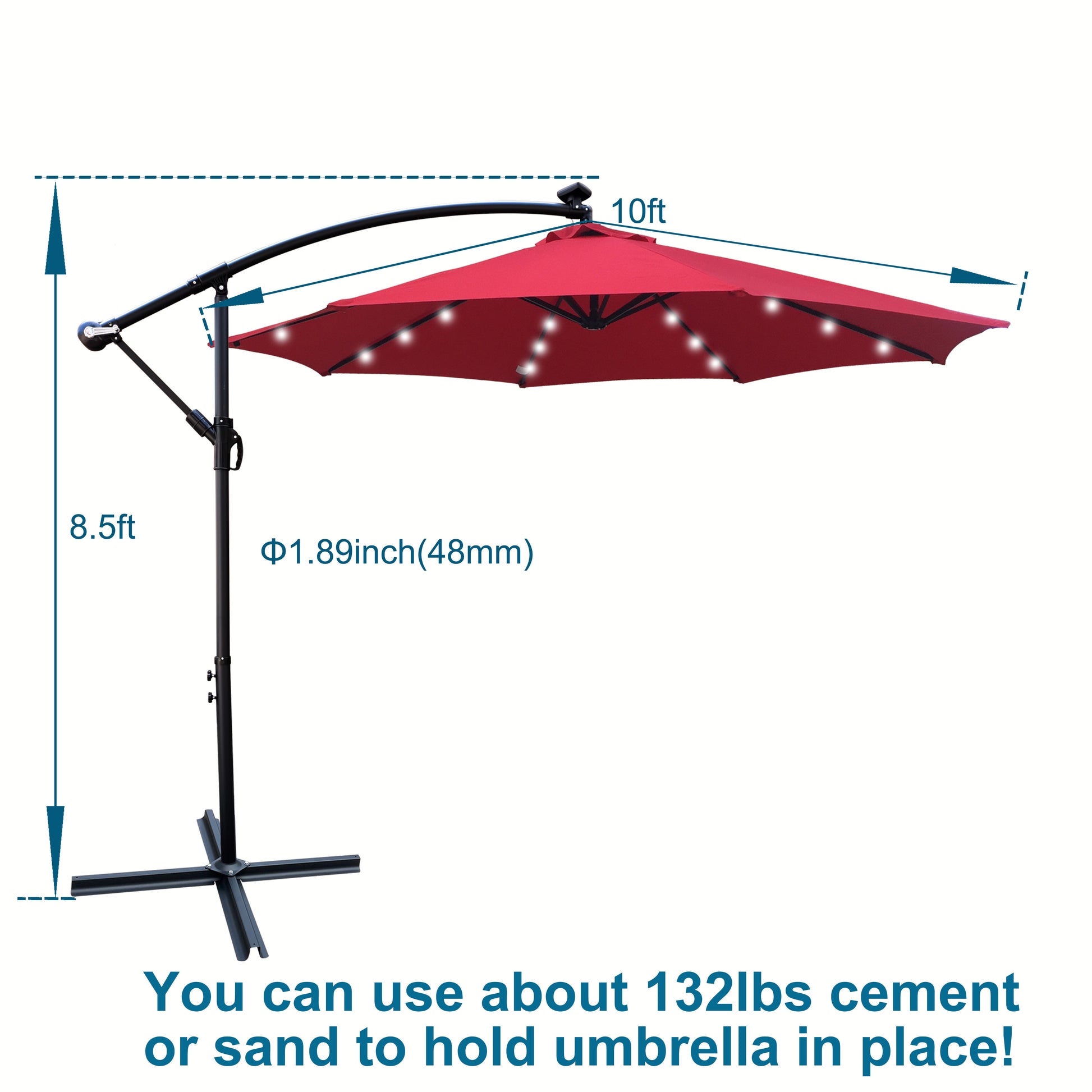 10 Ft Outdoor Patio Umbrella Solar Powered Led Lighted 8 Ribs Umbrella With Crank And Cross Base For Garden Outside Deck Swimming Pool Red Metal