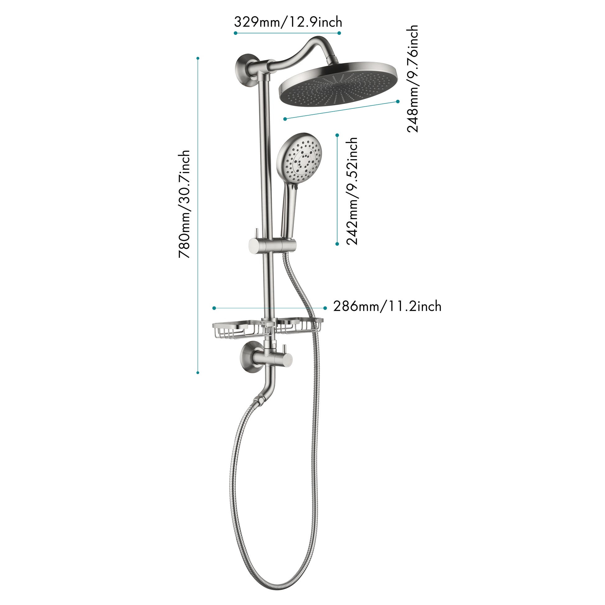 10 In Brushed Nickel Rain Showerhead, Hand Shower, Slide Bar, And Soap Dish Brushed Nickel Modern Brass Brass