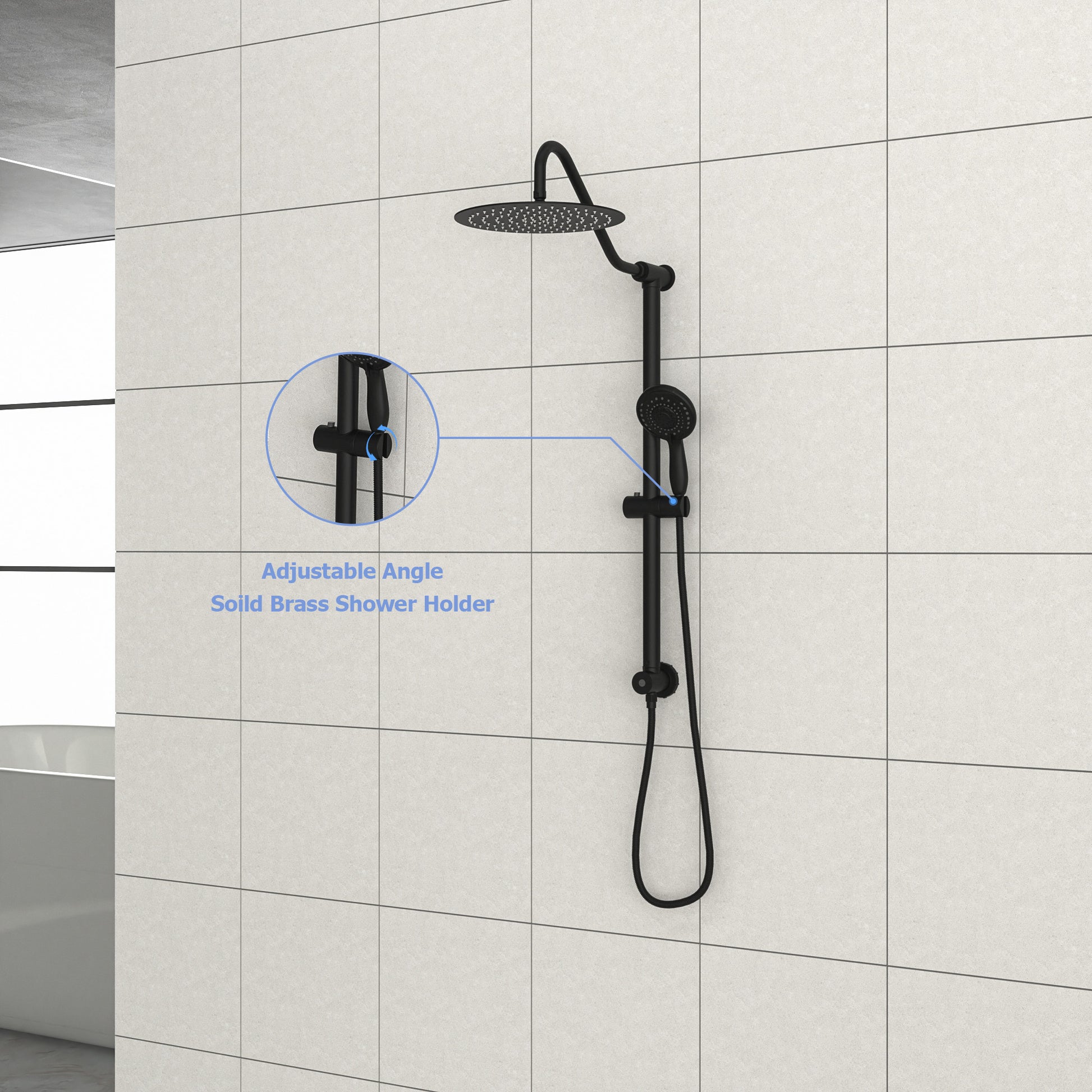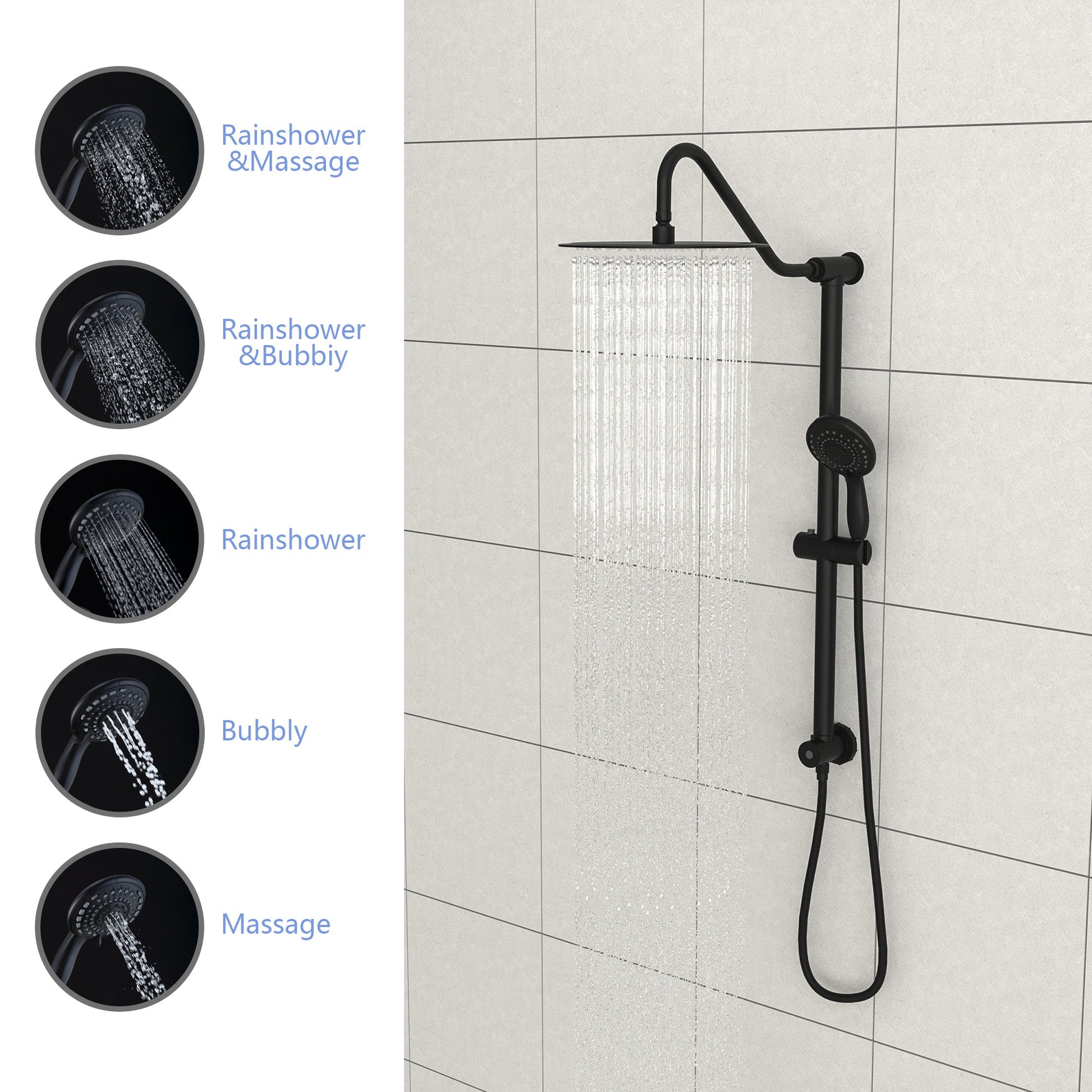 10 Inch Shower System With 5 Function Rain Hand Shower, 26.3" Slide Bar Shower Head Combo, Matte Black Matte Black Metal