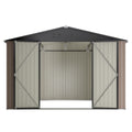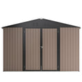 10' X 10' Metal Storage Shed For Ourdoor, Steel Yard Shed With Design Of Lockable Doors, Utility And Tool Storage For Garden, Backyard, Patio, Outside Use Brown Metal