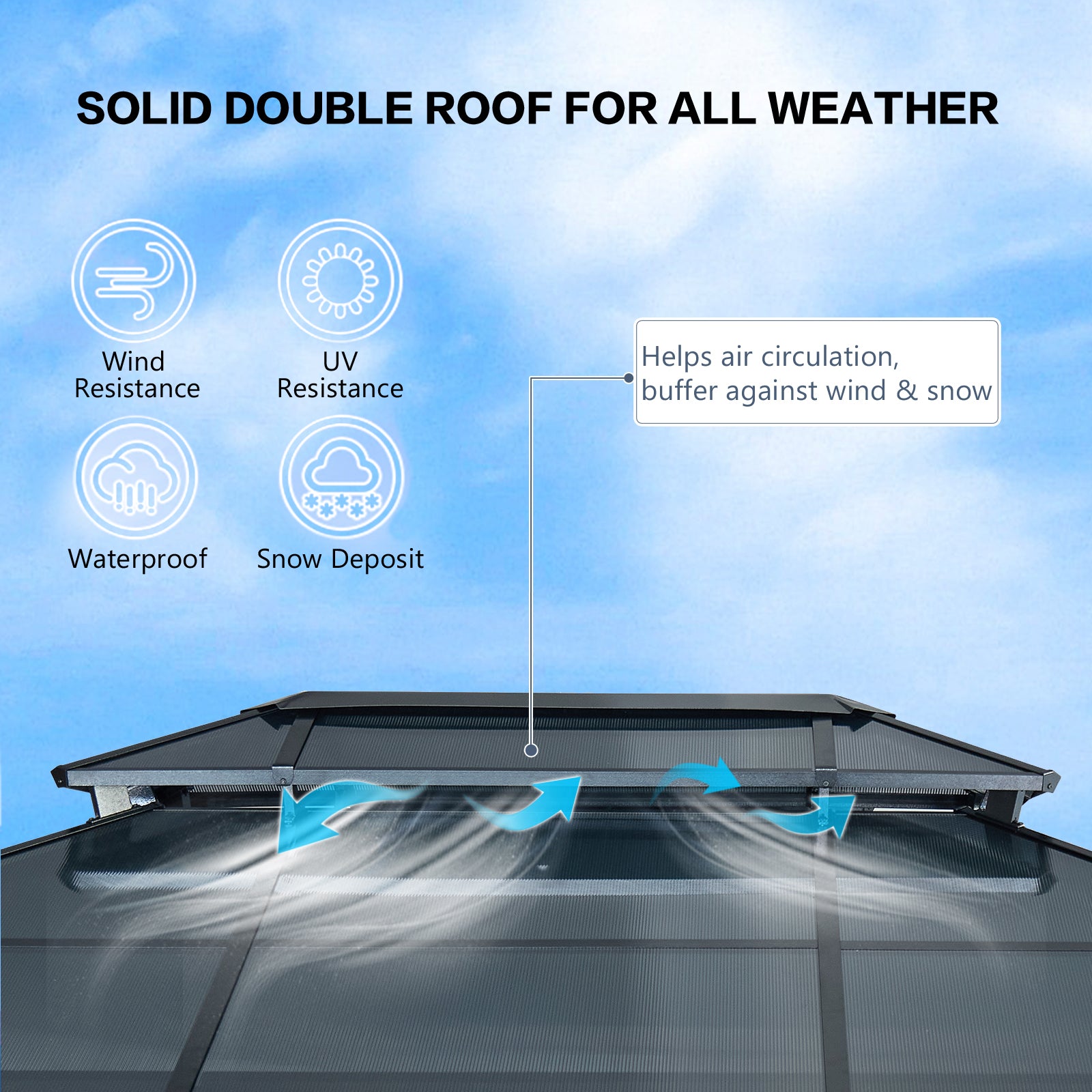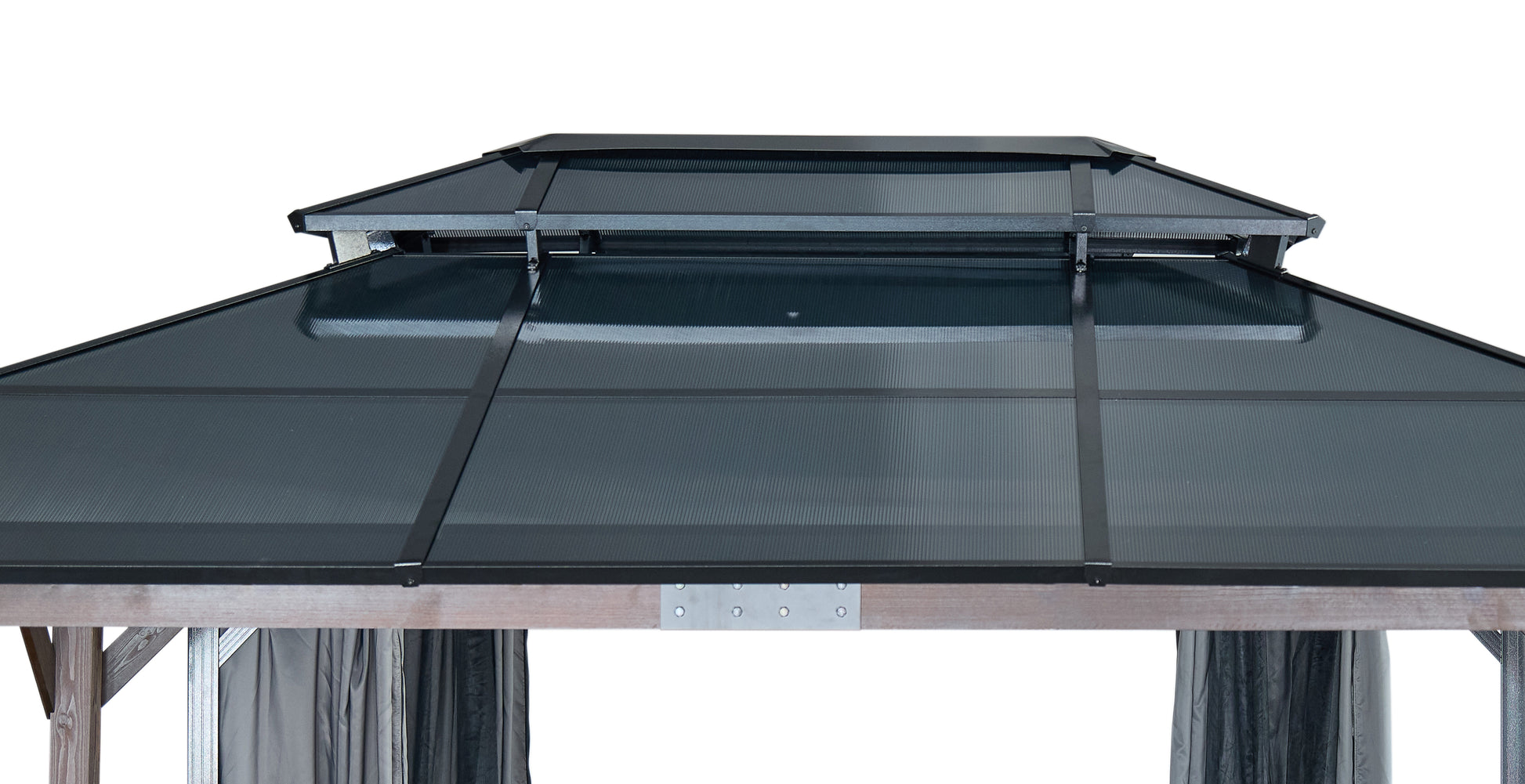 10' X 13' Hardtop Wood Gazebo For Patios, Outdoor Framed Gazebo With Polycarbonate Double Roof Canopy, Solid Wooden Framed Gazebo With Privacy Curtains And Mosquito Nettings For Garden, Backyard Black Brown Metal & Wood