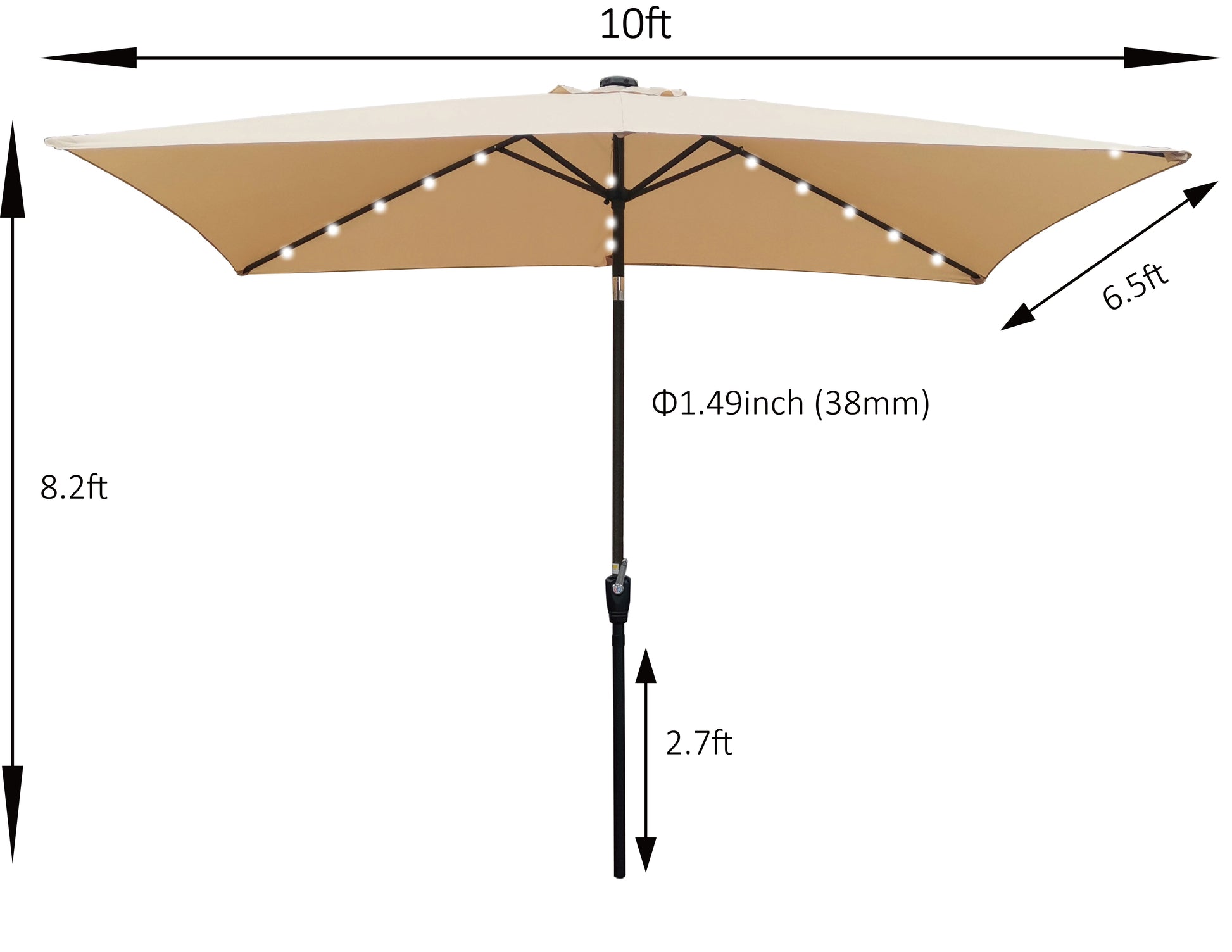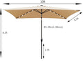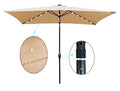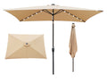 10 X 6.5T Rectangular Patio Solar Led Lighted Outdoor Market Umbrellas With Crank And Push Button Tilt For Garden Shade Swimming Poo Tan Metal