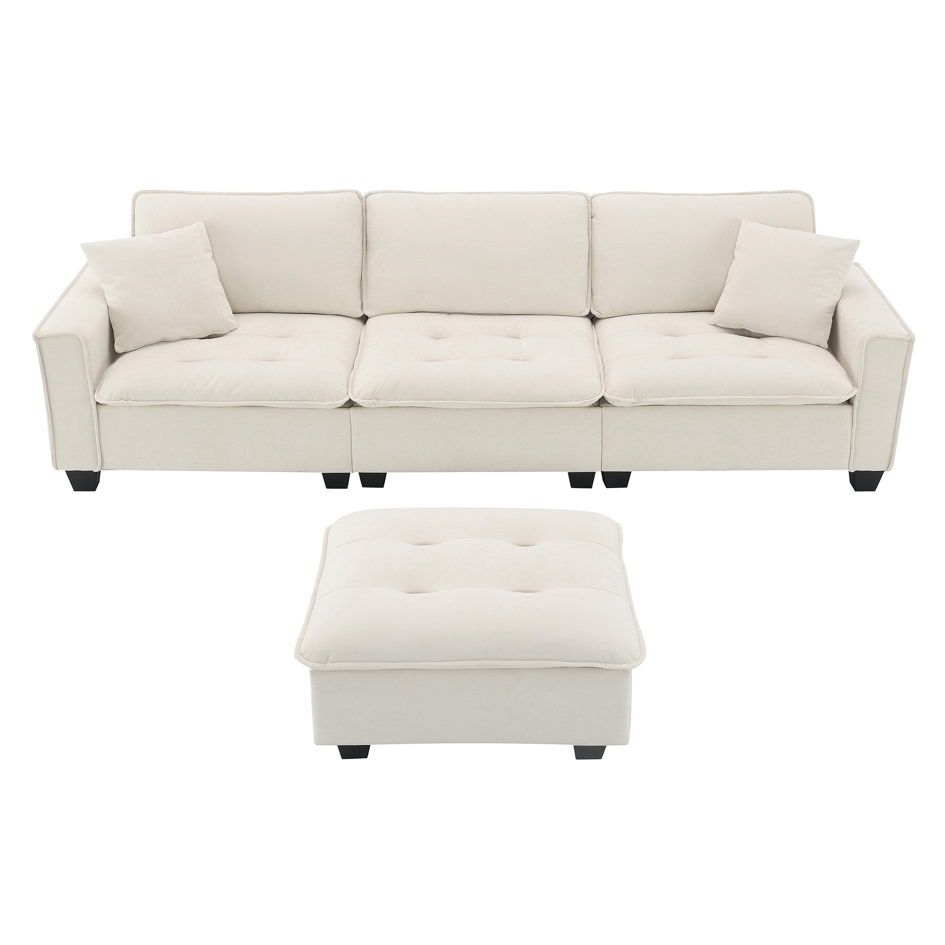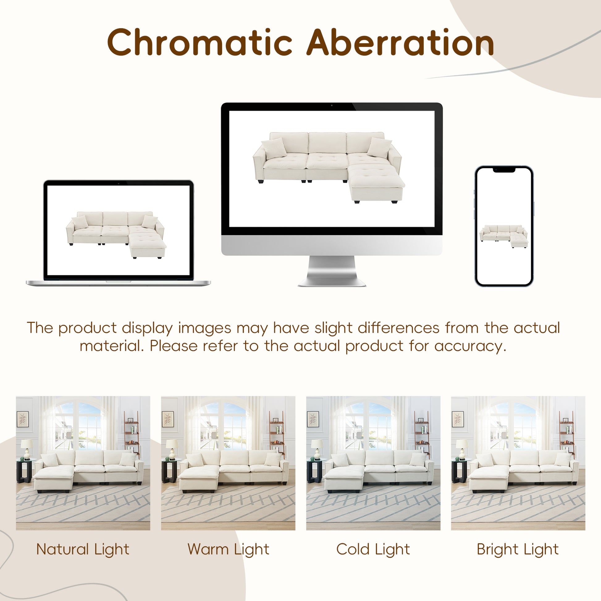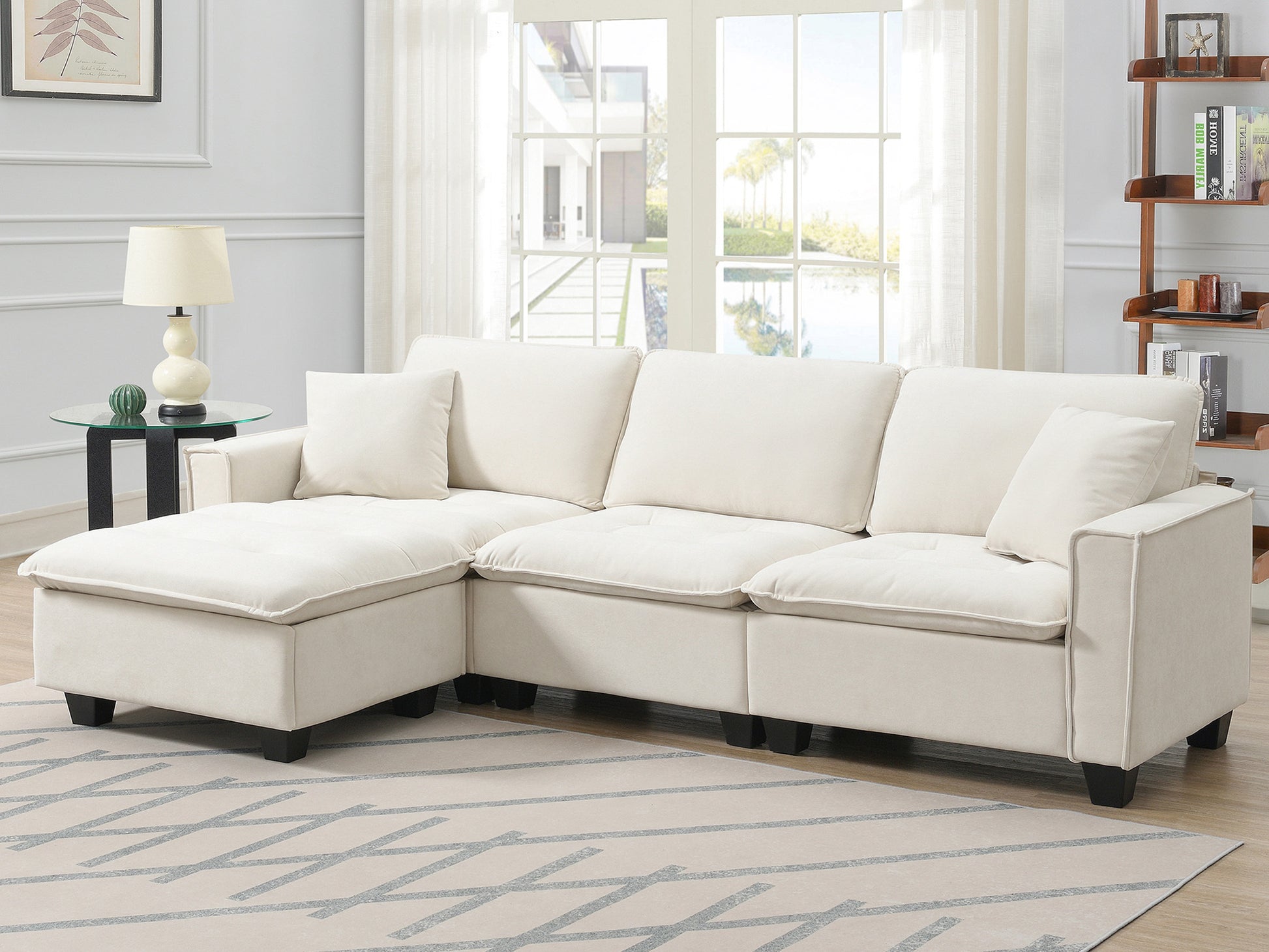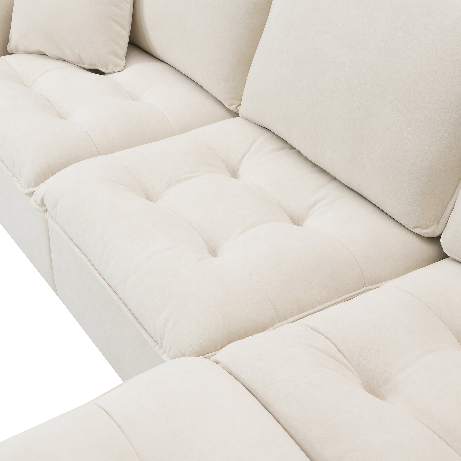 100*59" Modern Convertible Sectional Sofa,L Shaped Reversible Couch Set With Free Pillows,4 Seat Suede Velvet Sleeper Sofa With Ottoman For Living Room,Apartment,Office,3 Colors Beige Suede 4 Seat