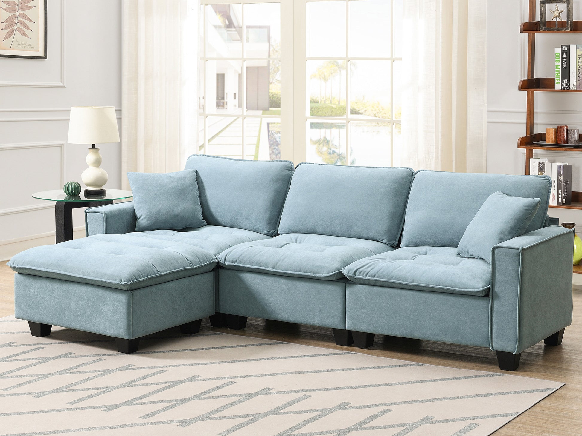100*59" Modern Convertible Sectional Sofa,L Shaped Reversible Couch Set With Free Pillows,4 Seat Suede Velvet Sleeper Sofa With Ottoman For Living Room,Apartment,Office,3 Colors Light Blue Suede 4 Seat