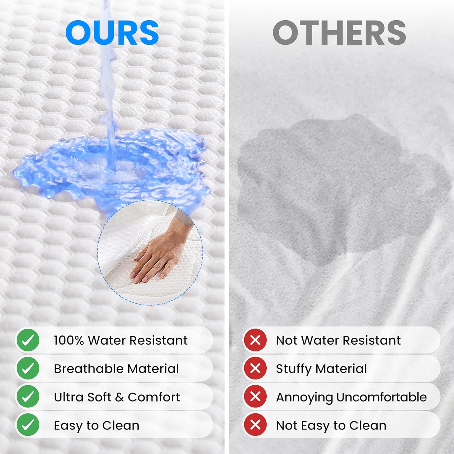 100% Waterproof Bamboo Mattress Protector Full Size Bed White Bamboo Queen