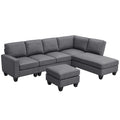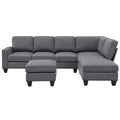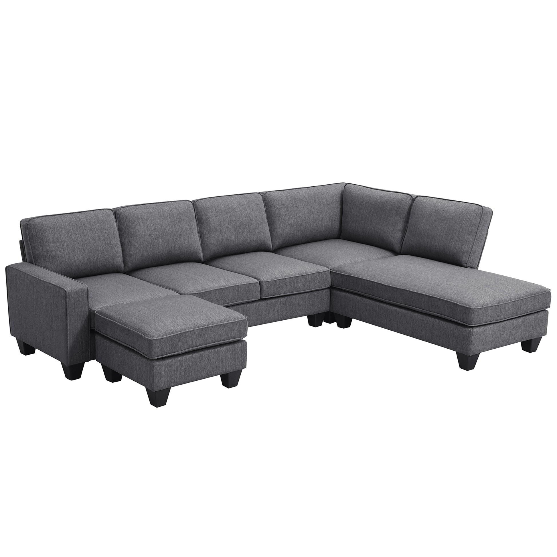 104.3*78.7" Modern L Shaped Sectional Sofa,7 Seat Linen Fabric Couch Set With Chaise Lounge And Convertible Ottoman For Living Room,Apartment,Office,3 Colors Dark Grey Fabric