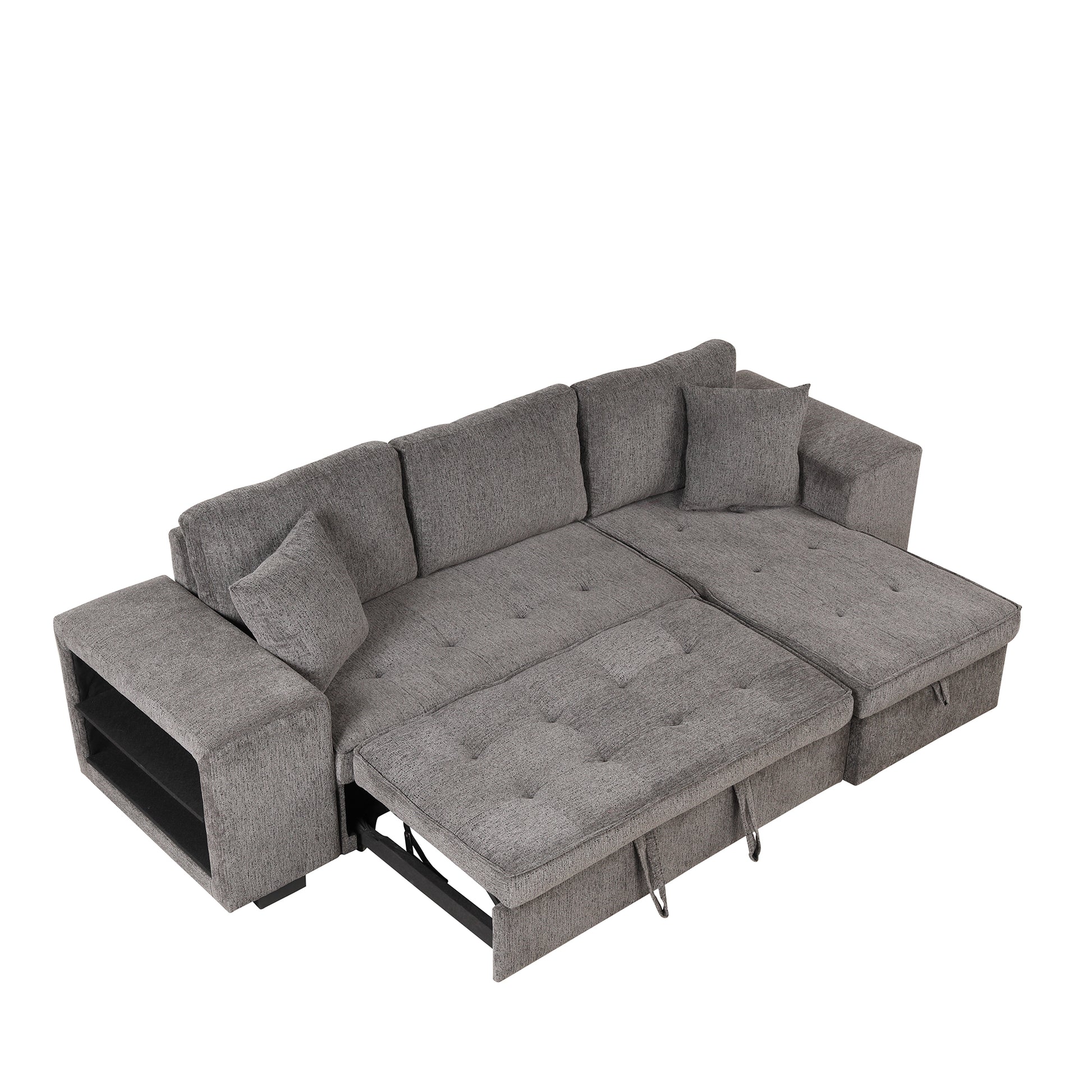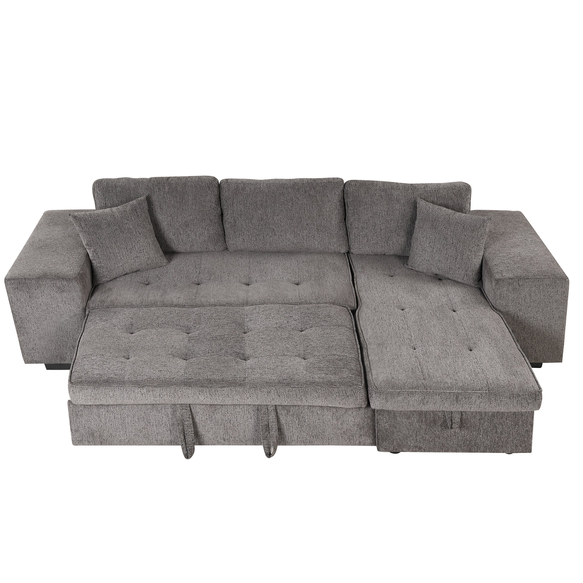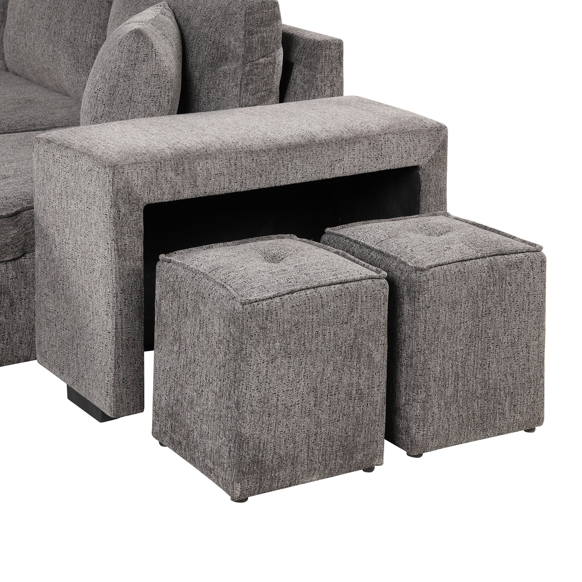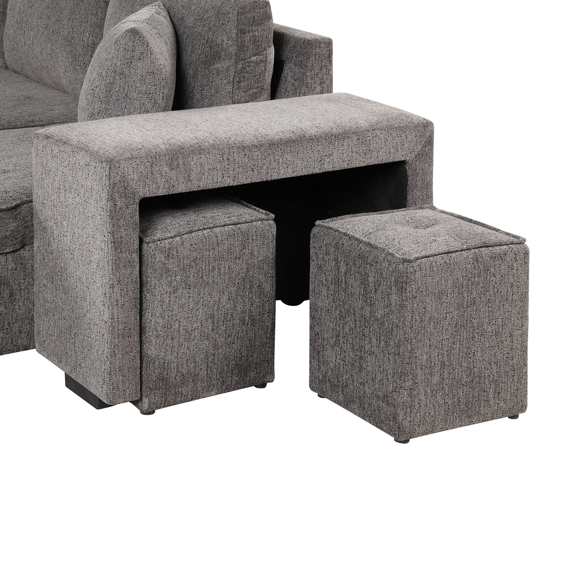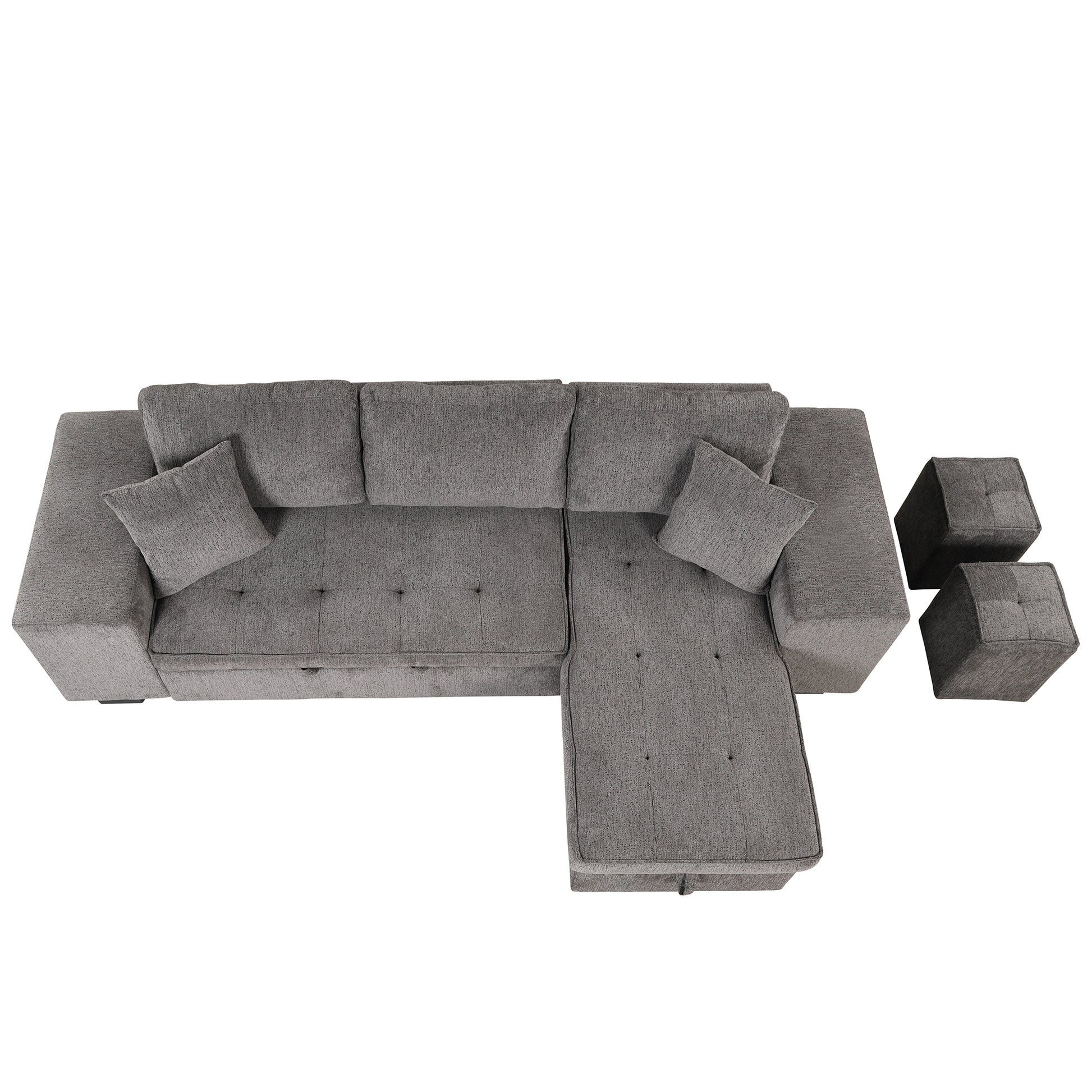 104.5" Modern L Shape 3 Seat Reversible Sectional Couch, Pull Out Sleeper Sofa With Storage Chaise And 2 Stools For Living Room Furniture Set,Knox Charcoal Old Sku:Sg000431Aaa Knox Charcoal Foam Linen 3 Seat