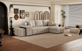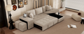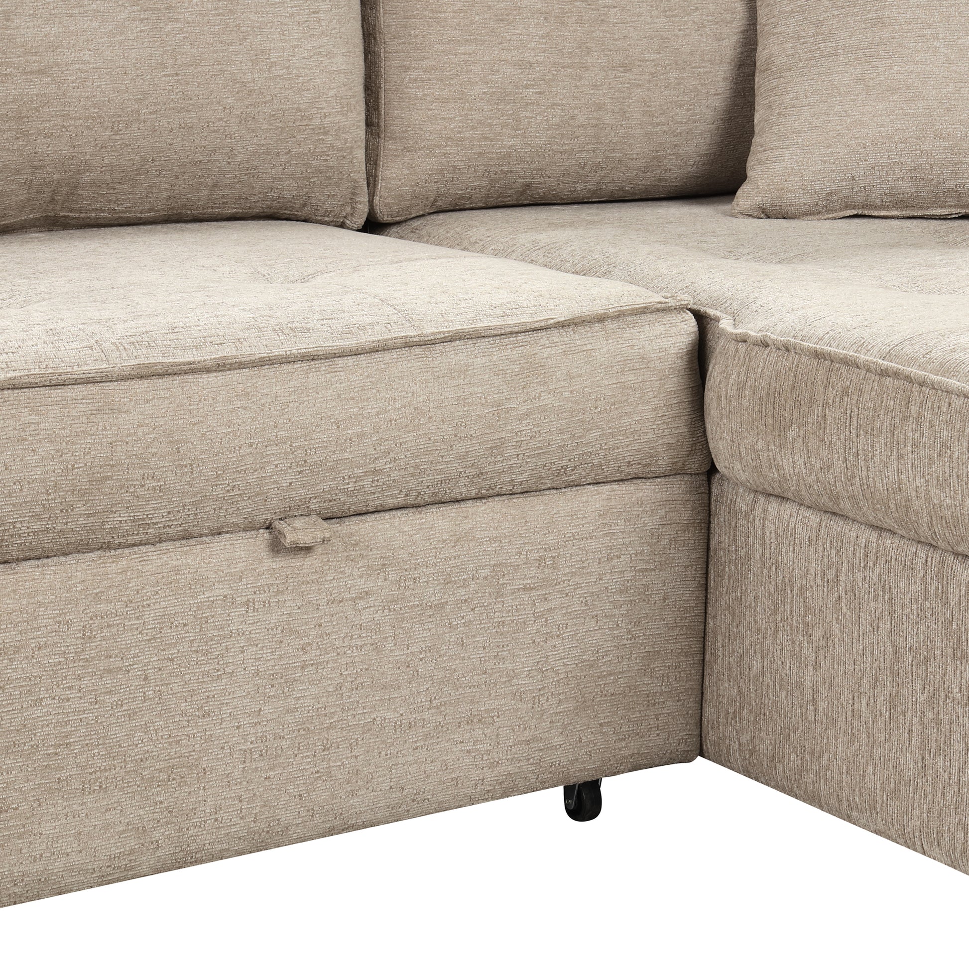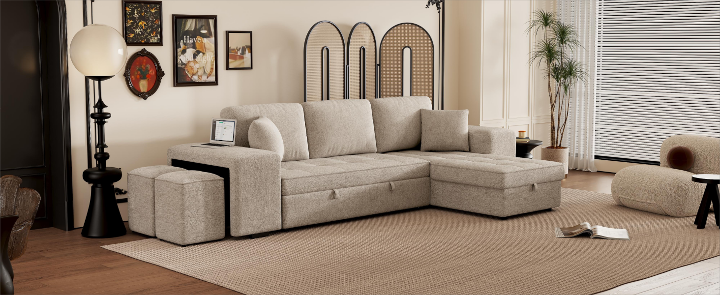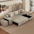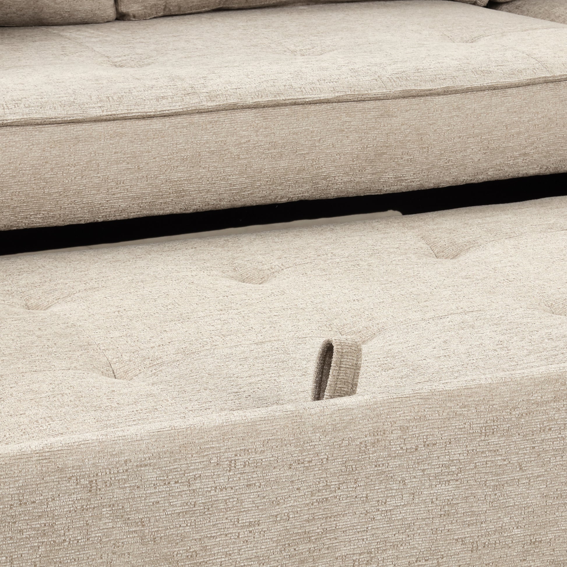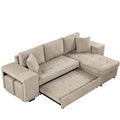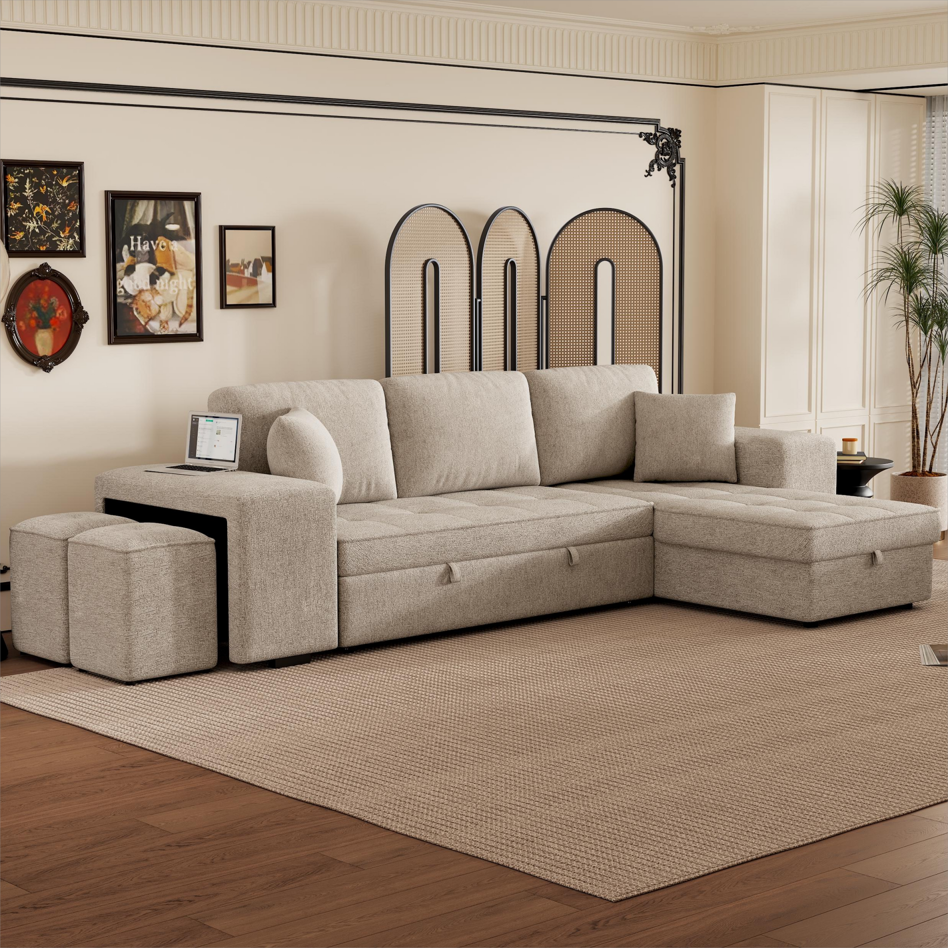 104.5" Modern L Shape 3 Seat Reversible Sectional Couch, Pull Out Sleeper Sofa With Storage Chaise And 2 Stools For Living Room Furniture Set, Cream Cream Foam Chenille 3 Seat