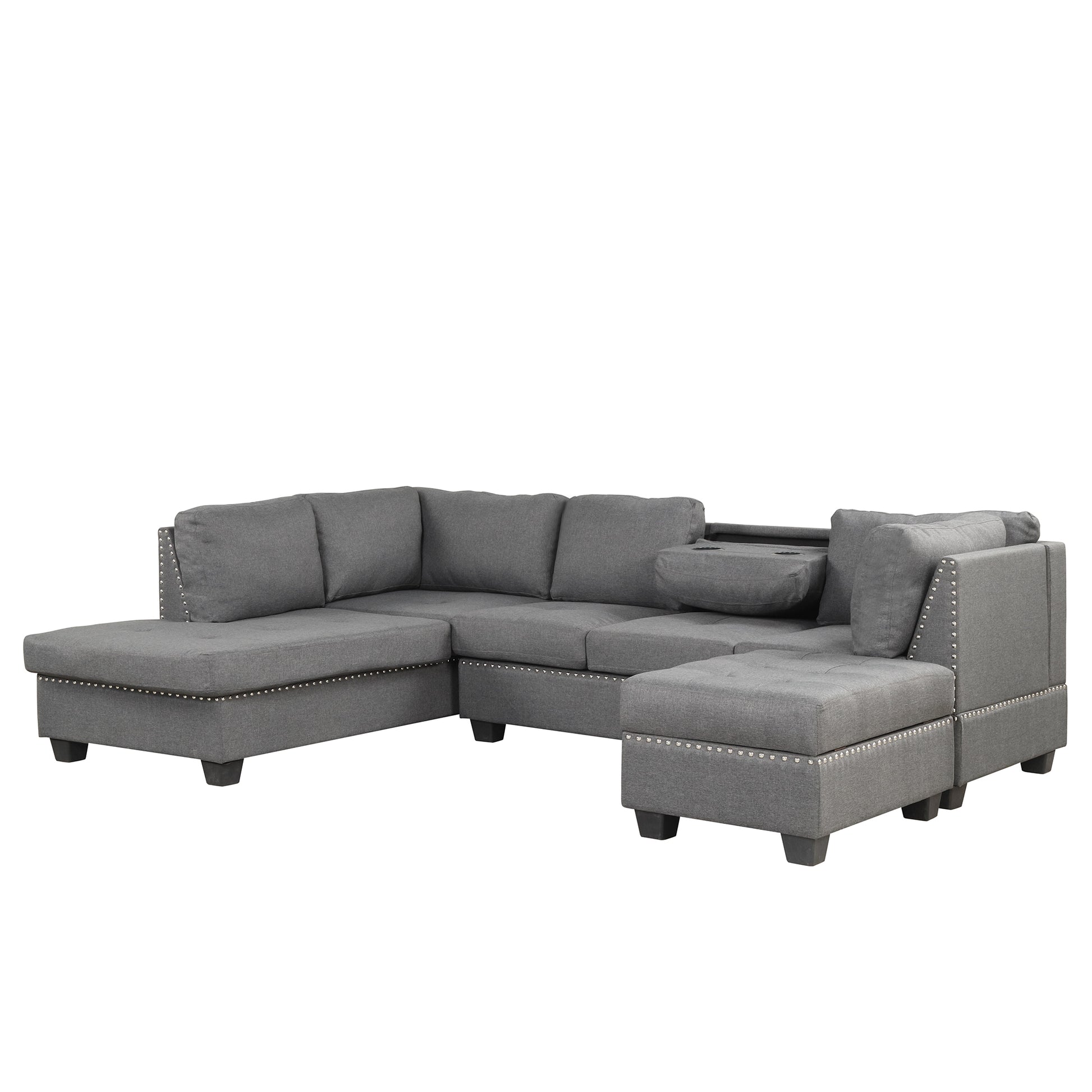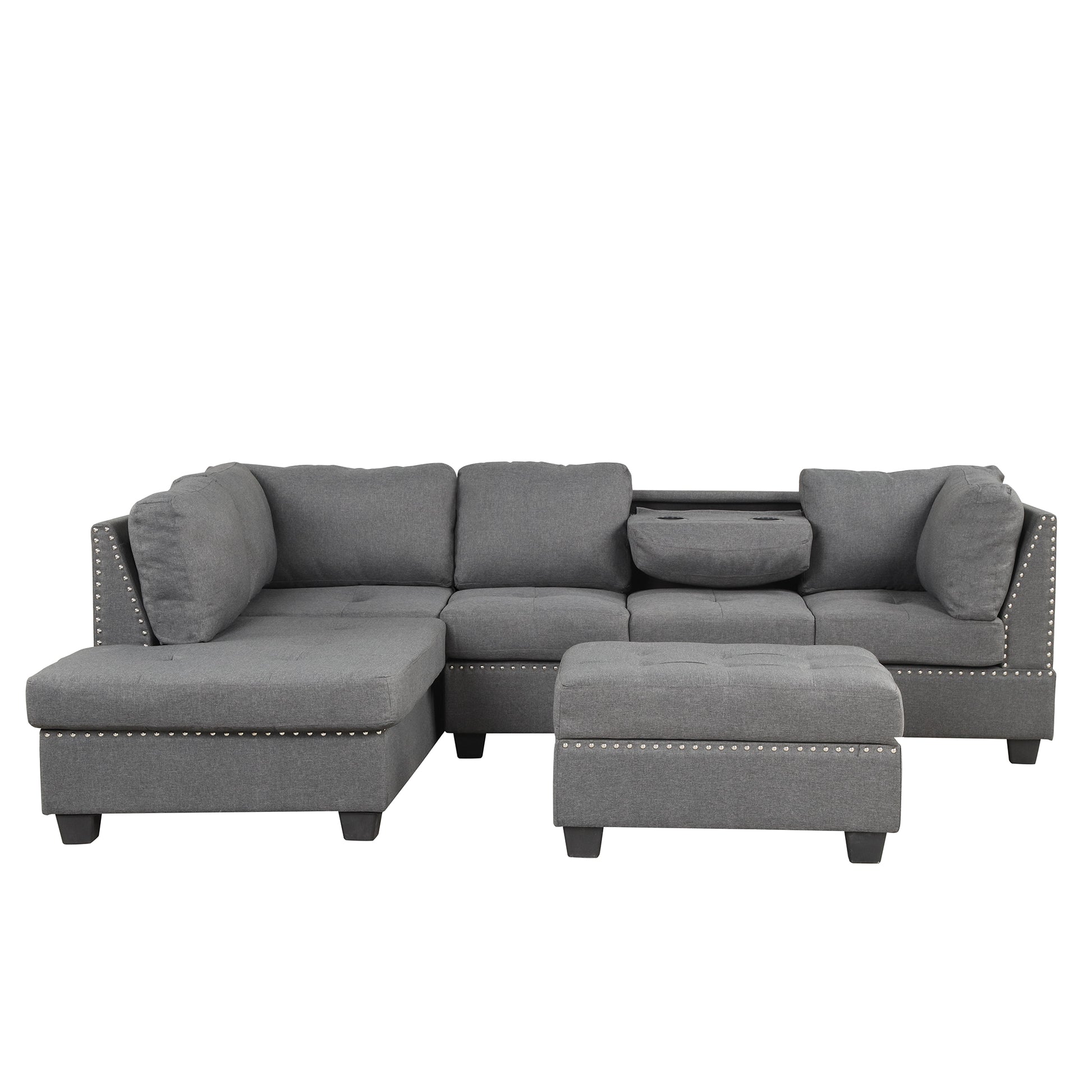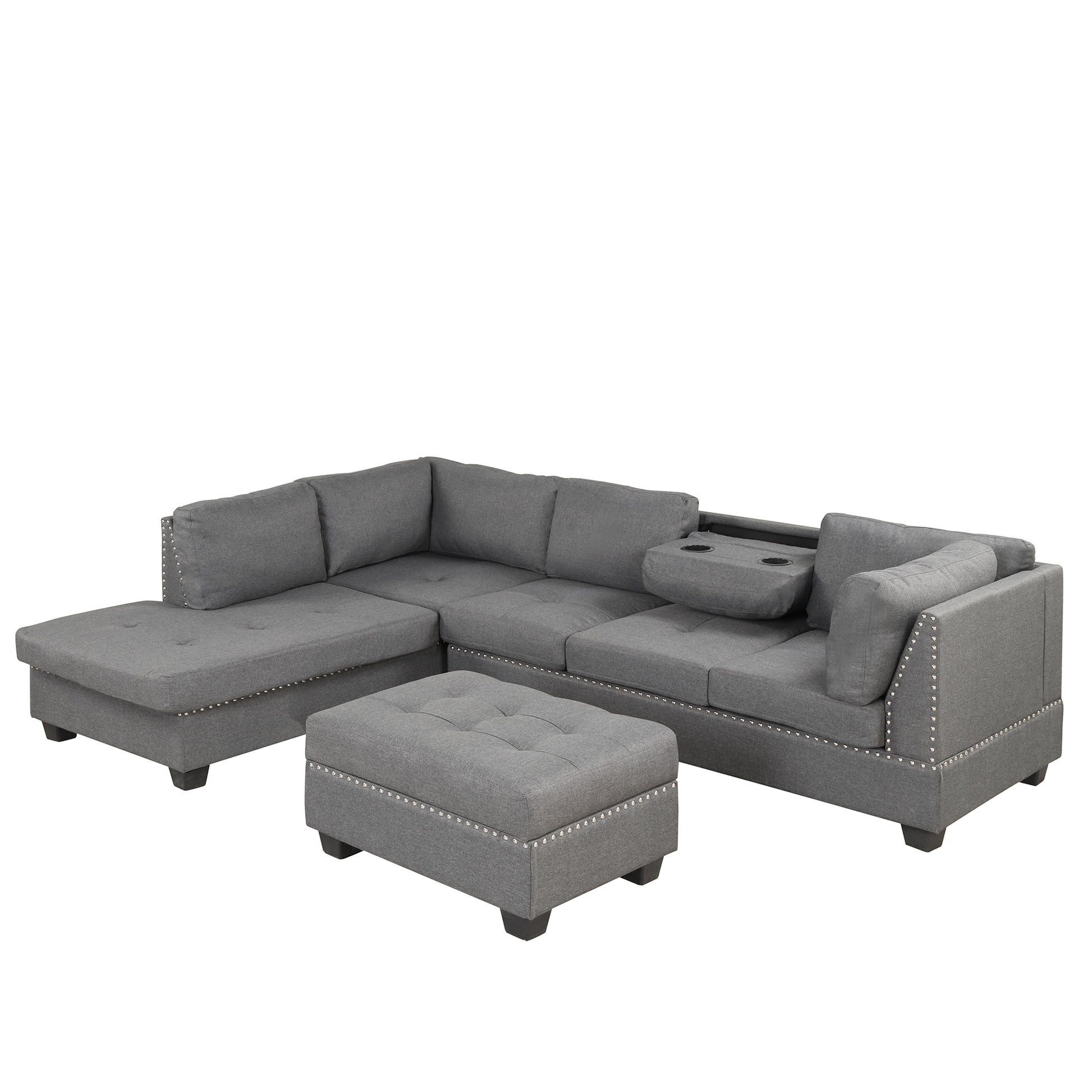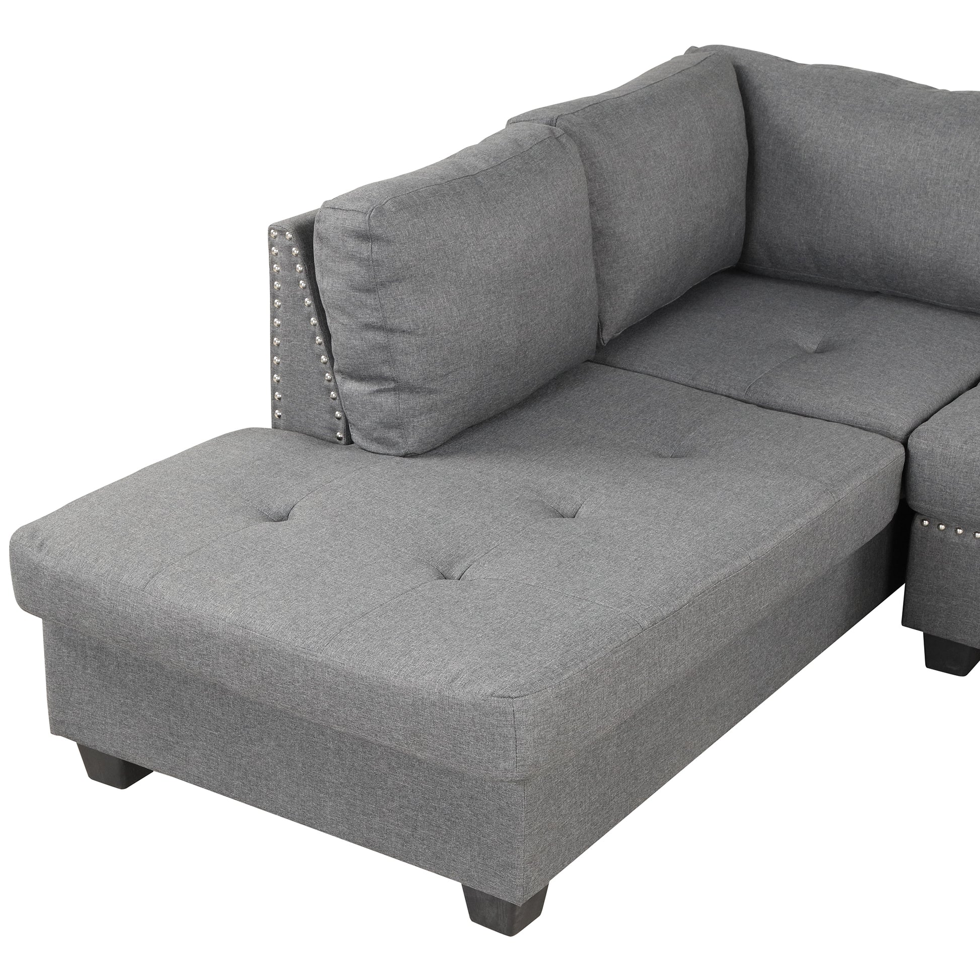 104.5" Reversible Sectional Sofa Space Saving With Storage Ottoman Rivet Ornament L Shape Couch For Small Or Large Space Dorm Apartment,Gray Old Sg000405Aaa Gray Foam Linen