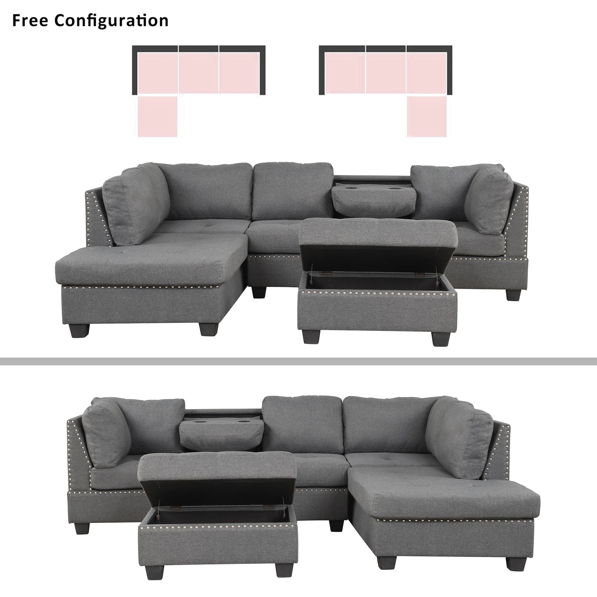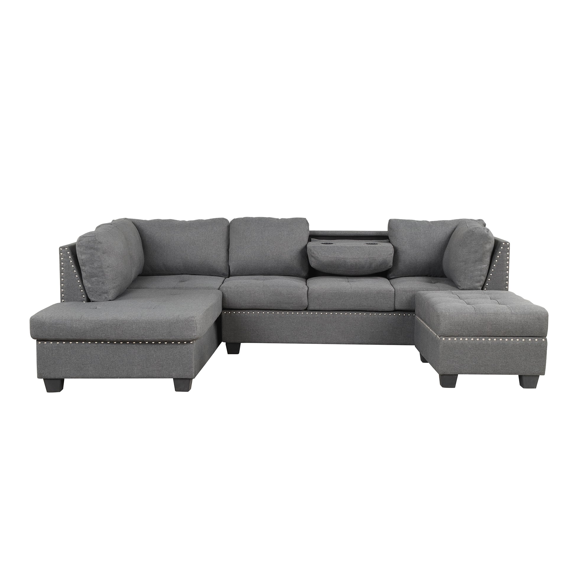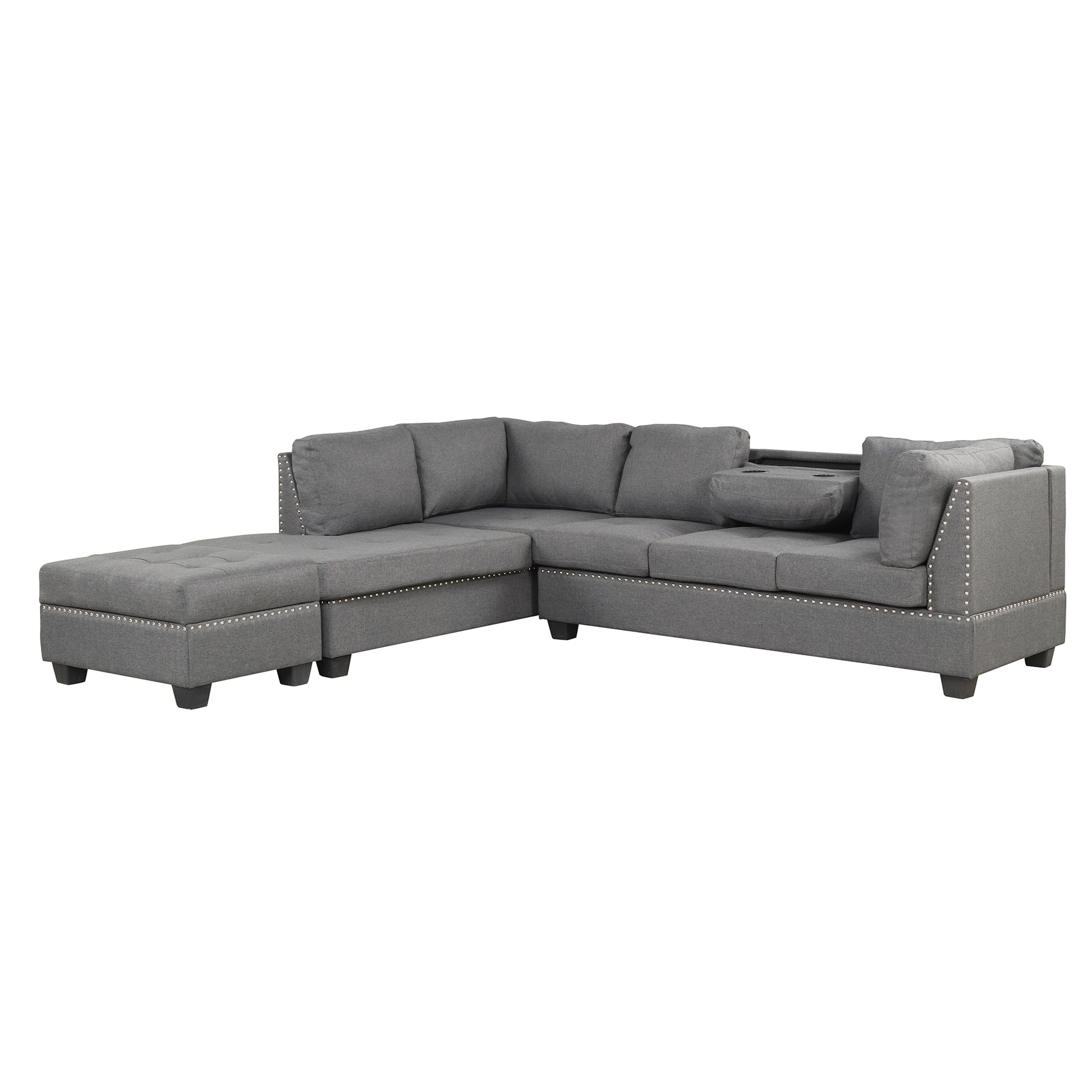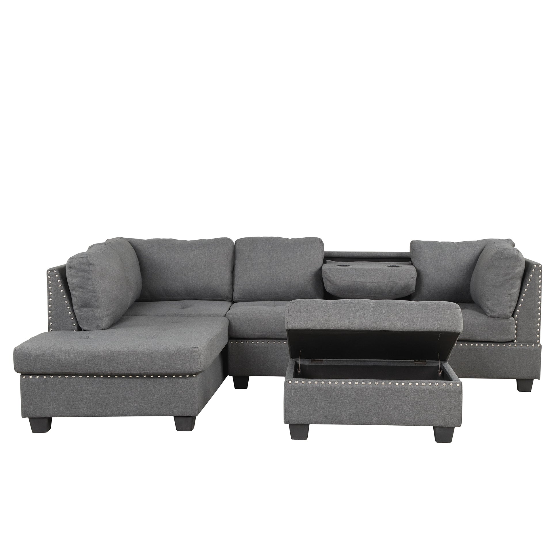 104.5" Reversible Sectional Sofa Space Saving With Storage Ottoman Rivet Ornament L Shape Couch For Small Or Large Space Dorm Apartment,Gray Old Sg000405Aaa Gray Foam Linen