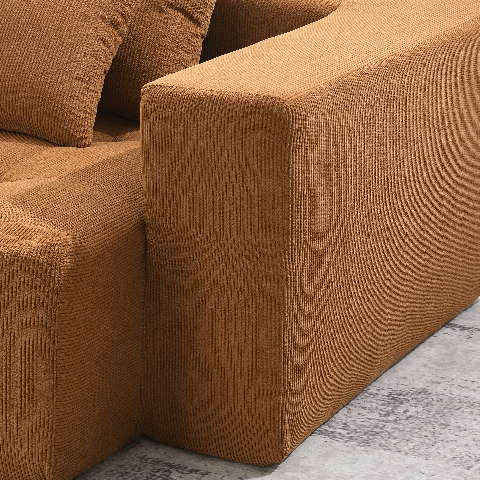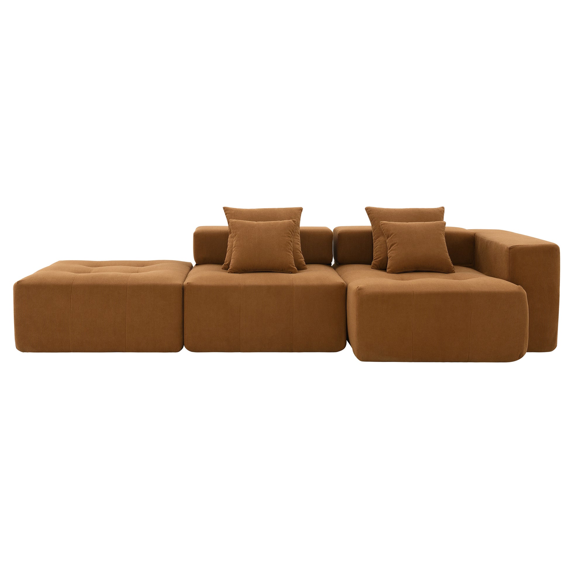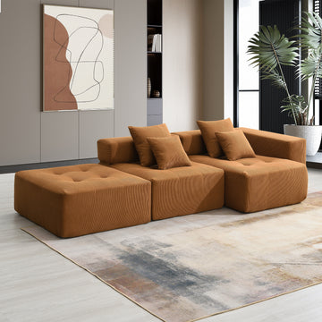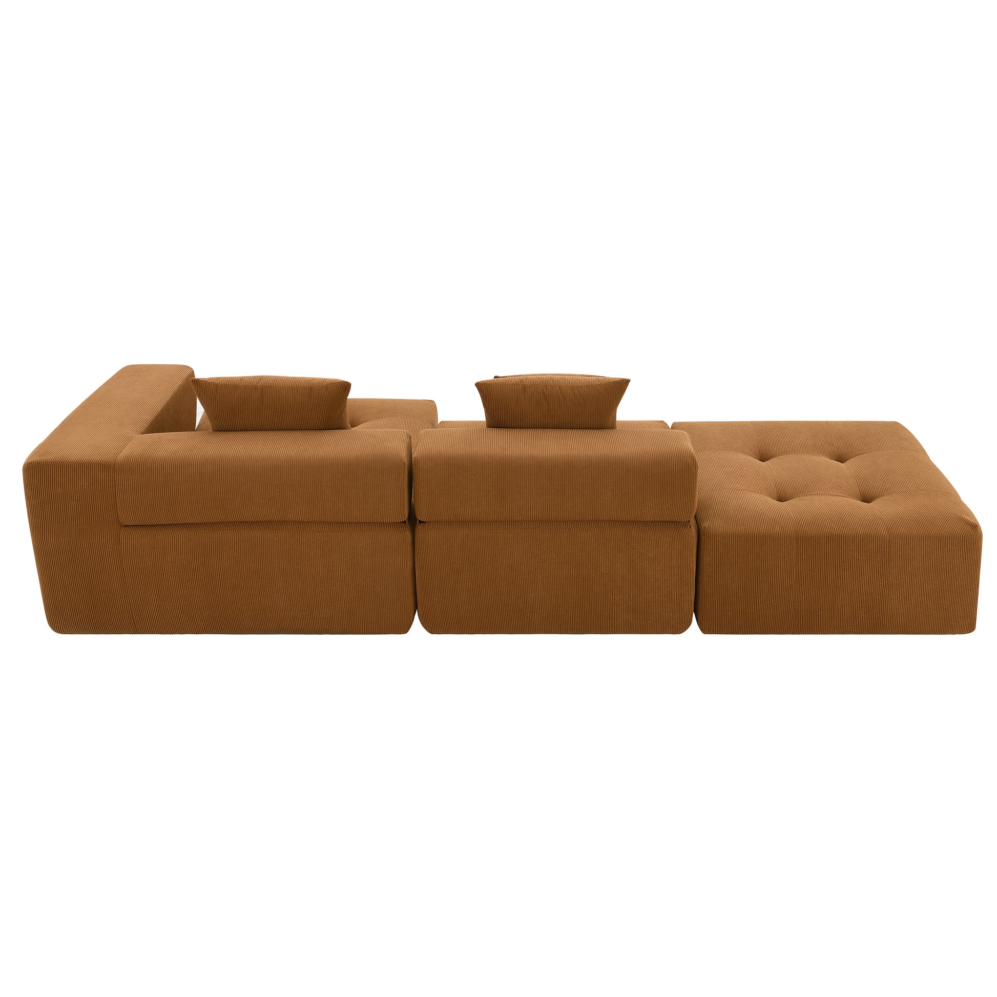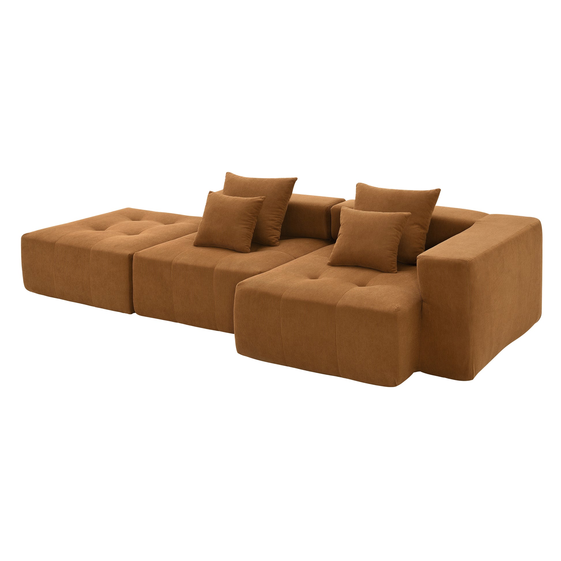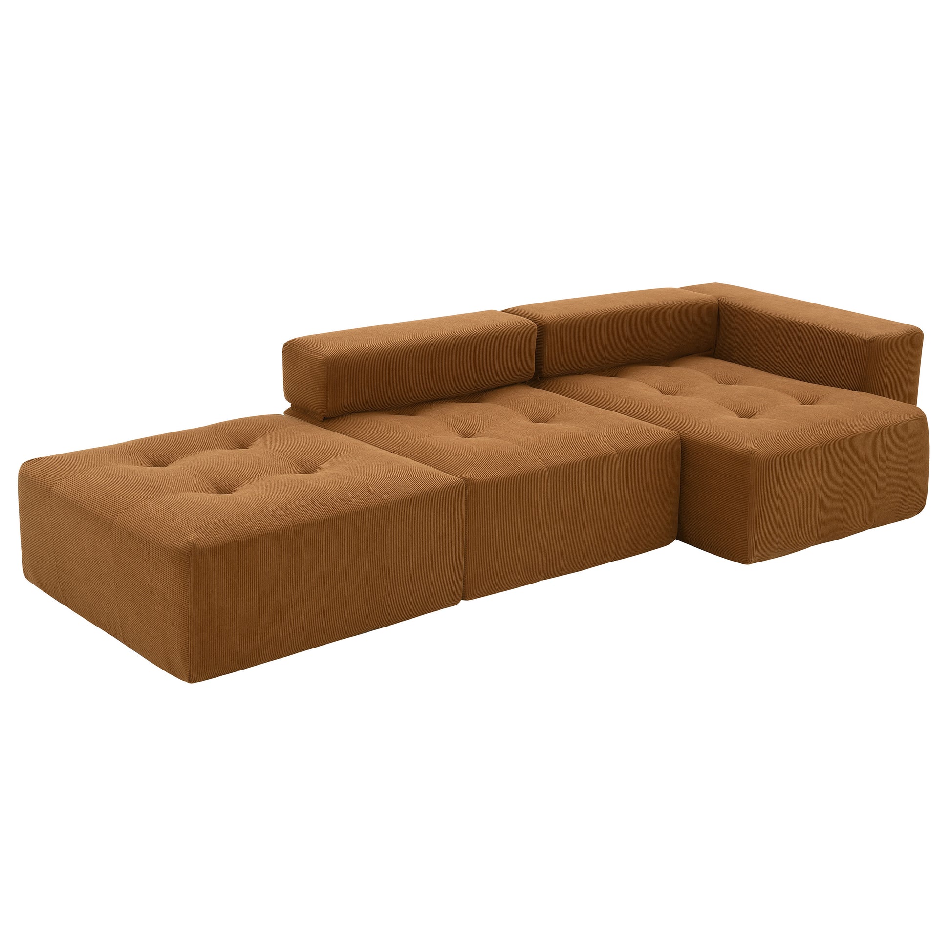 105.5'' L Shaped Modular Sectional Sofa,Minimalist Corduroy Floor Couch Set,Convertible Foam Filled Cloud Couch For Living Room,3 Pc Free Combination,No Assembly Required,3 Colors Brown Corduroy 4 Seat