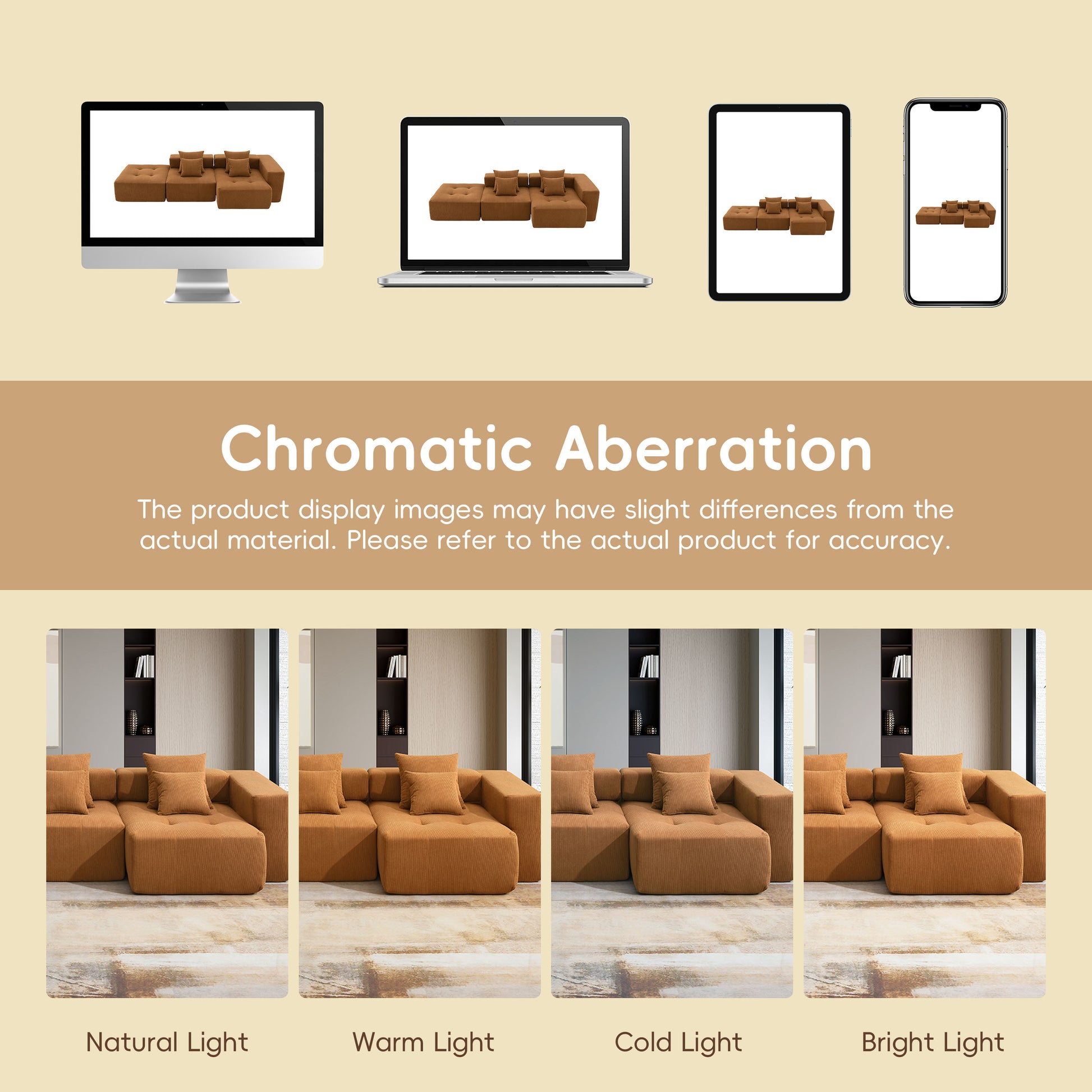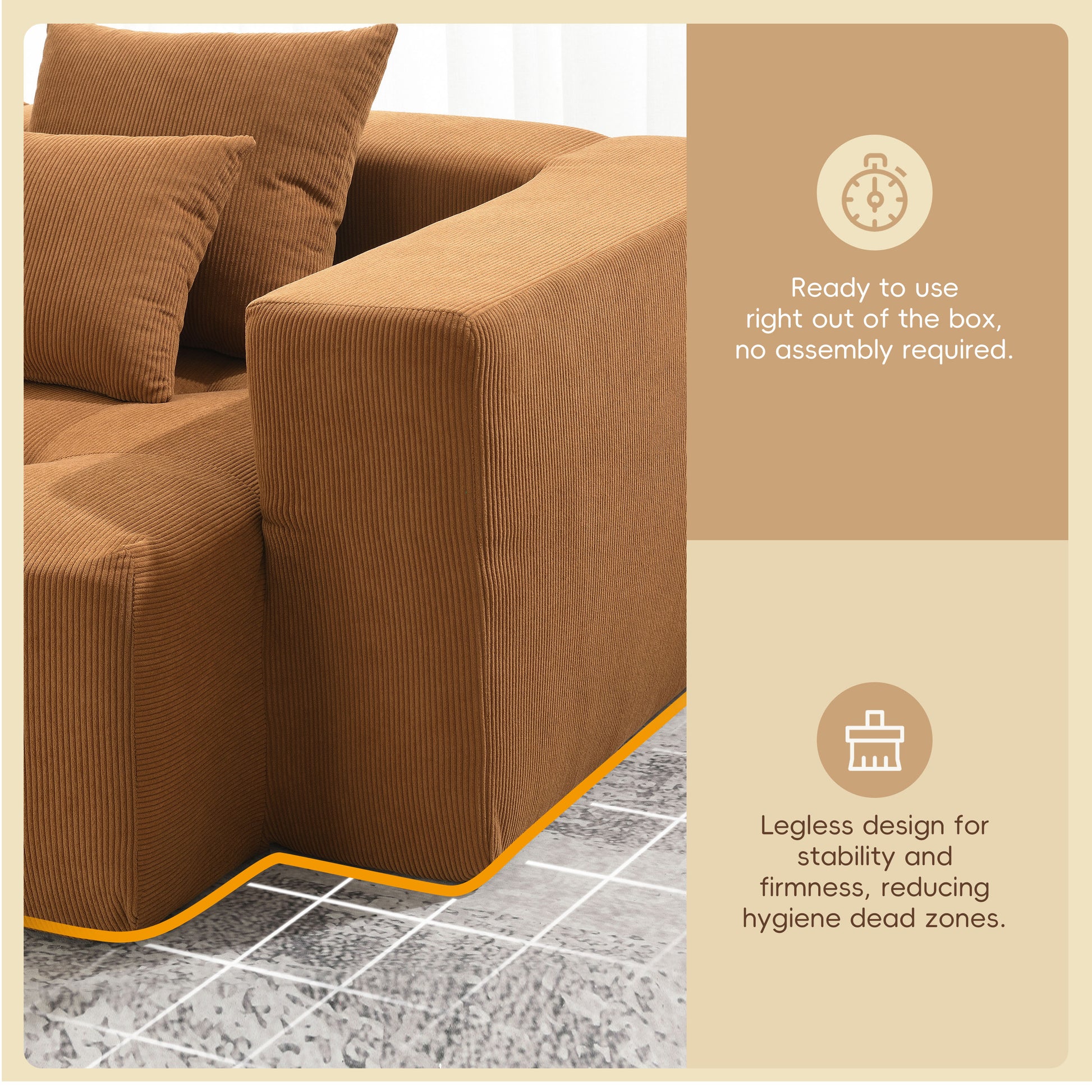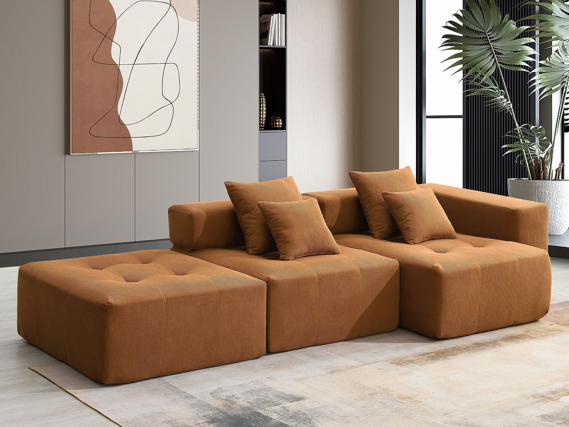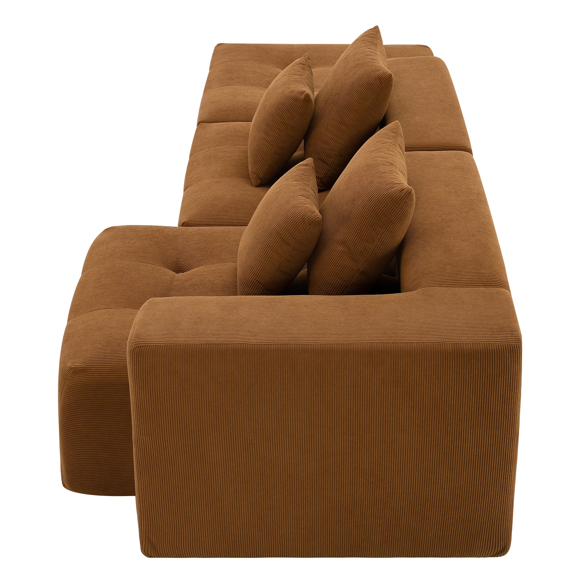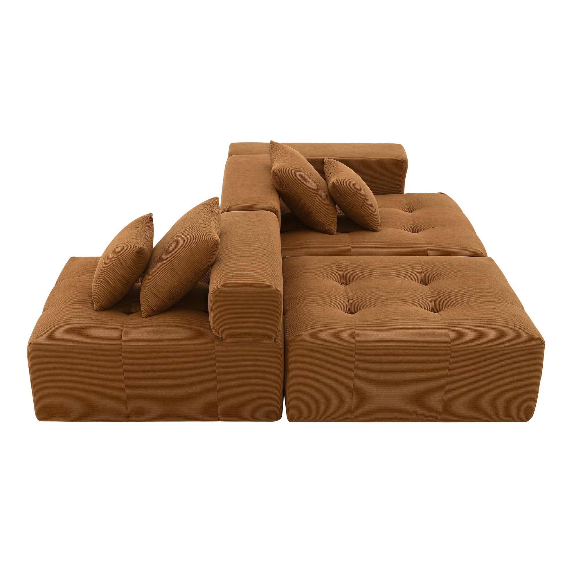 105.5'' L Shaped Modular Sectional Sofa,Minimalist Corduroy Floor Couch Set,Convertible Foam Filled Cloud Couch For Living Room,3 Pc Free Combination,No Assembly Required,3 Colors Brown Corduroy 4 Seat