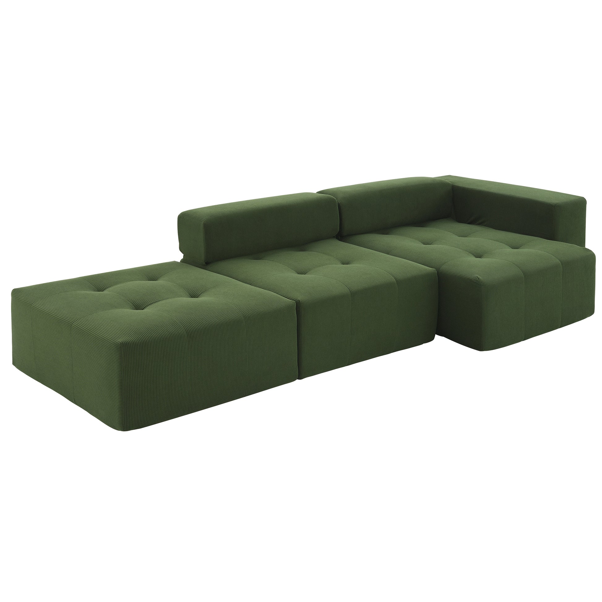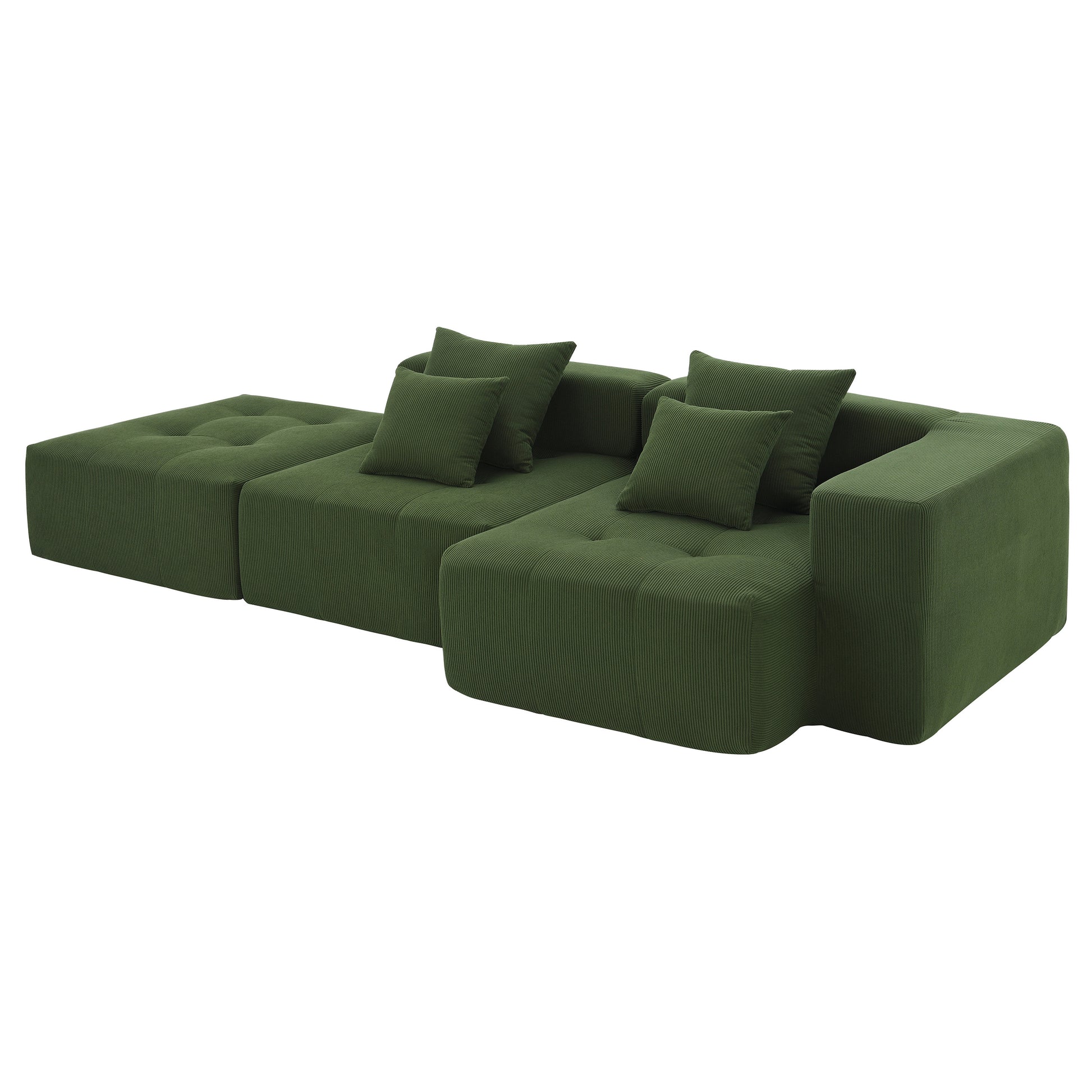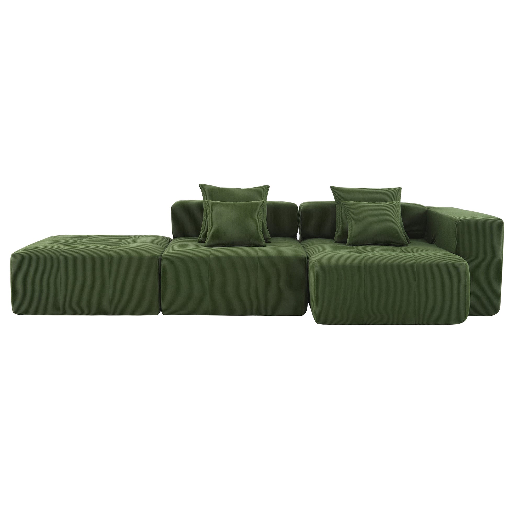 105.5'' L Shaped Modular Sectional Sofa,Minimalist Corduroy Floor Couch Set,Convertible Foam Filled Cloud Couch For Living Room,3 Pc Free Combination,No Assembly Required,3 Colors Green Corduroy 4 Seat