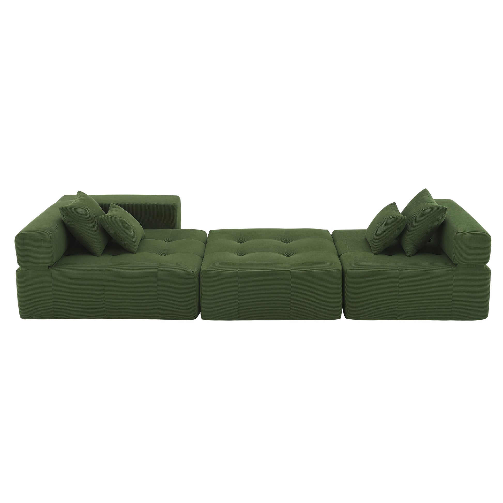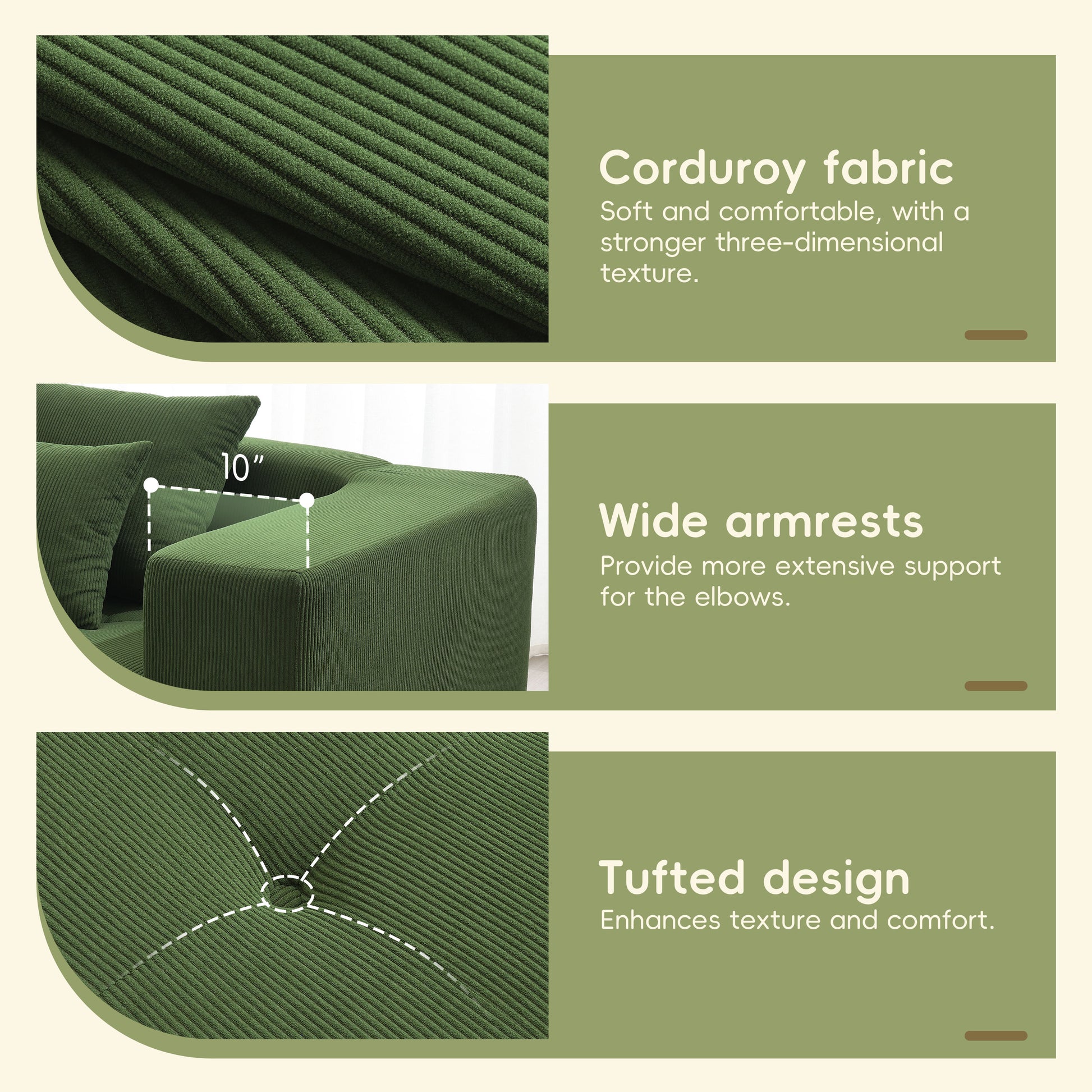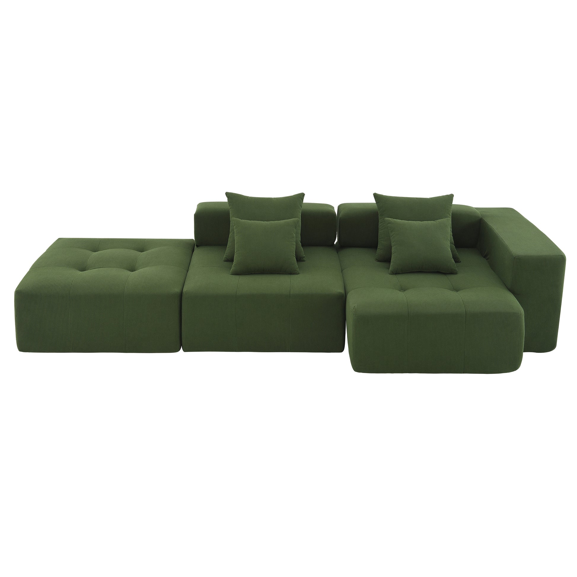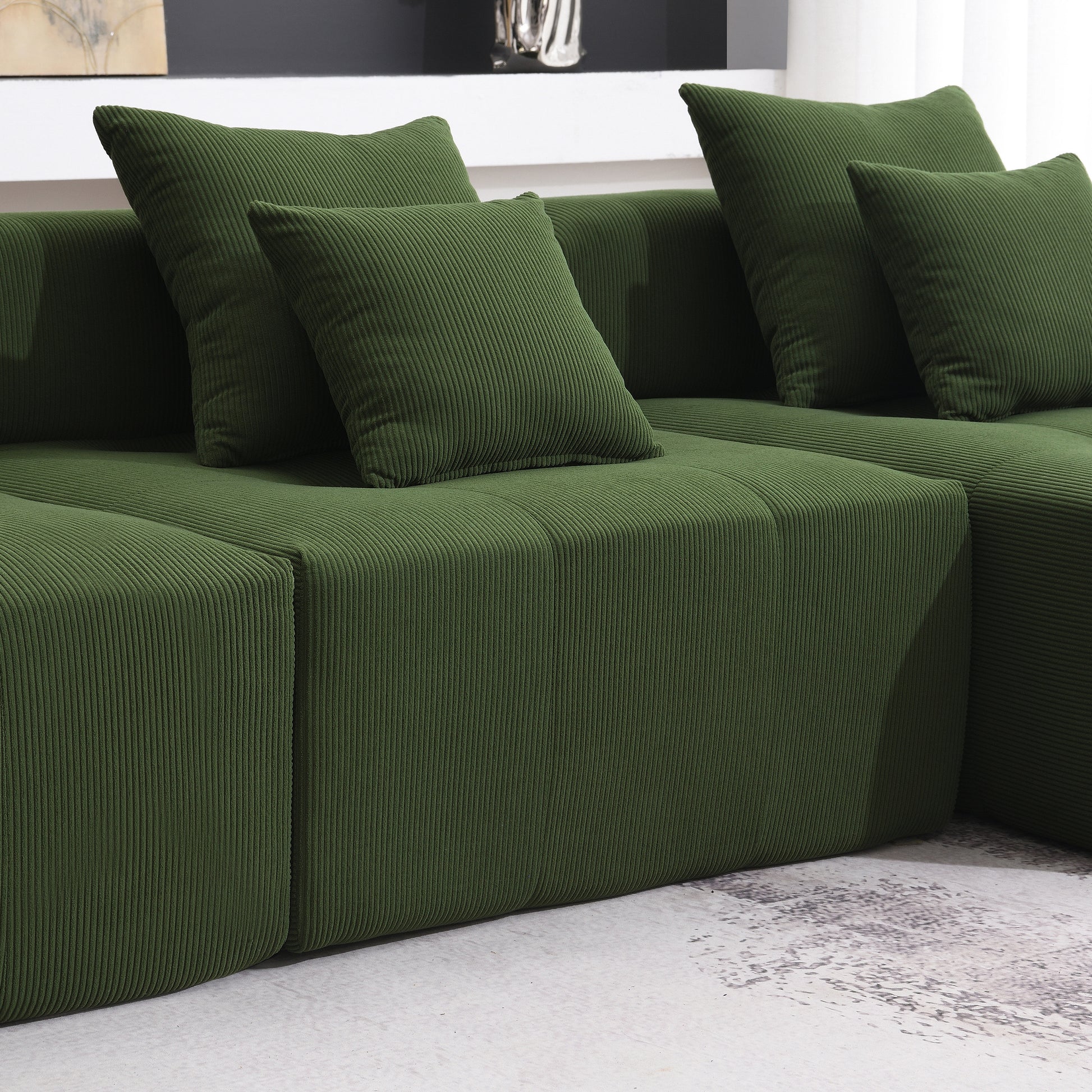 105.5'' L Shaped Modular Sectional Sofa,Minimalist Corduroy Floor Couch Set,Convertible Foam Filled Cloud Couch For Living Room,3 Pc Free Combination,No Assembly Required,3 Colors Green Corduroy 4 Seat
