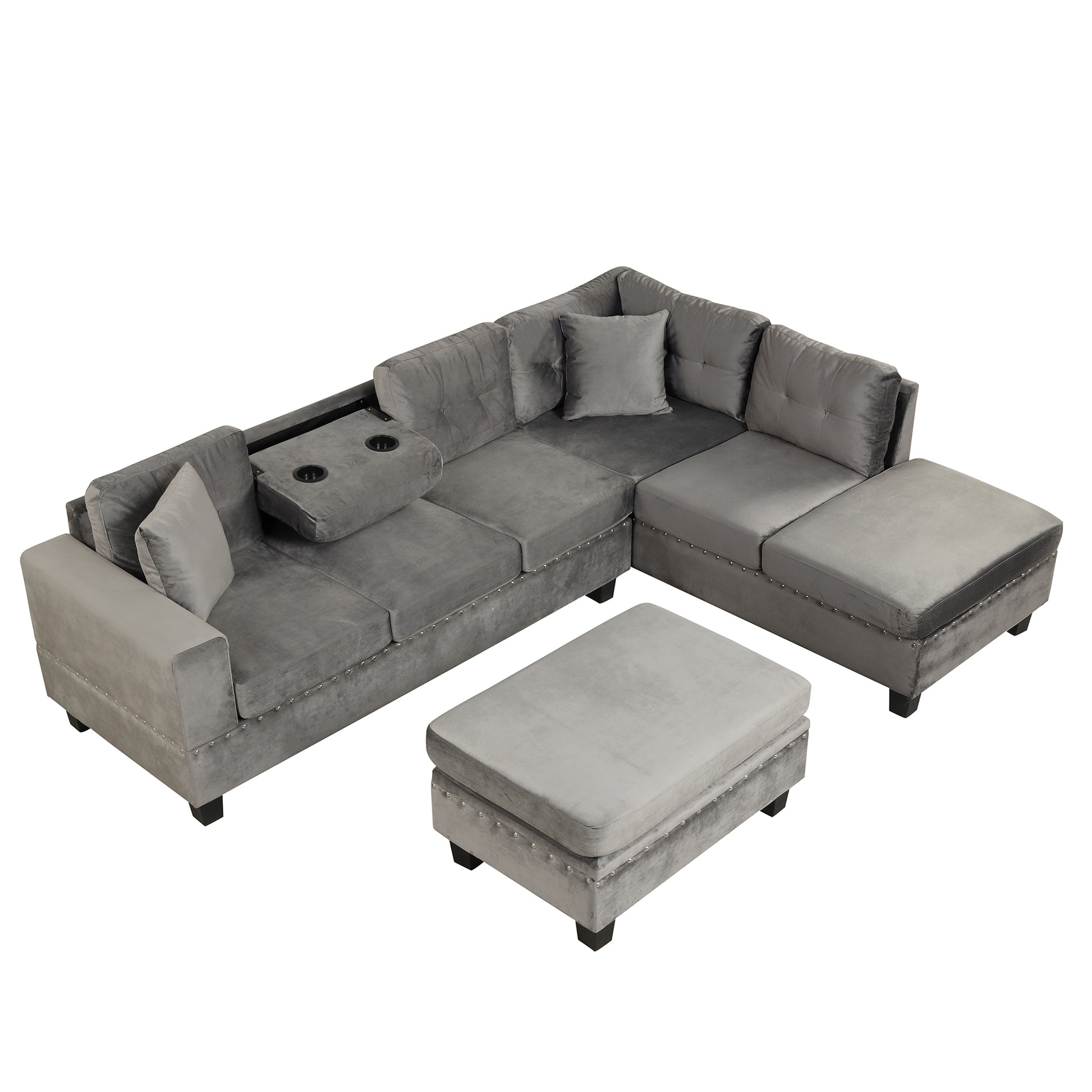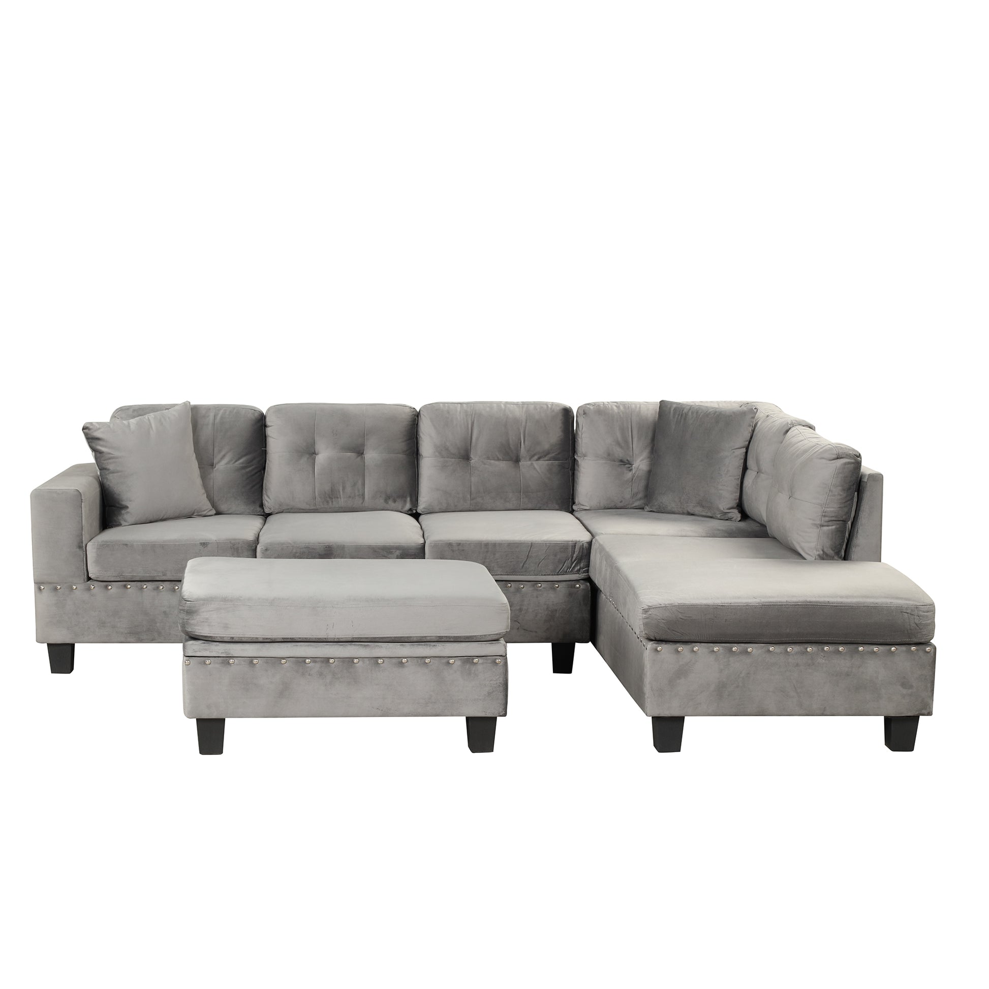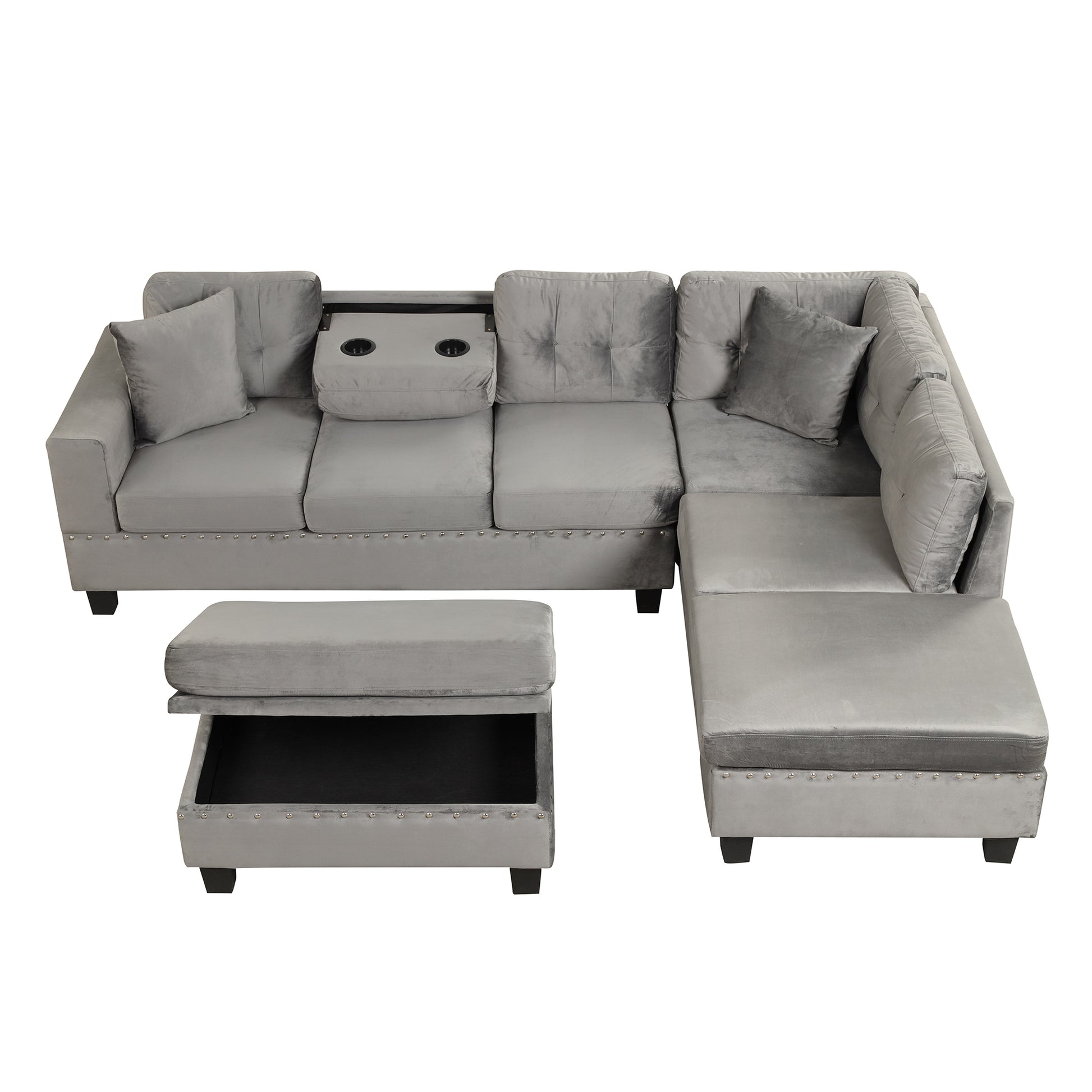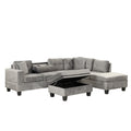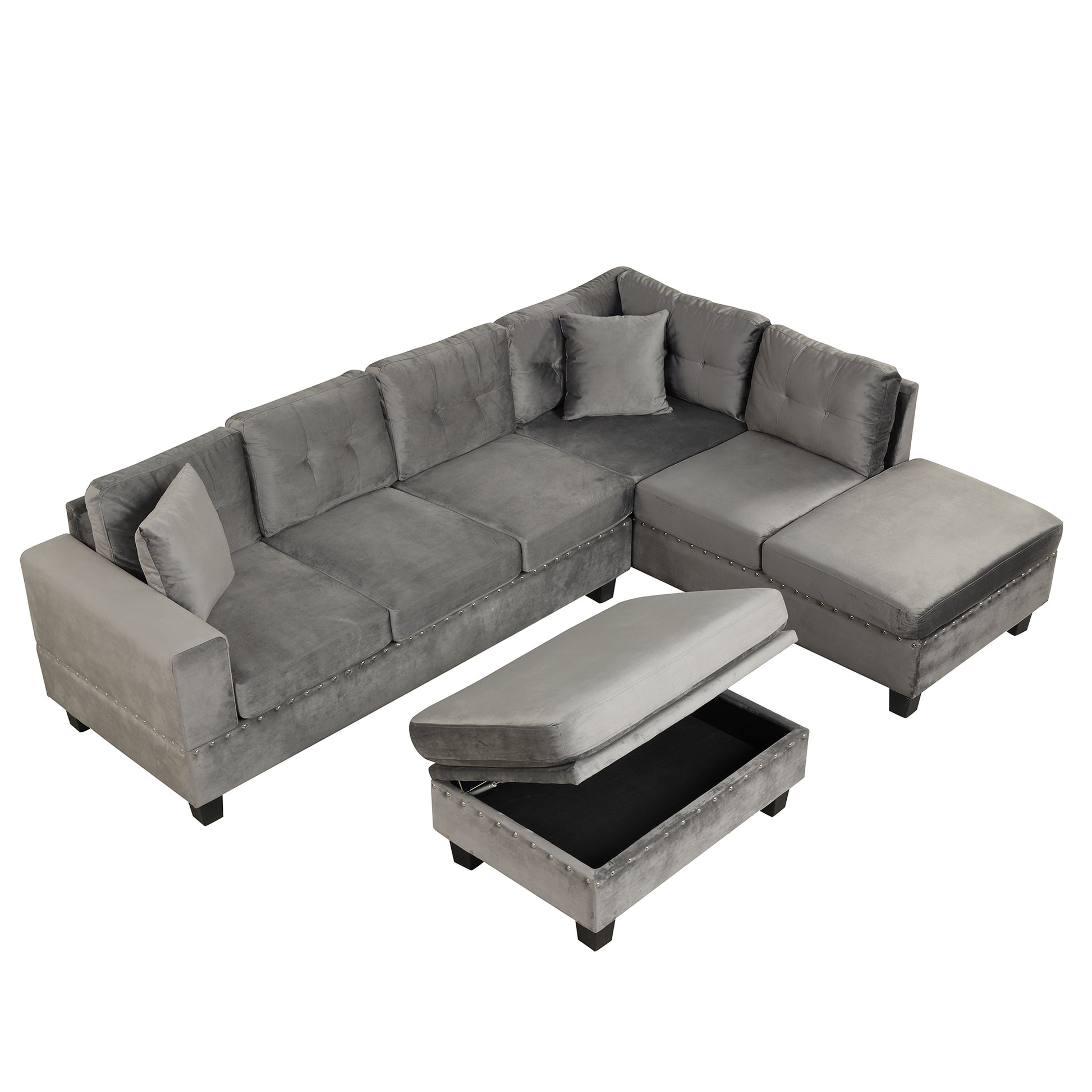 105" Modern Sectional Sofa With Storage Ottoman, L Shape Couch With 2 Pillows And Cup Holder,Sectional Sofa With Reversible Chaise For Living Room,Gray Gray Foam Velvet 6 Seat