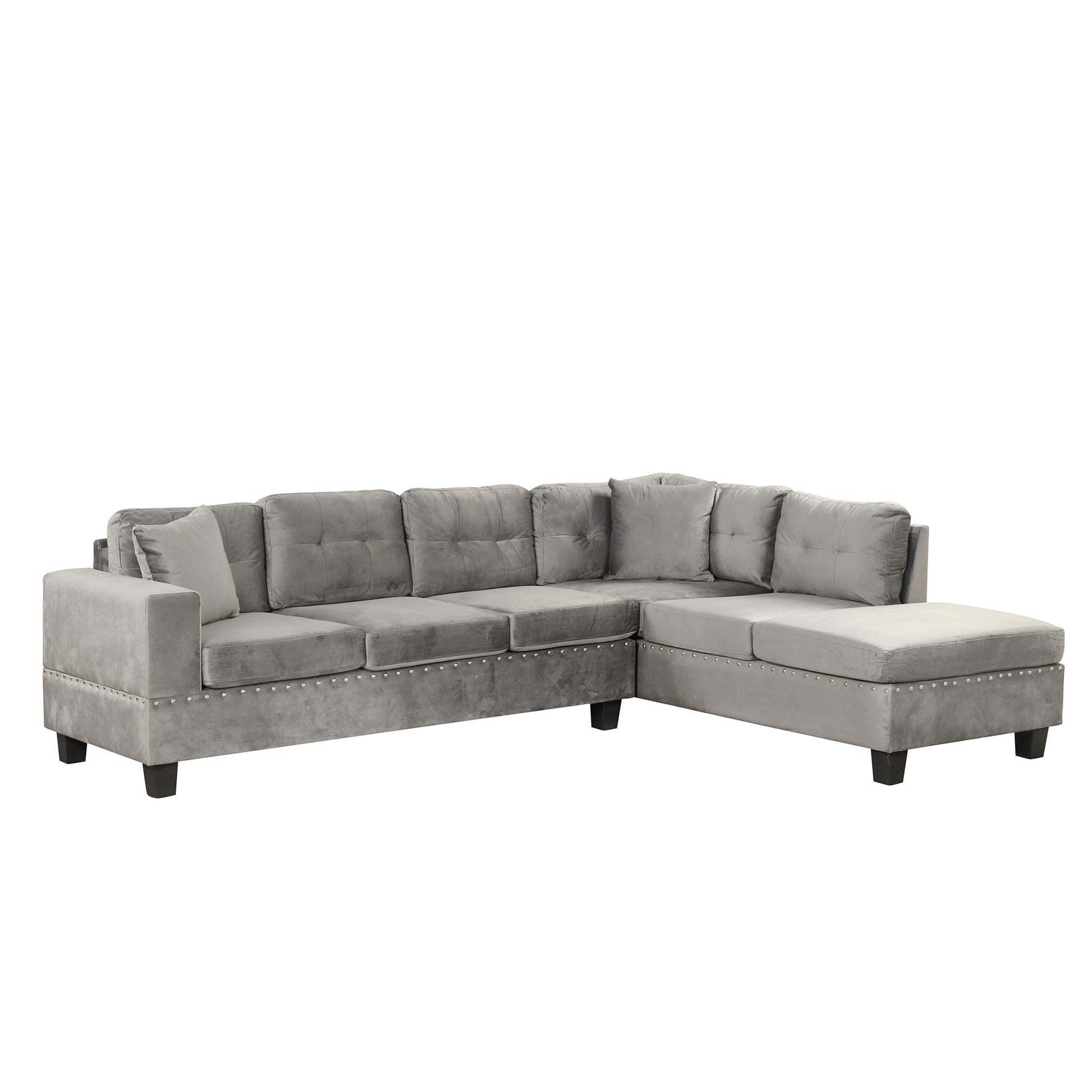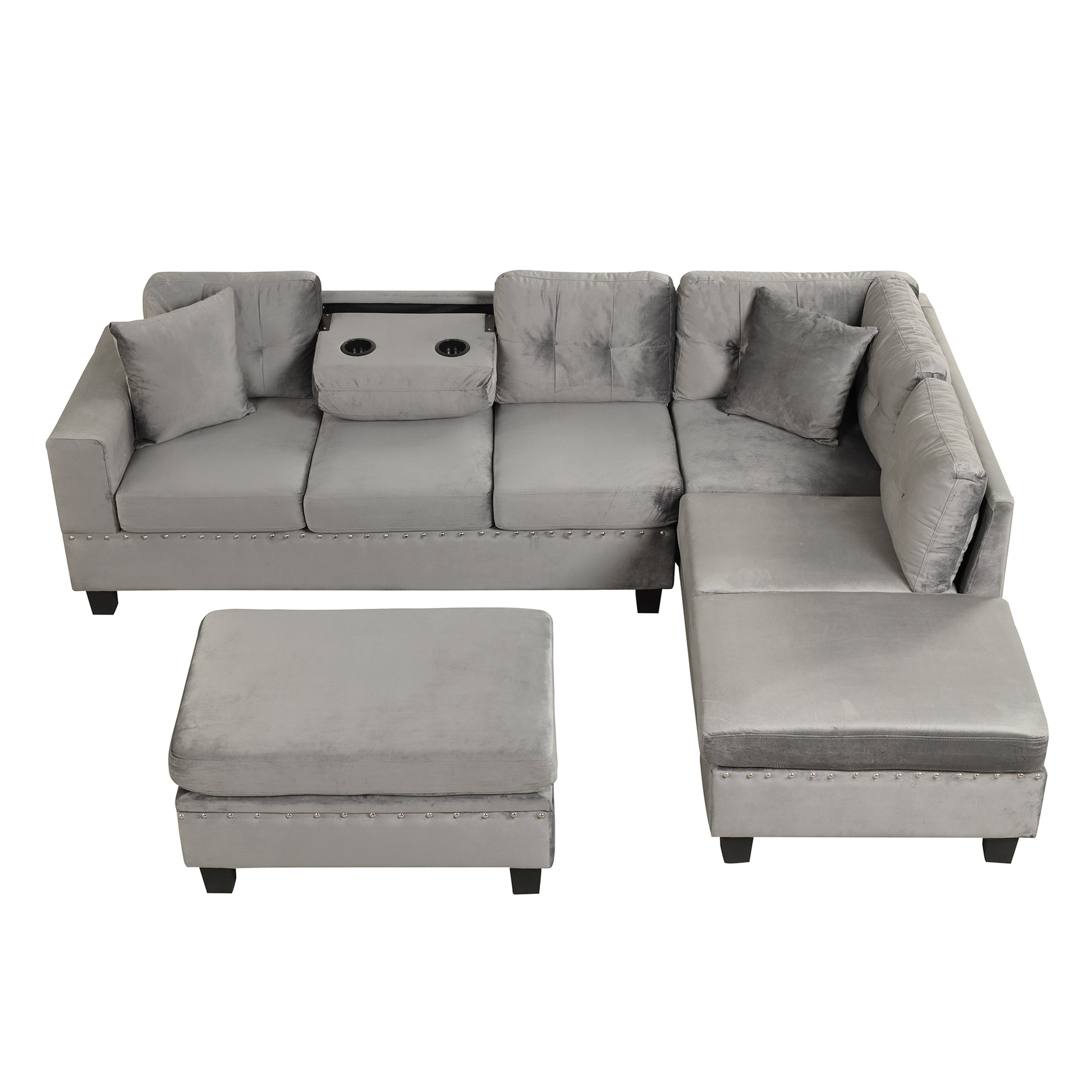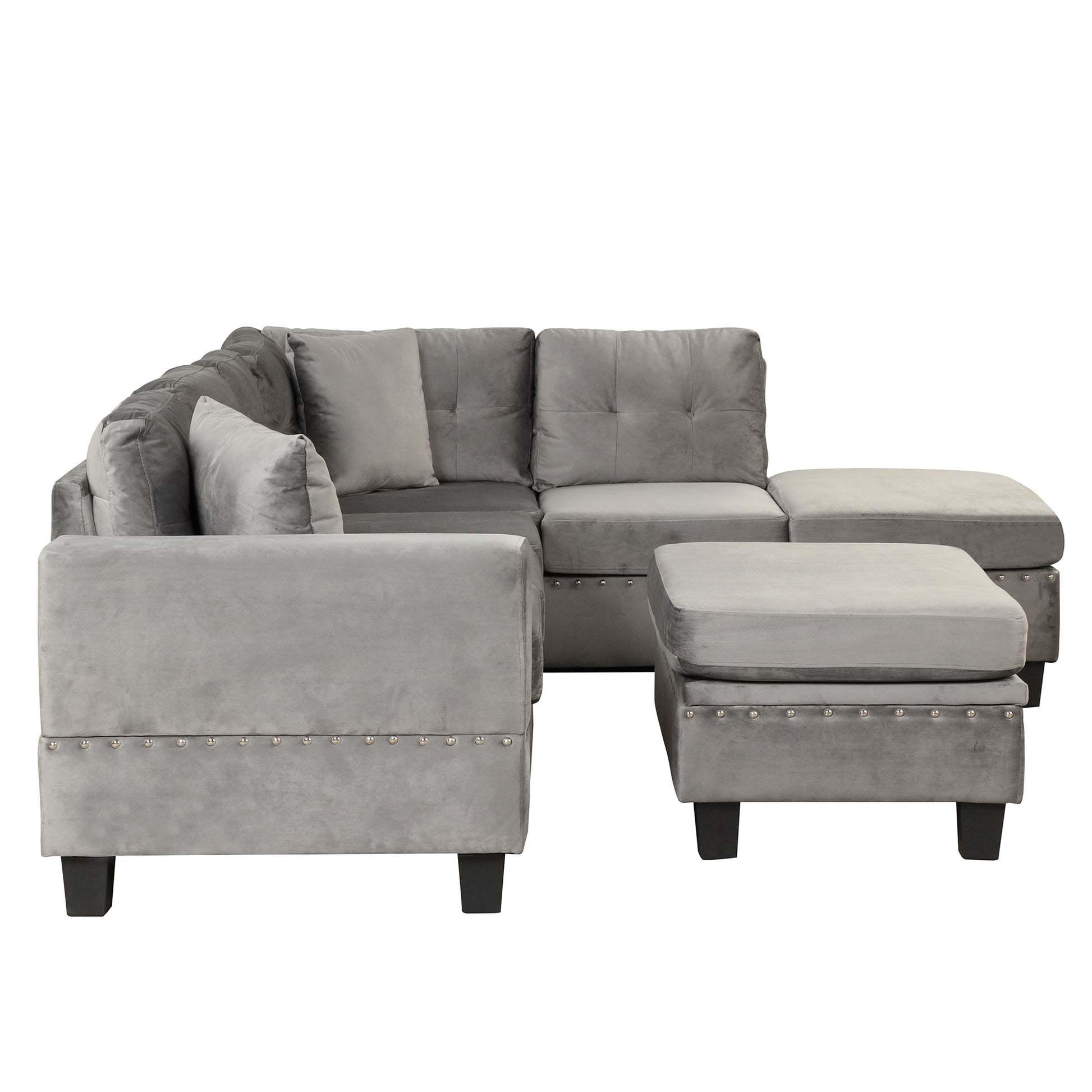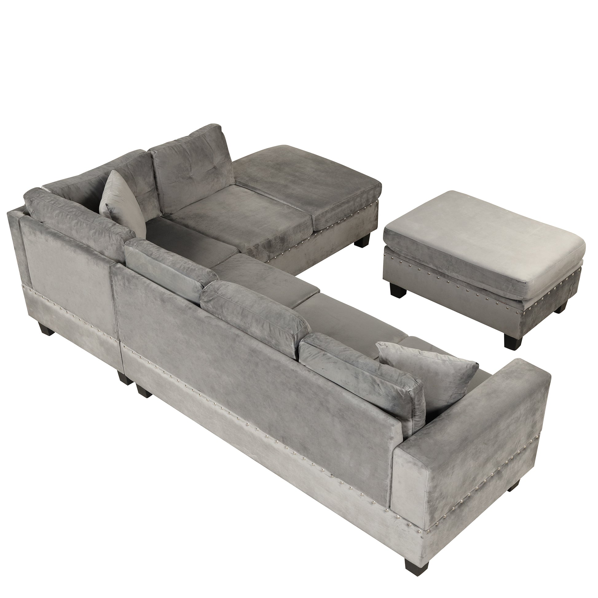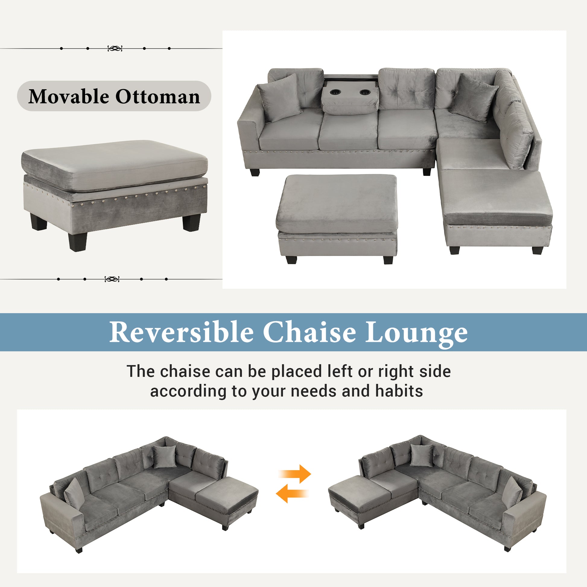 105" Modern Sectional Sofa With Storage Ottoman, L Shape Couch With 2 Pillows And Cup Holder,Sectional Sofa With Reversible Chaise For Living Room,Gray Gray Foam Velvet 6 Seat