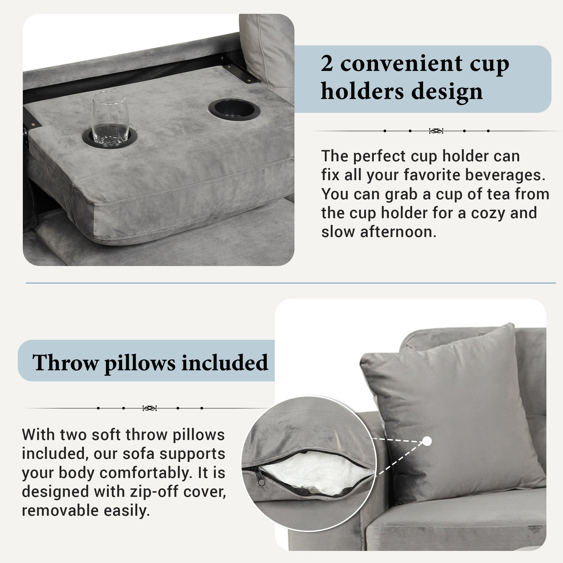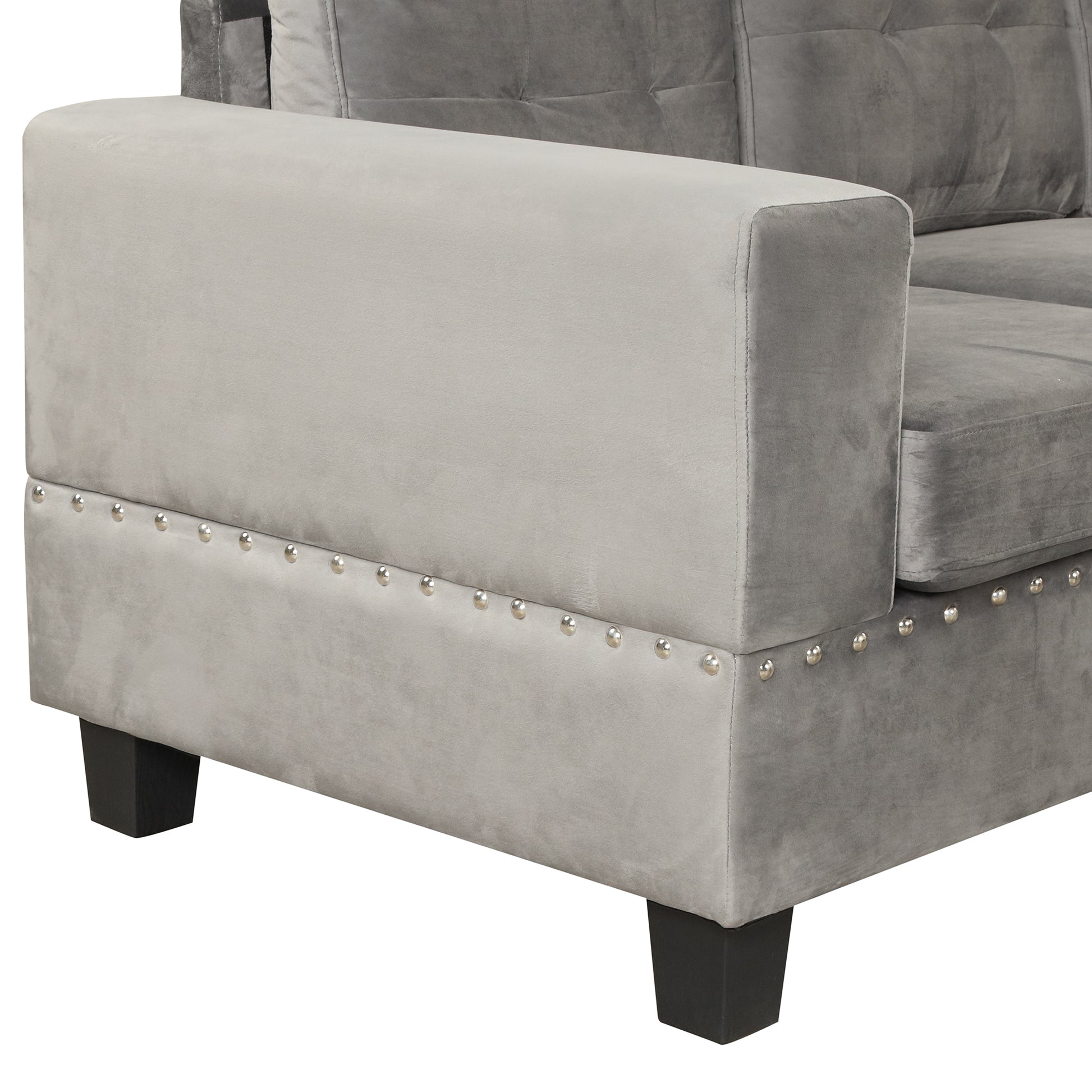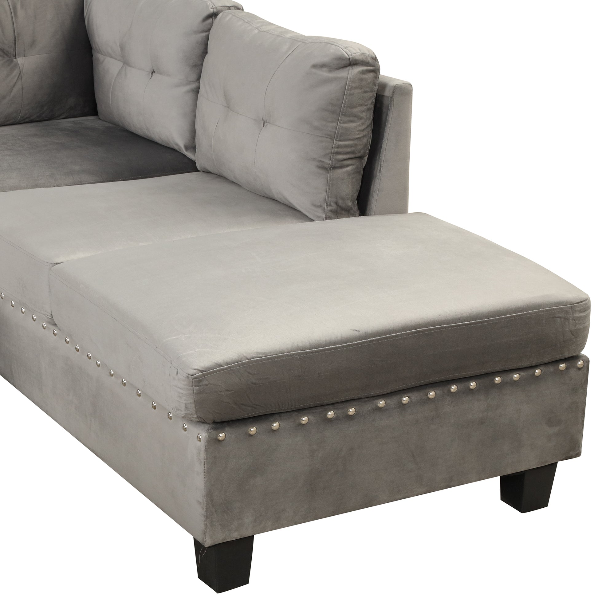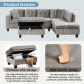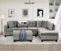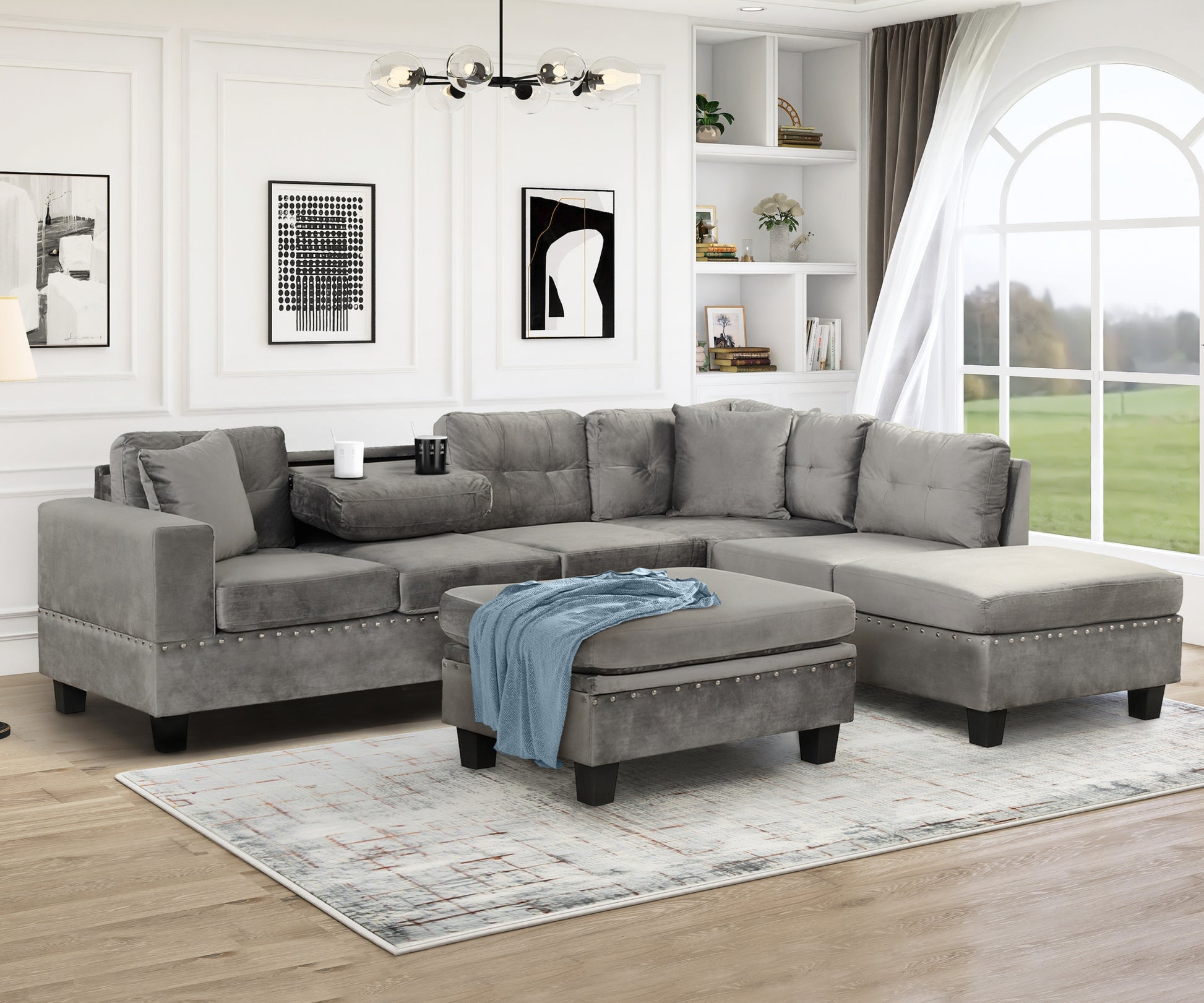 105" Modern Sectional Sofa With Storage Ottoman, L Shape Couch With 2 Pillows And Cup Holder,Sectional Sofa With Reversible Chaise For Living Room,Gray Gray Foam Velvet 6 Seat
