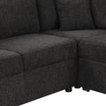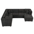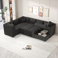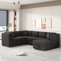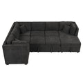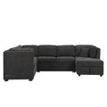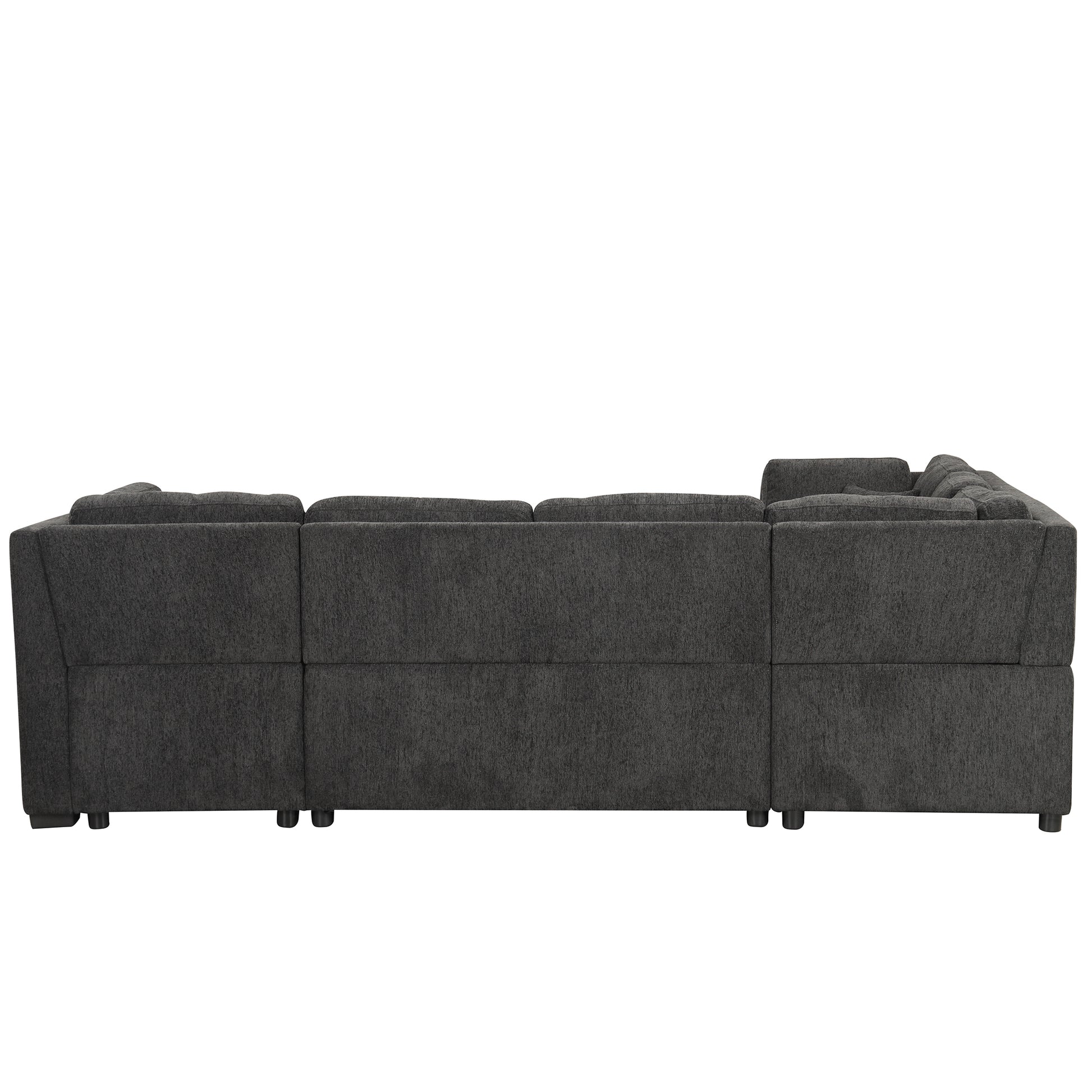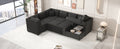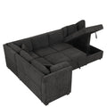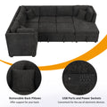 108.6" U Shaped Sectional Sofa Pull Out Sofa Bed With Two Usb Ports, Two Power Sockets, Three Back Pillows And A Storage Chaise For Living Room, Black Black Foam Chenille 5 Seat