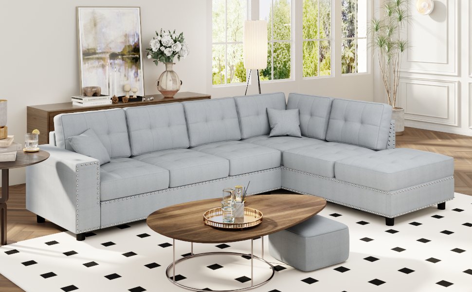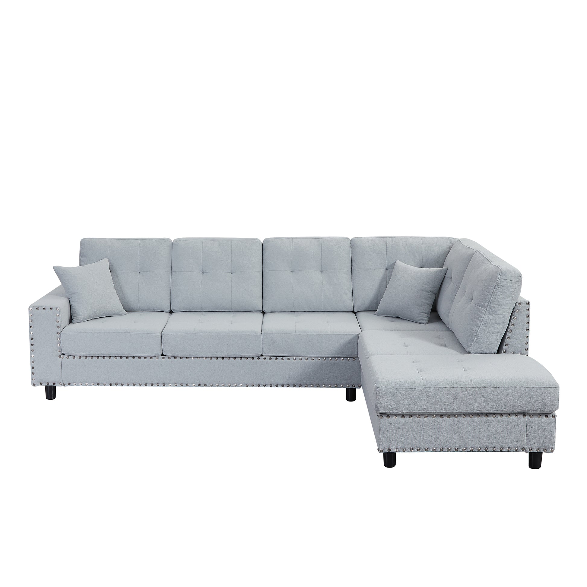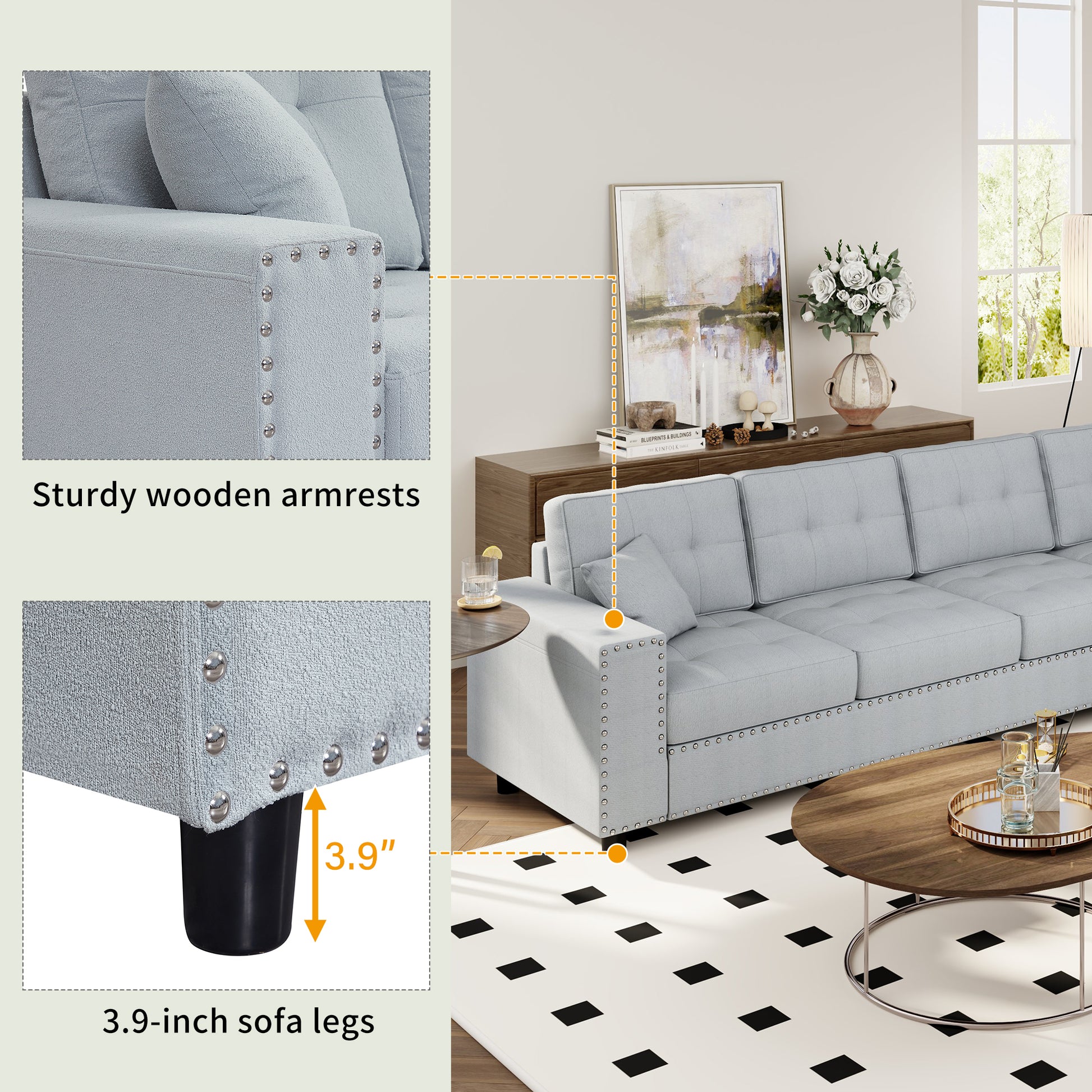 109.2''L Shaped Modular Sectional Sofa With Removable Back Cushions And 2 Pillows, Suitable For Living Rooms, Offices, And Apartments Light Gray Polyester 5 Seat