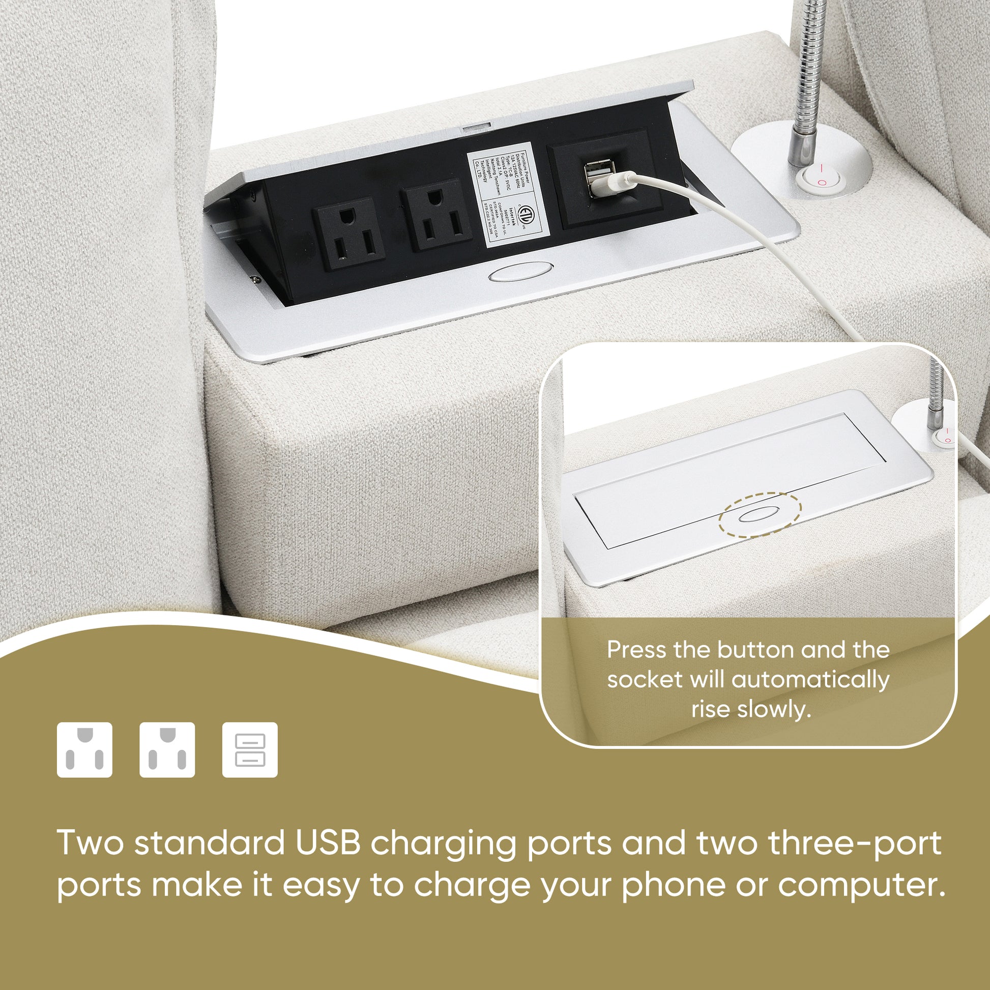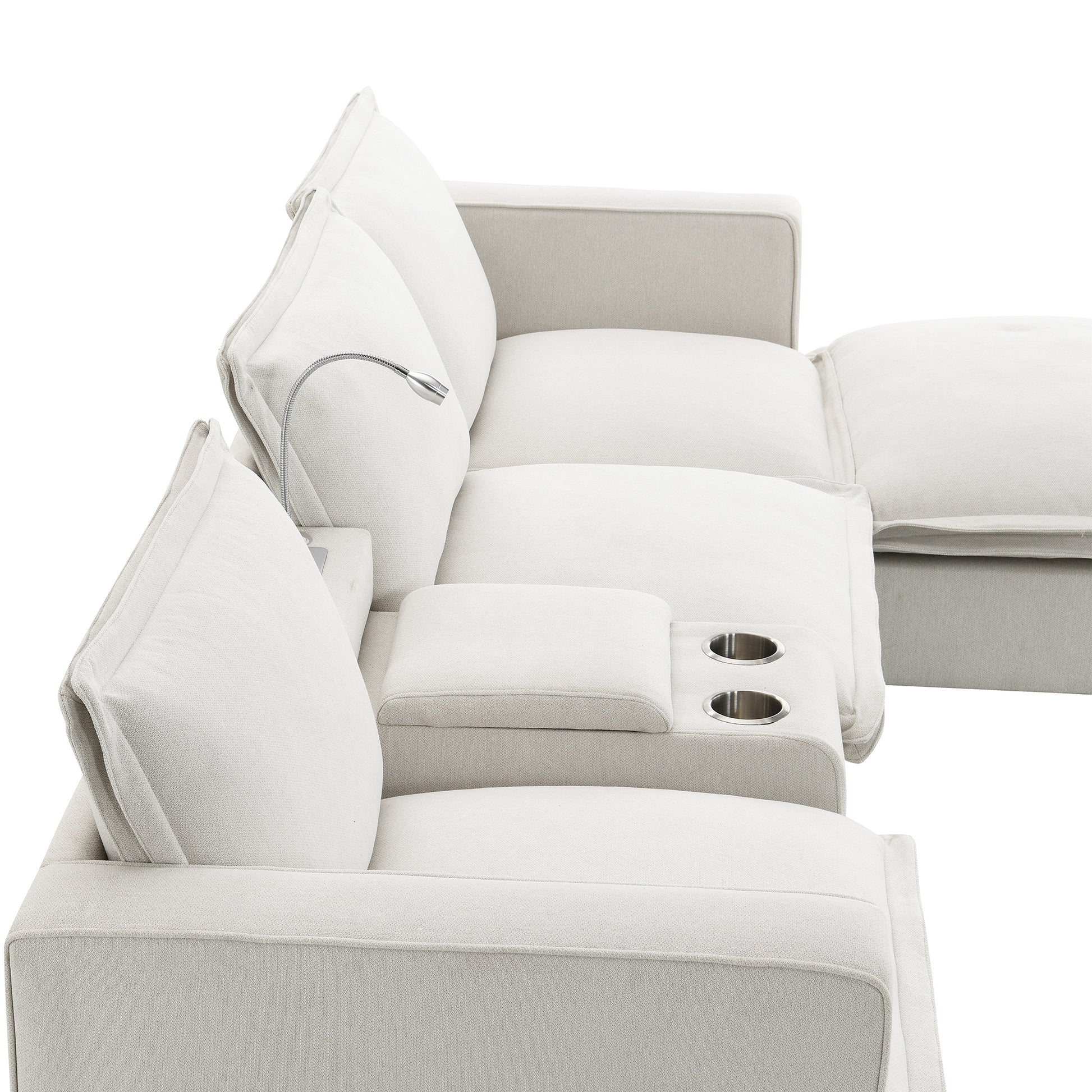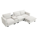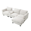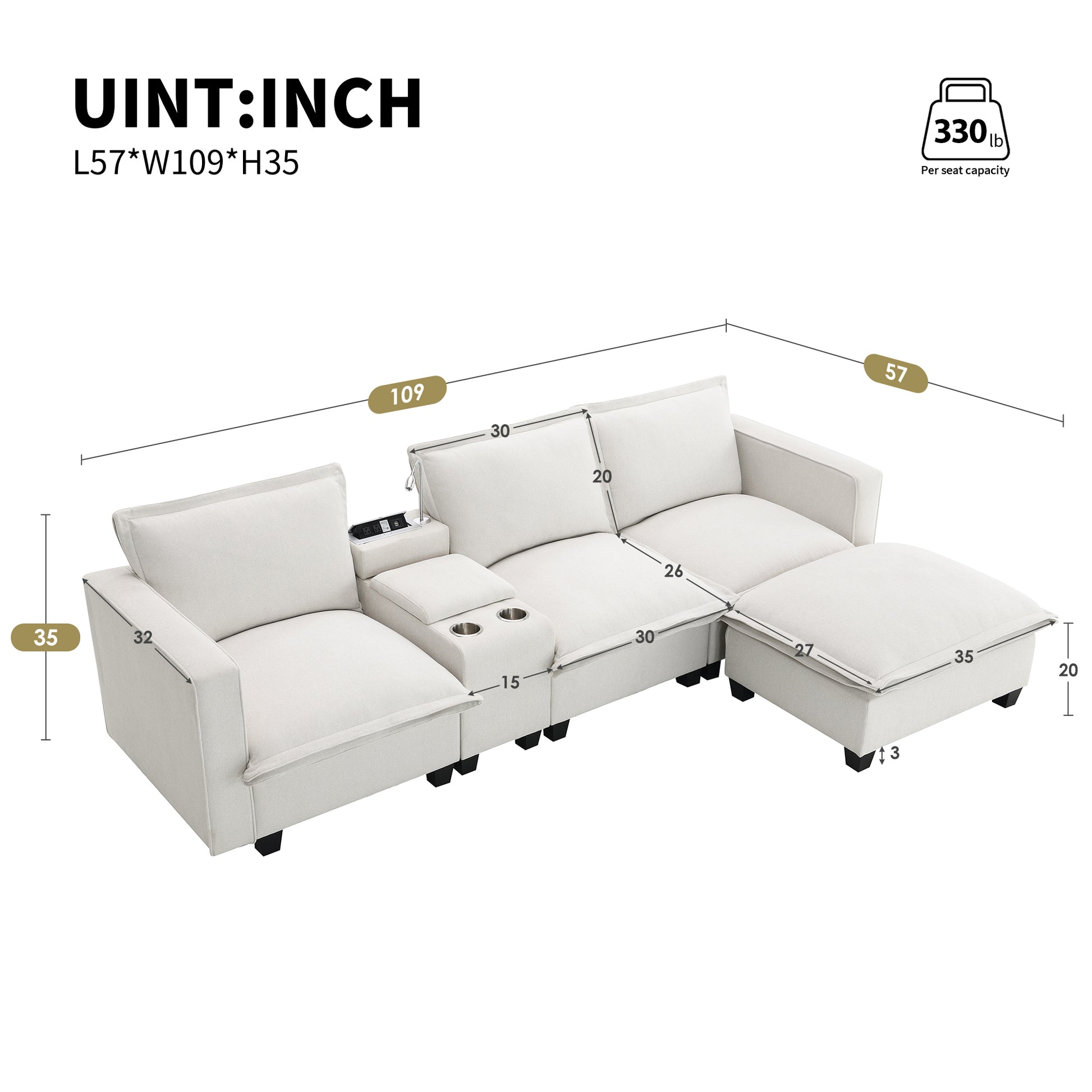 109*57"Modern Sectional Cloud Sofa With Console,Usb Charging Port,Reading Light,Cup Holder,4 Seat Chenille Modular Couch,Storable Indoor Funiture For Living Room,Apartment,2 Color Beige Chenille 4 Seat