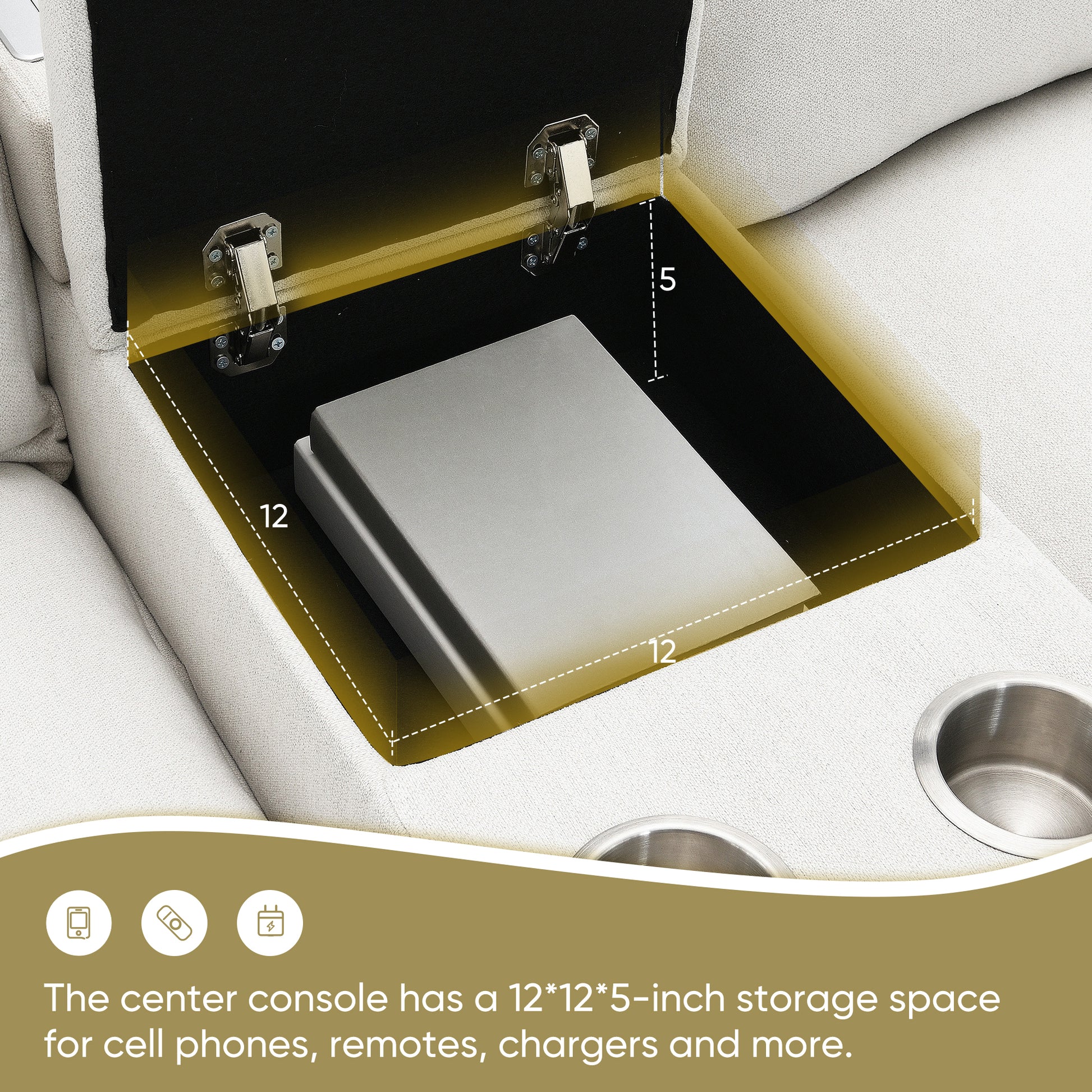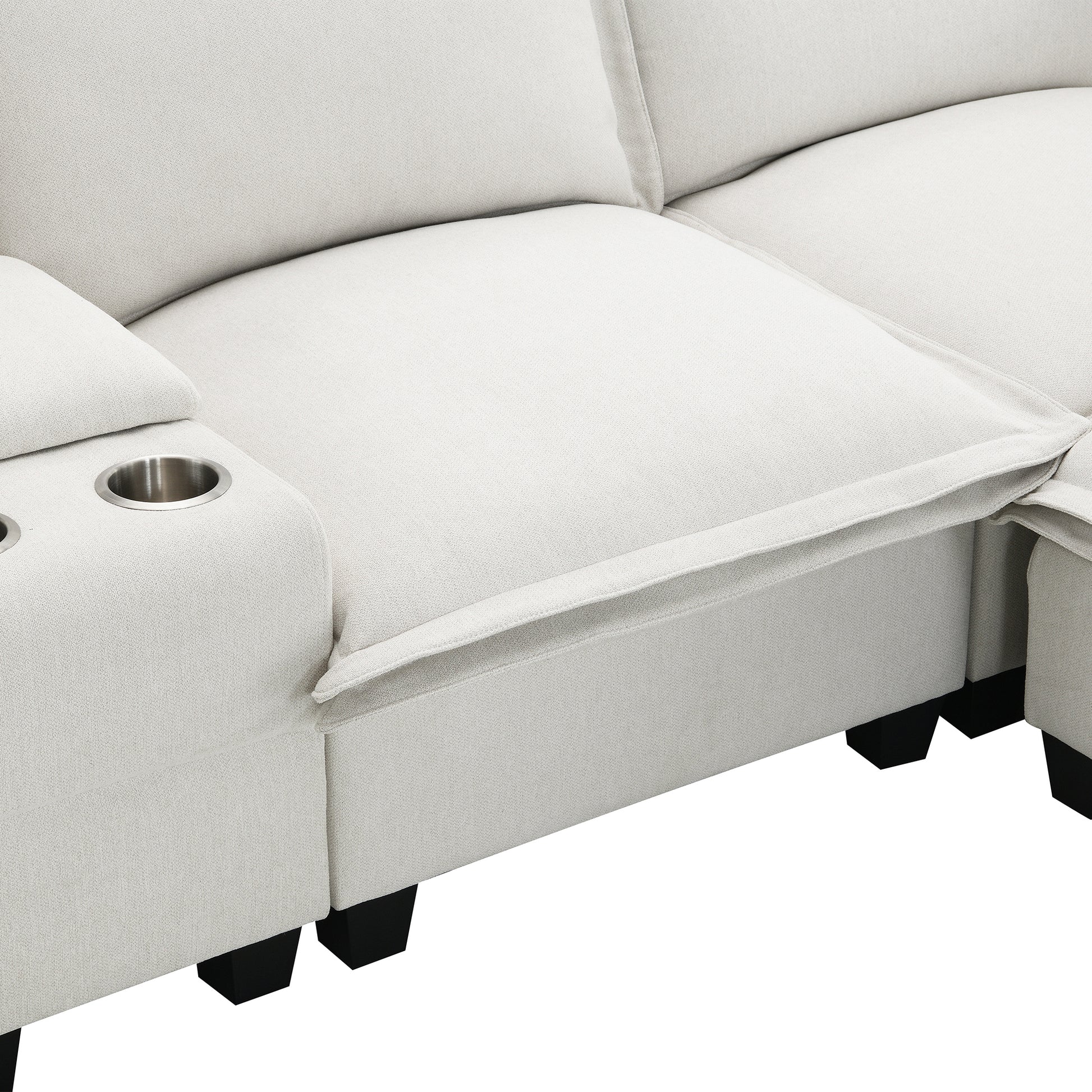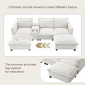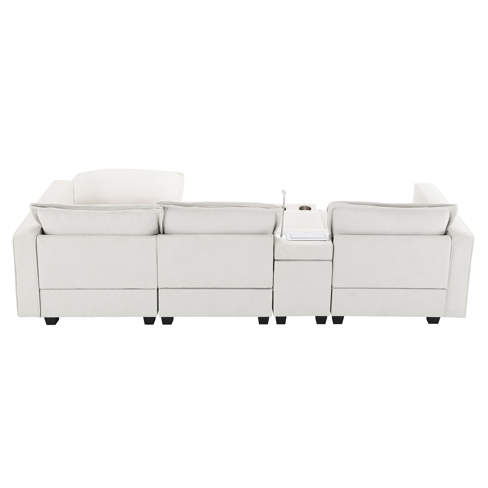 109*57"Modern Sectional Cloud Sofa With Console,Usb Charging Port,Reading Light,Cup Holder,4 Seat Chenille Modular Couch,Storable Indoor Funiture For Living Room,Apartment,2 Color Beige Chenille 4 Seat