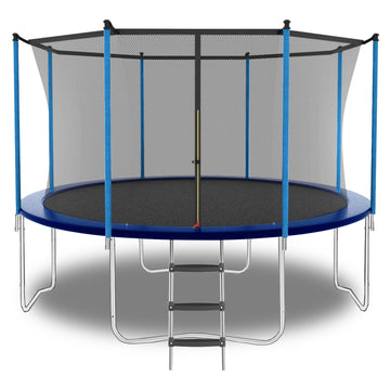 10Ft Outdoor Toddler Trampoline With Enclosure Safety Net Jumping Fun Trampoline, Heavy Duty Jump Pads, Spring Loaded For Children And Adults, Gifts For Boys Girls Blue Garden & Outdoor Iron